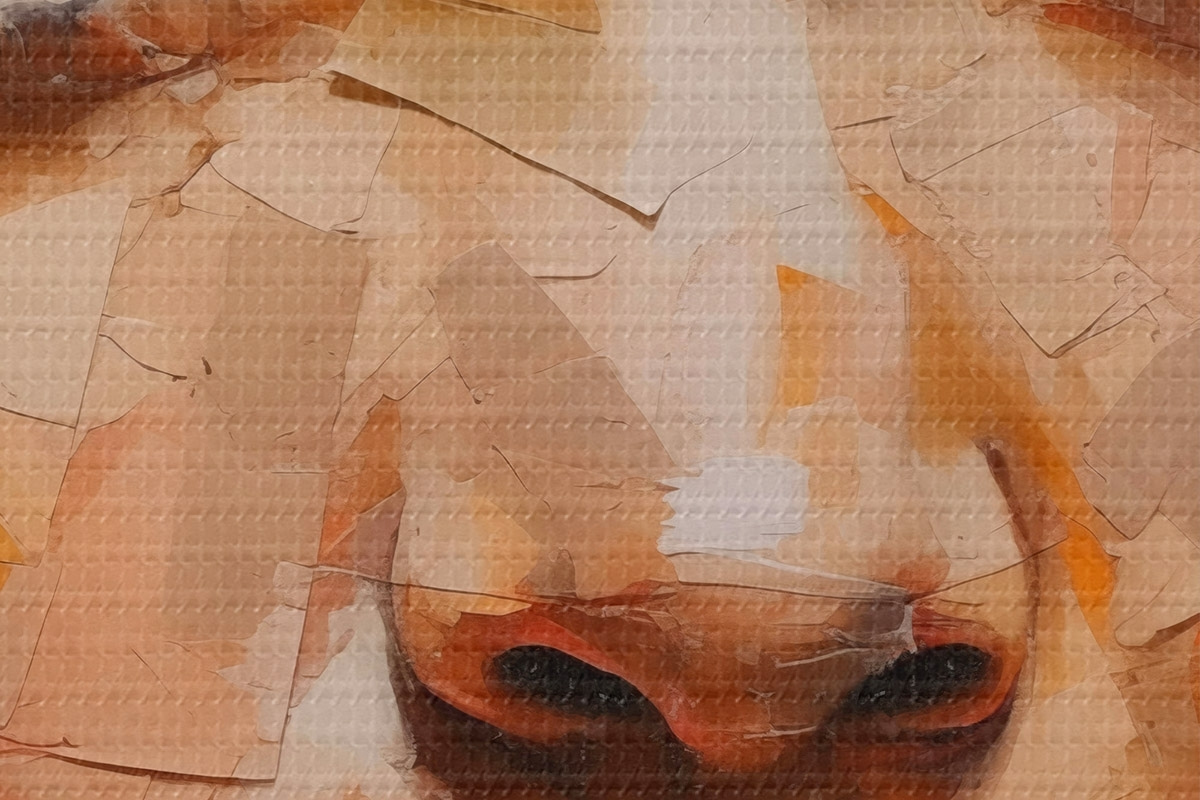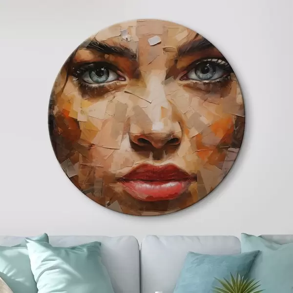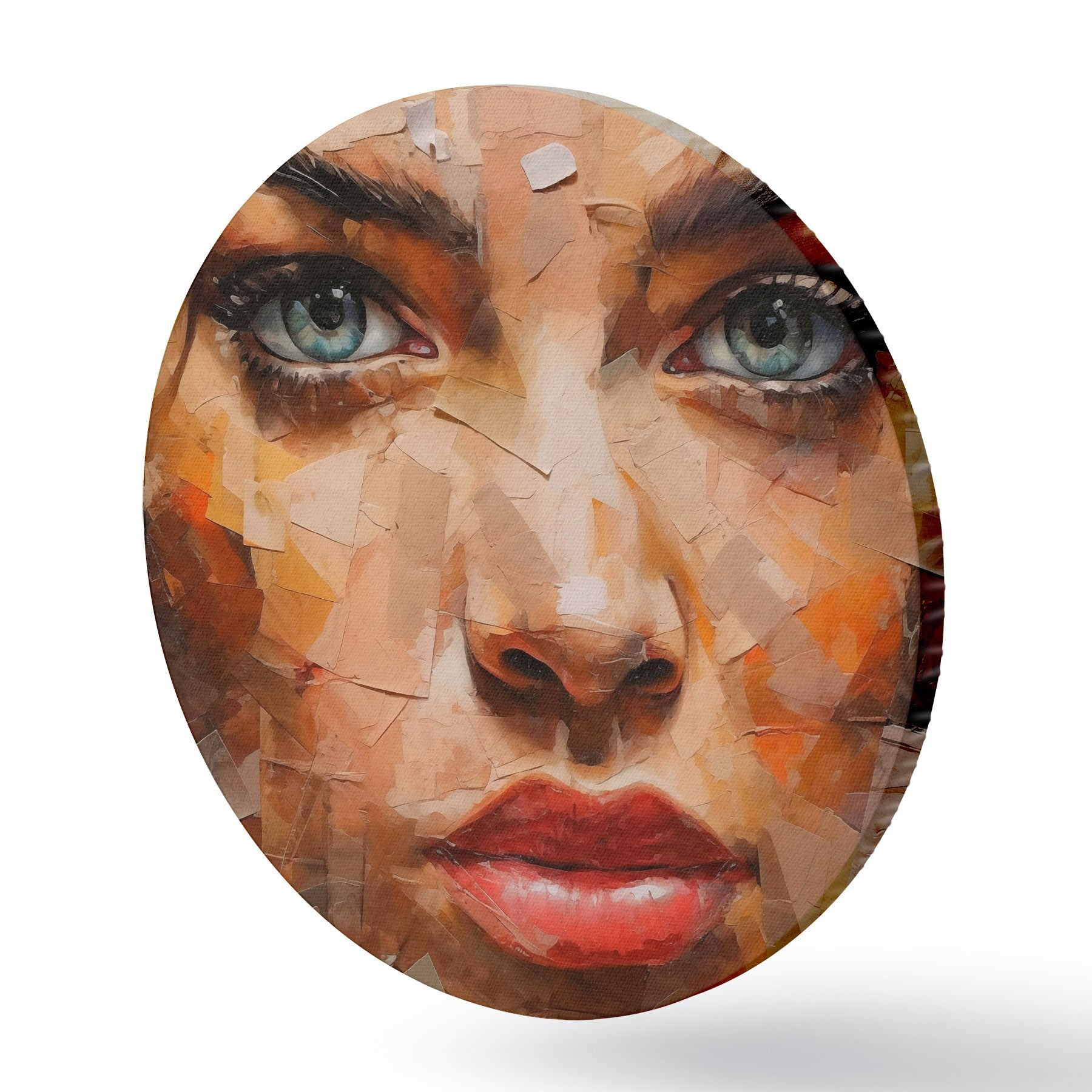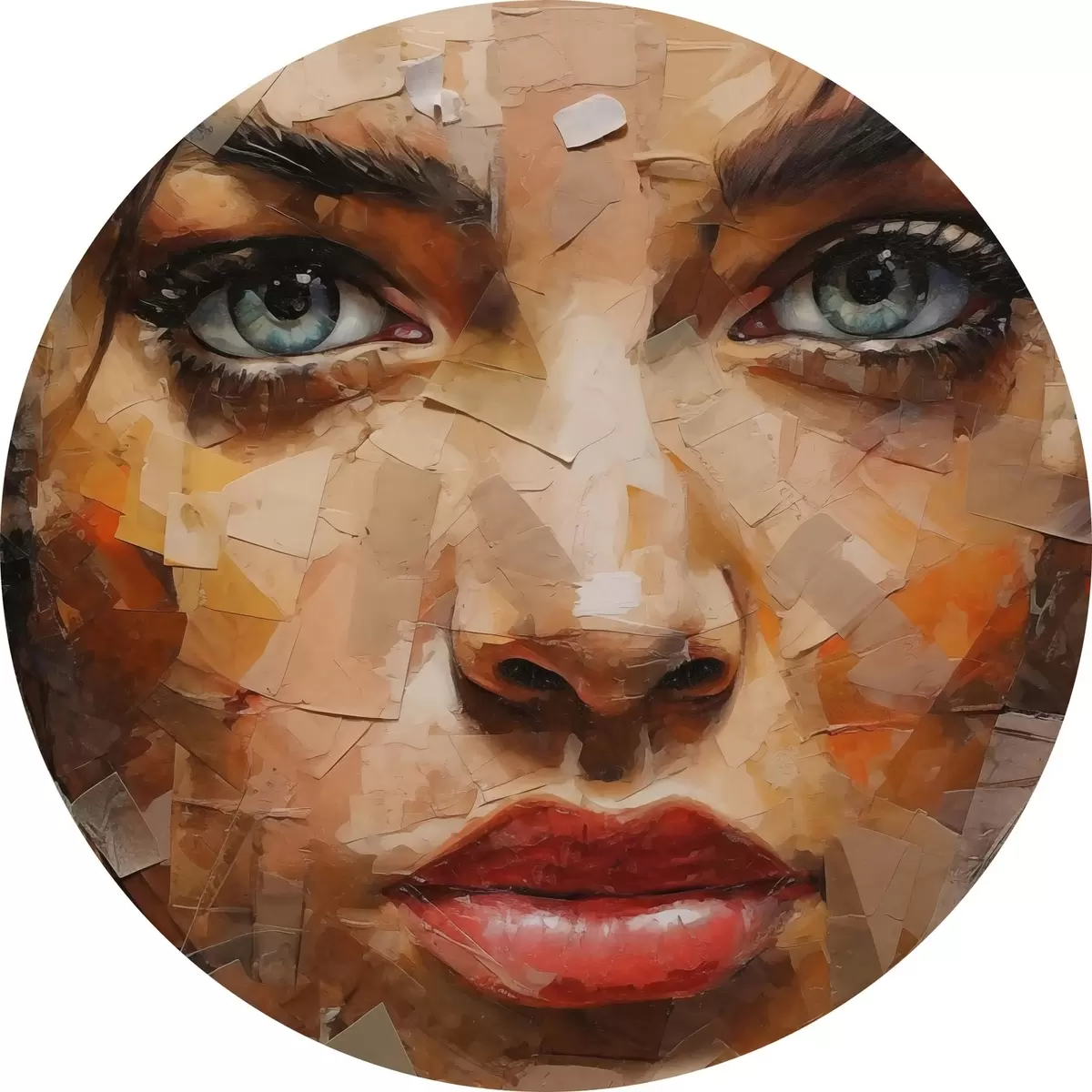 Runde Gemälde Das Gesicht eines Mädchens aus Zeitungen r43467
