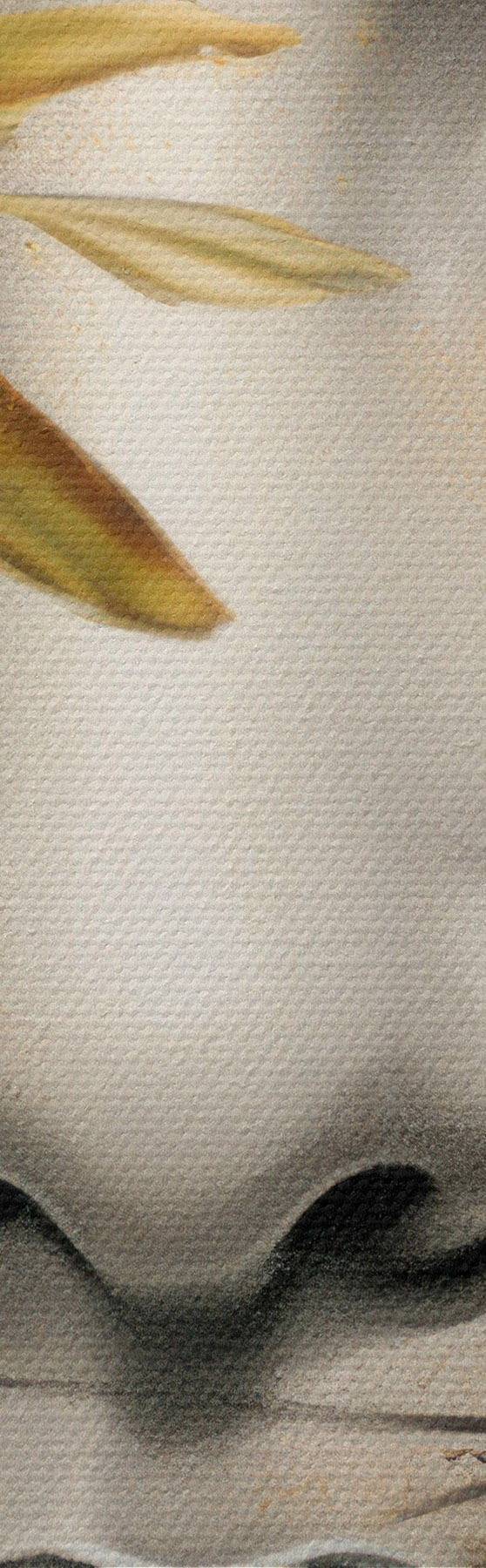 Das Bild kann vorsichtig mit einem trockenen, weichen Tuch oder Schwamm abgewischt werden; es wird nicht empfohlen, feuchte Produkte zu verwenden. Die Verwendung eines feuchten Schwamms ist nur zulässig, wenn das Bild lackiert wurde.