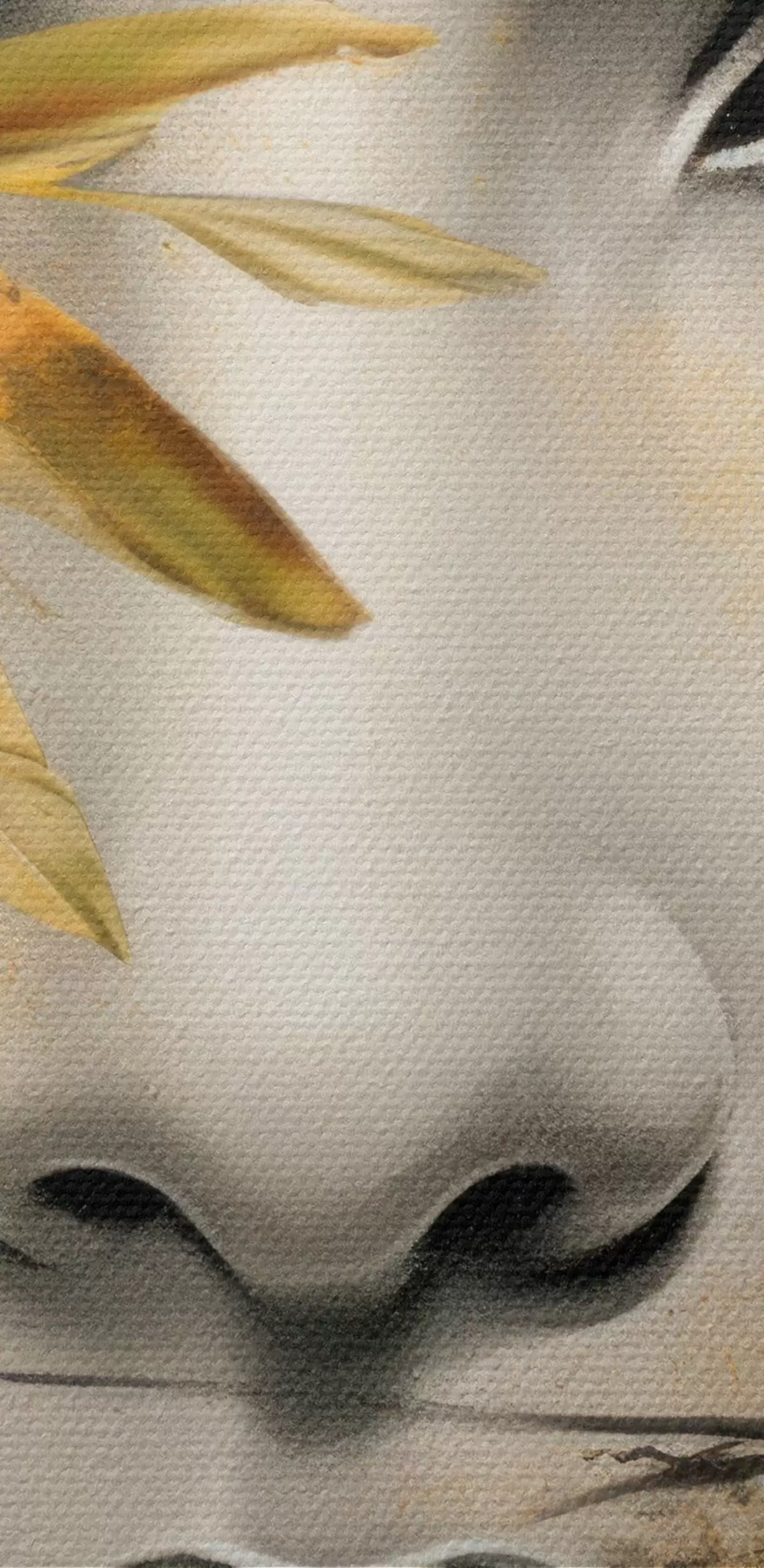 Um die Leinwand auf Keilrahmen zu spannen, ohne das Bild zu beschädigen, verwenden wir ein gespiegeltes Bild.