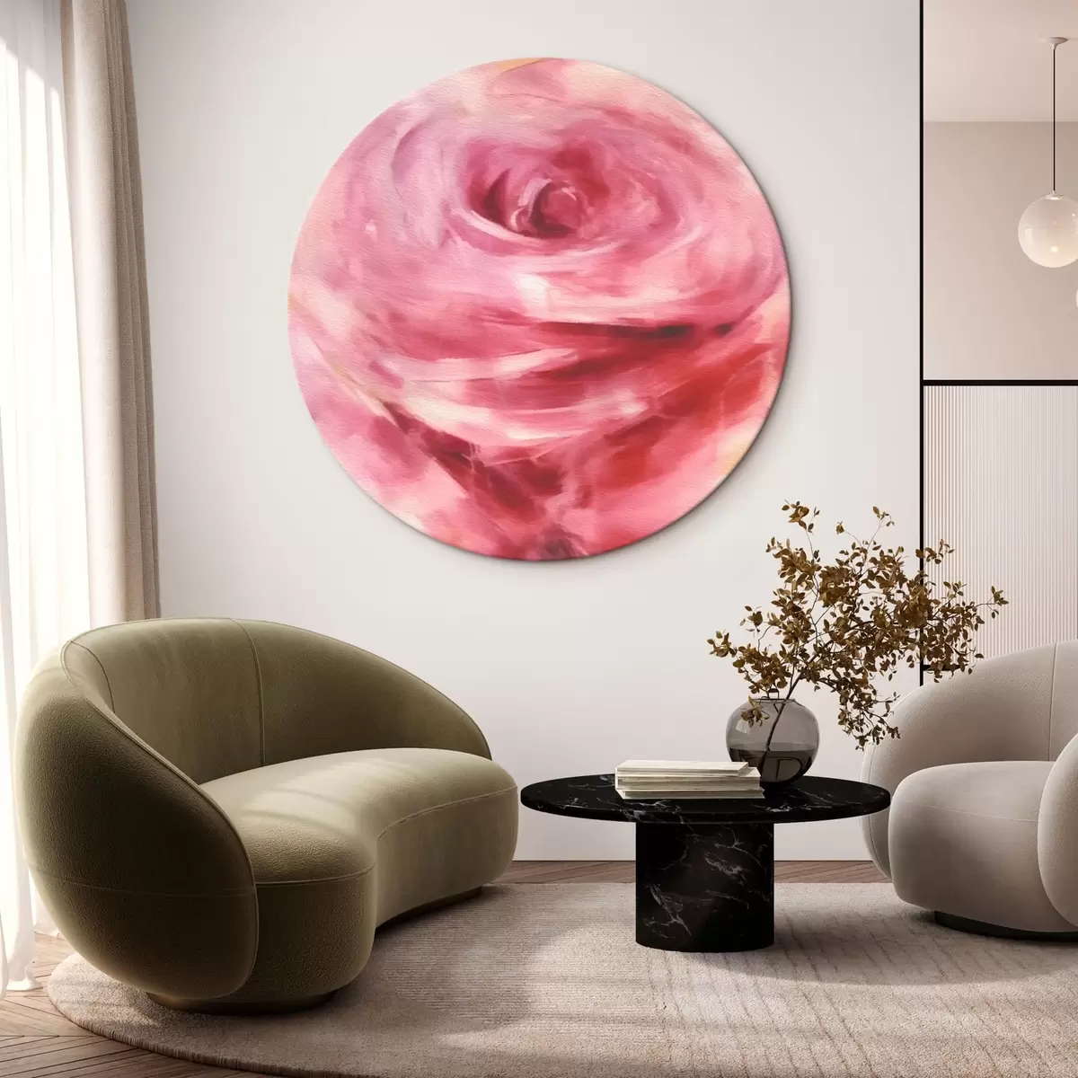 Runde Gemälde Rosa Blütenrose r43488