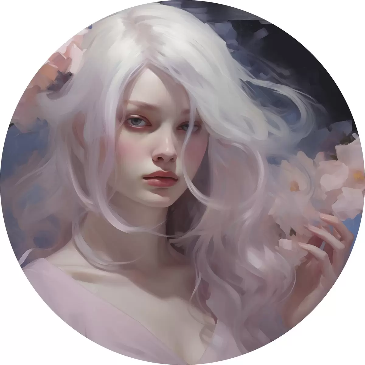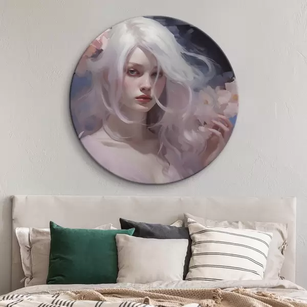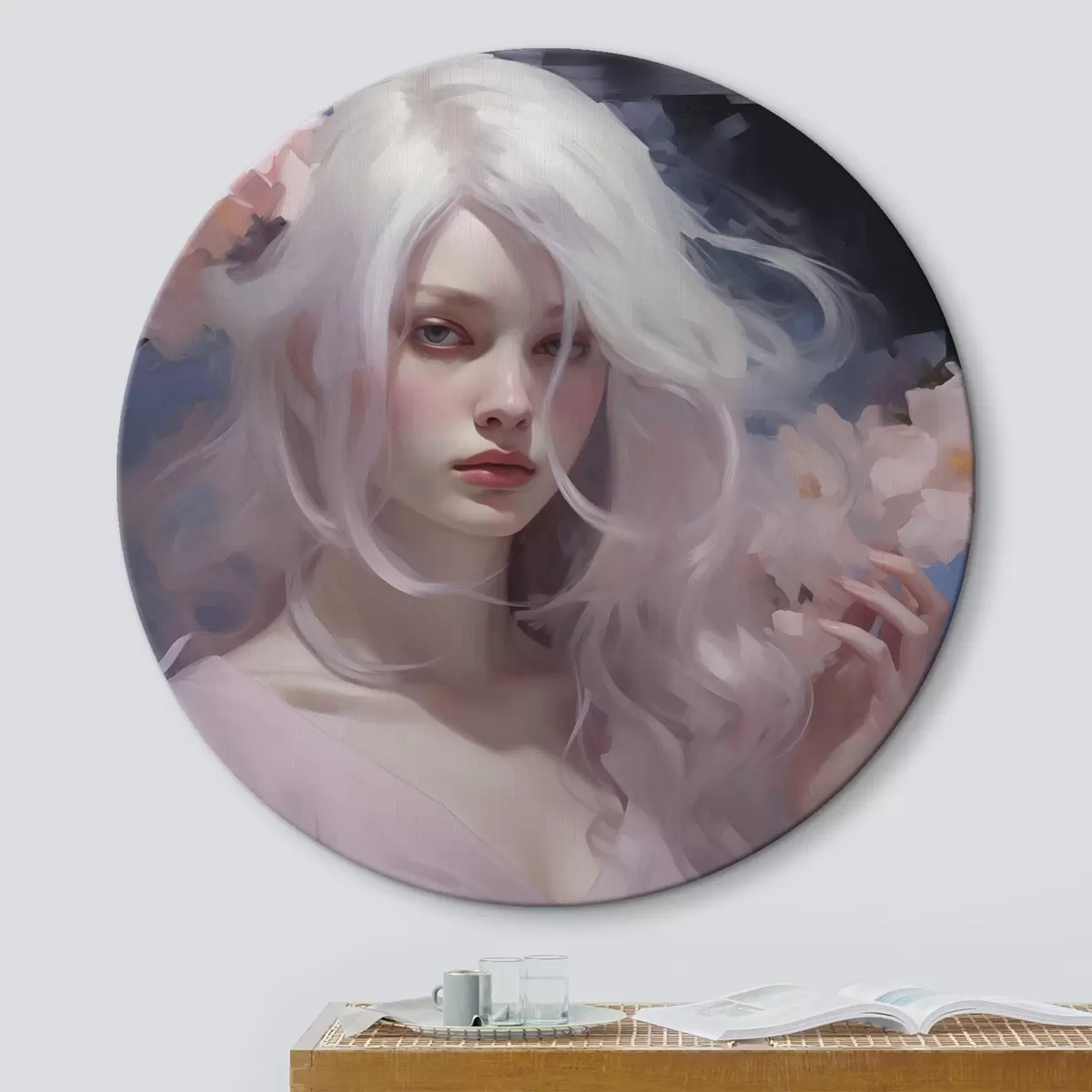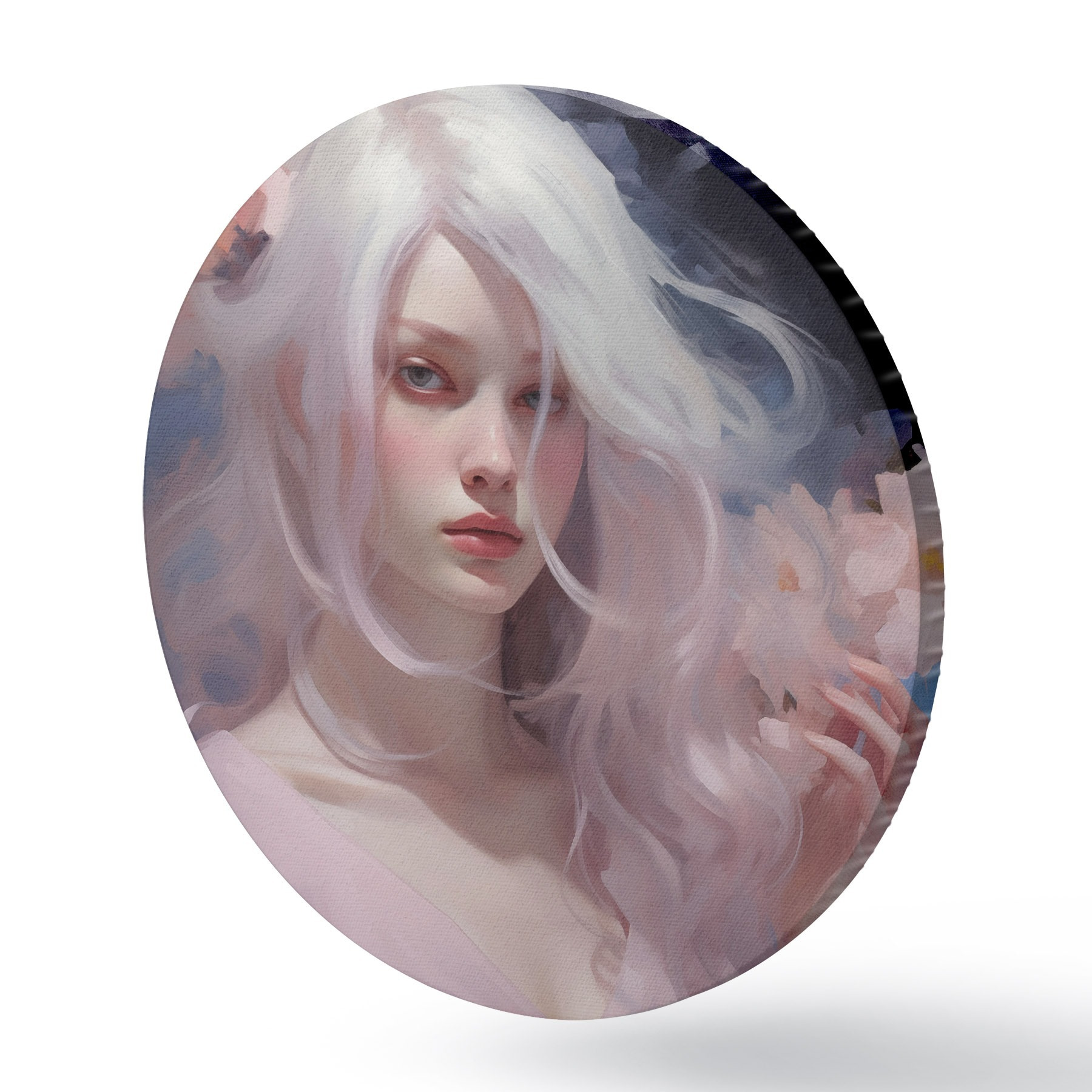 Runde Gemälde Mädchen mit Pfingstrosen, Acryl-Stil Zeichnung, dunkler Hintergrund r43496