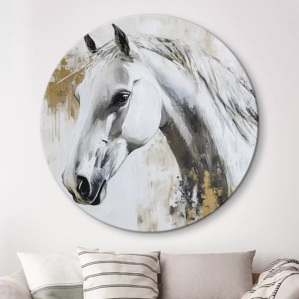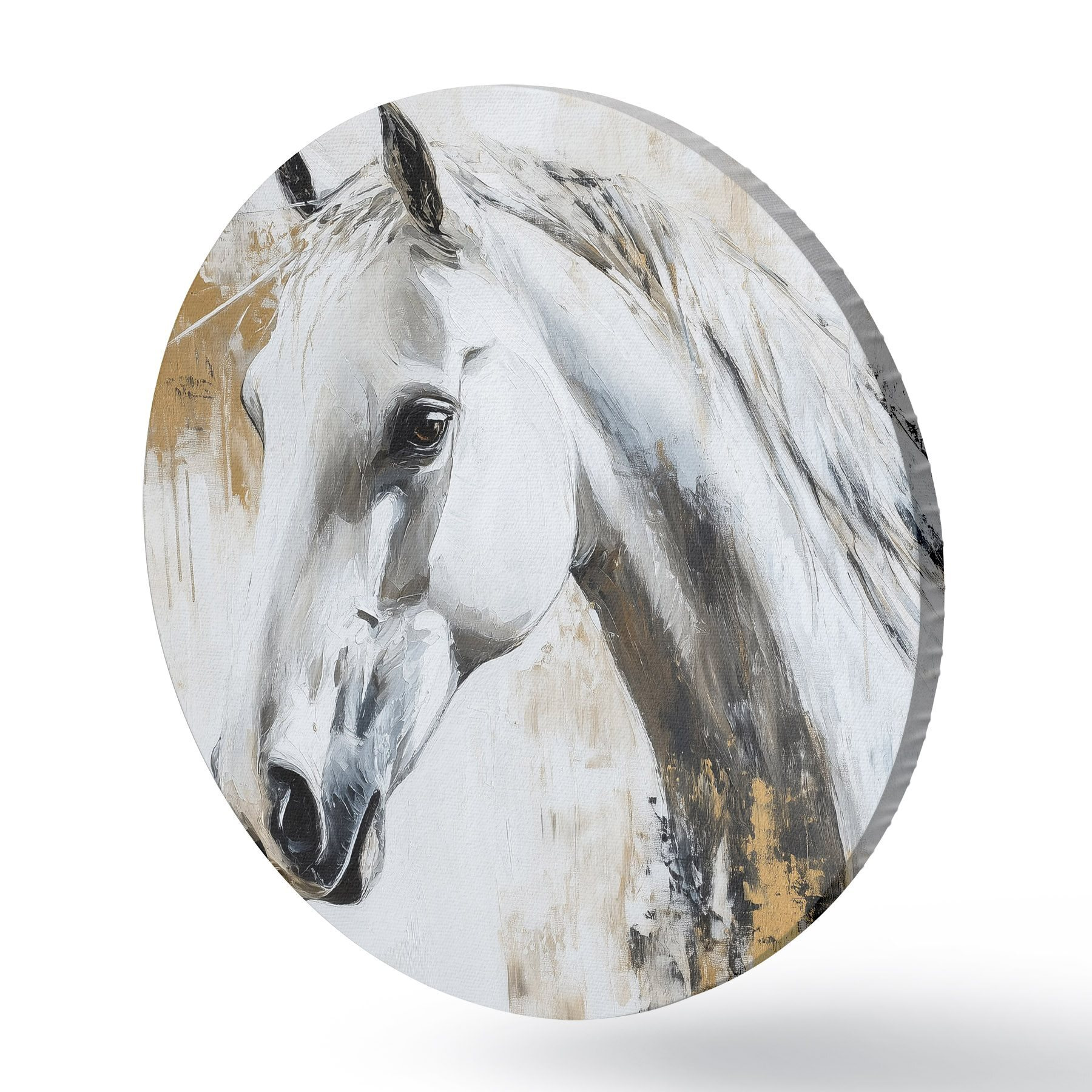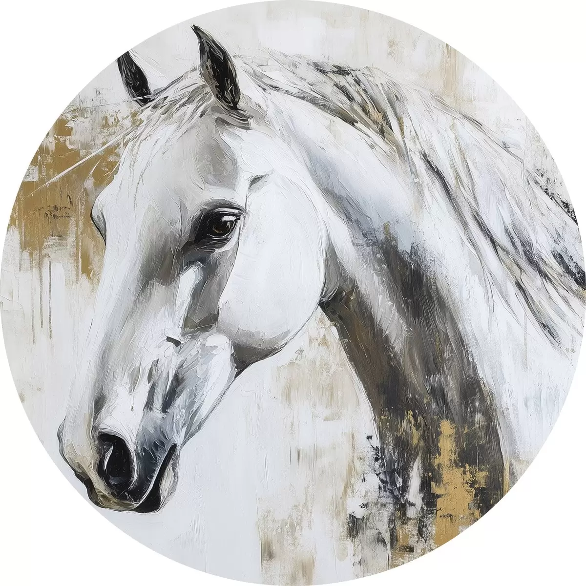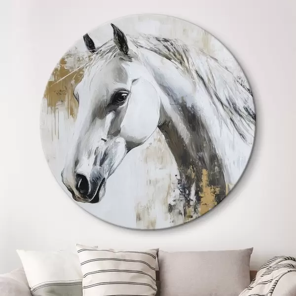 Runde Gemälde Weißes Pferd, Öl-Stil-Zeichnung, Tiere, lebhafte Pinselstriche r43497