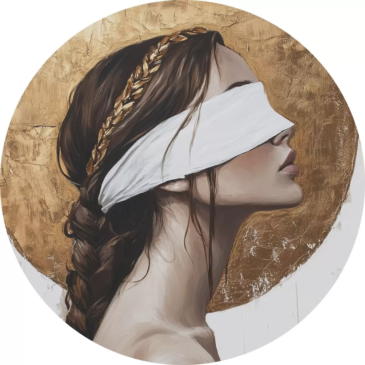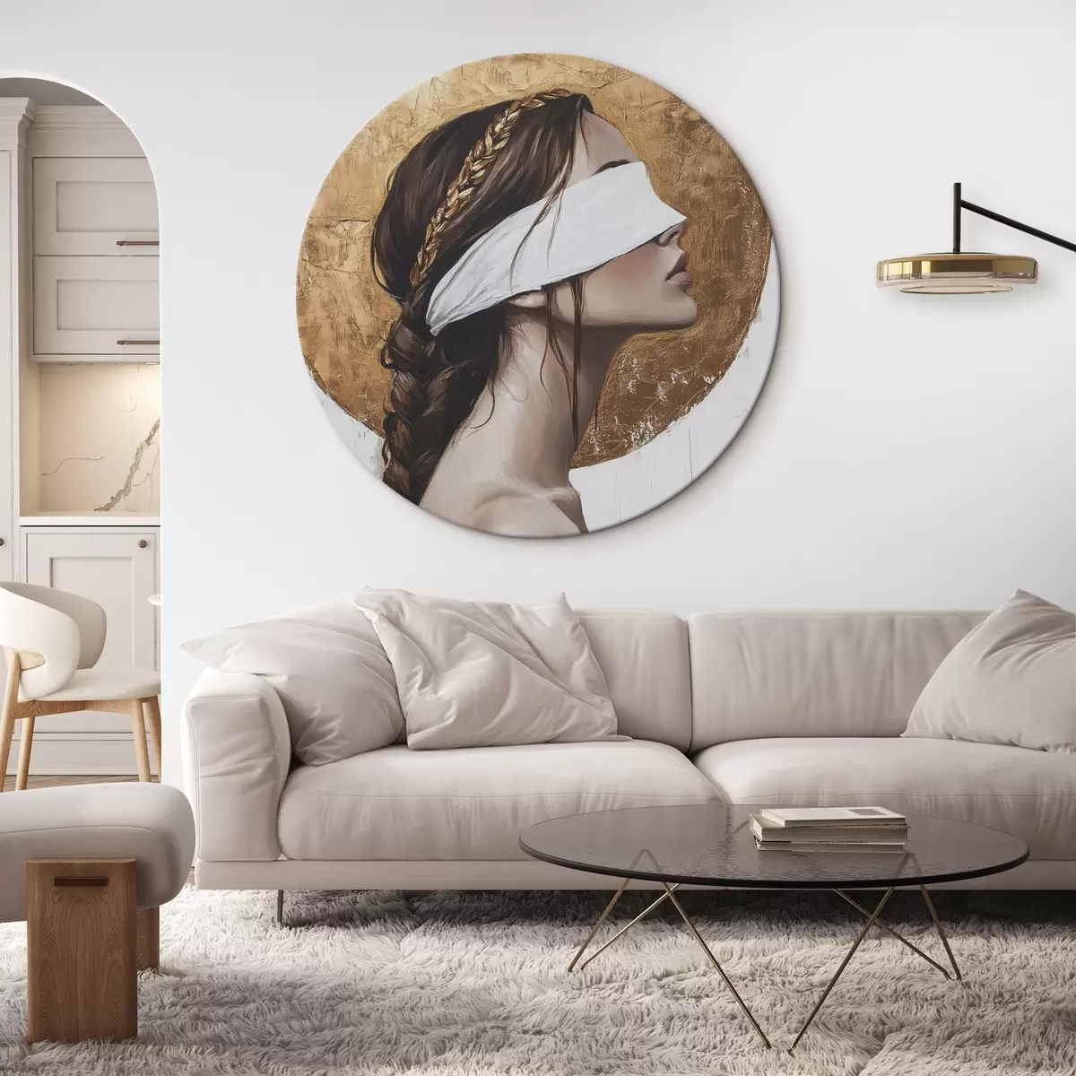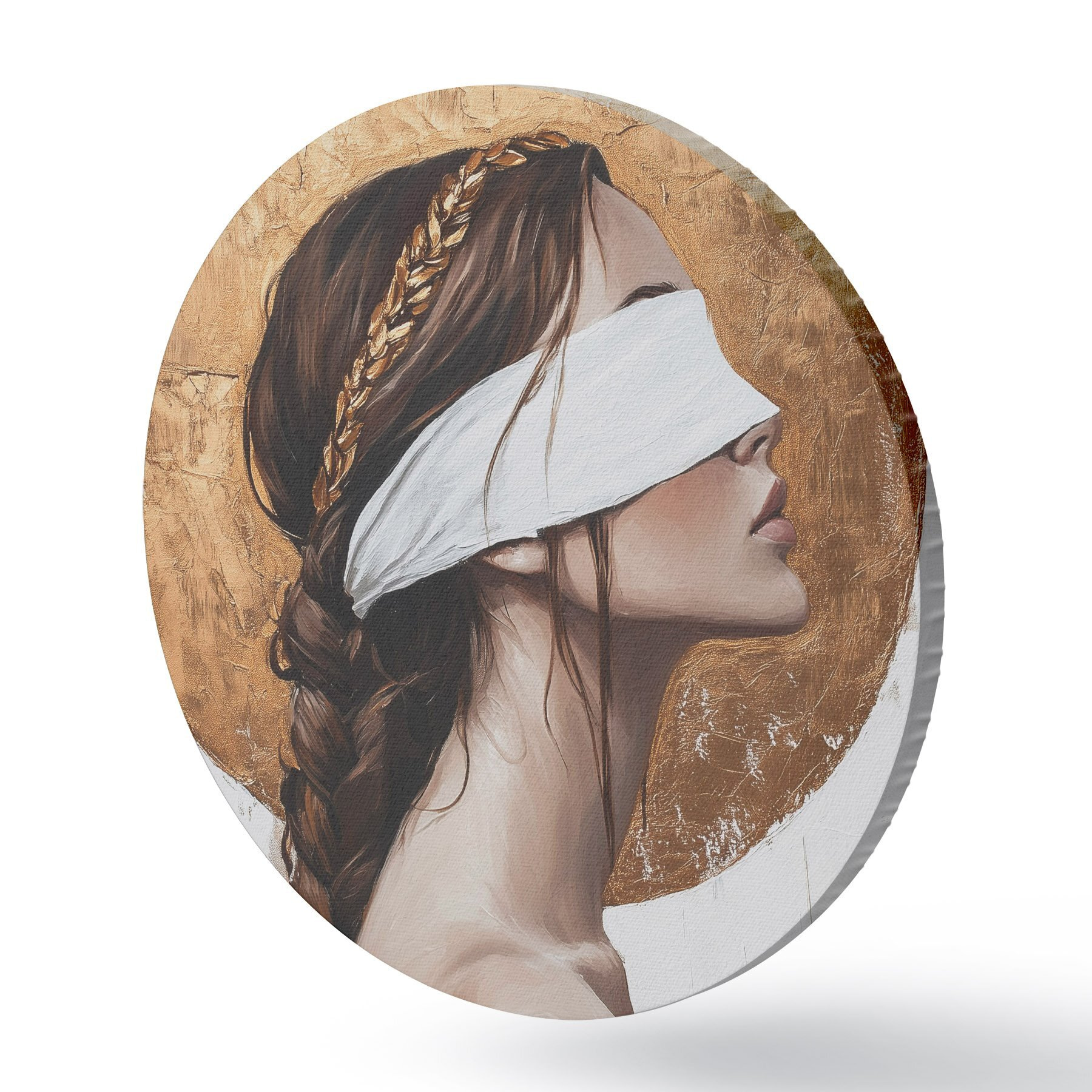 Runde Gemälde Frau mit Augenbinde, Griechenland, Zeichnung im Acrylstil r43502