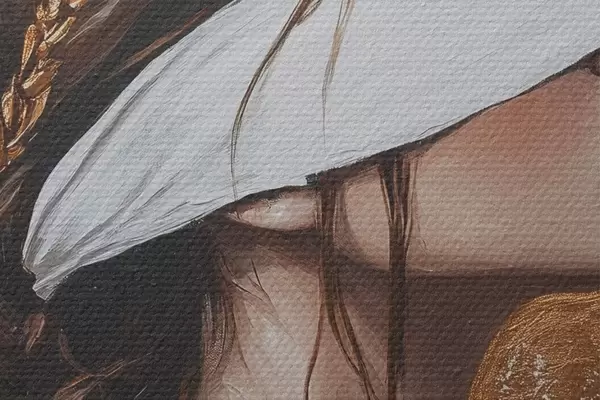 Um die Leinwand auf Keilrahmen zu spannen, ohne das Bild zu beschädigen, verwenden wir ein gespiegeltes Bild.