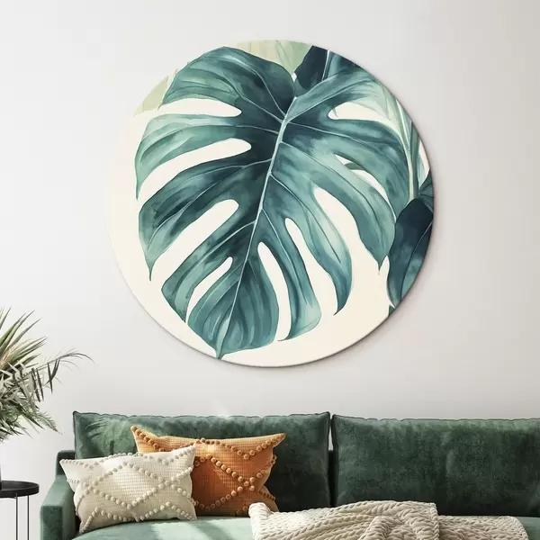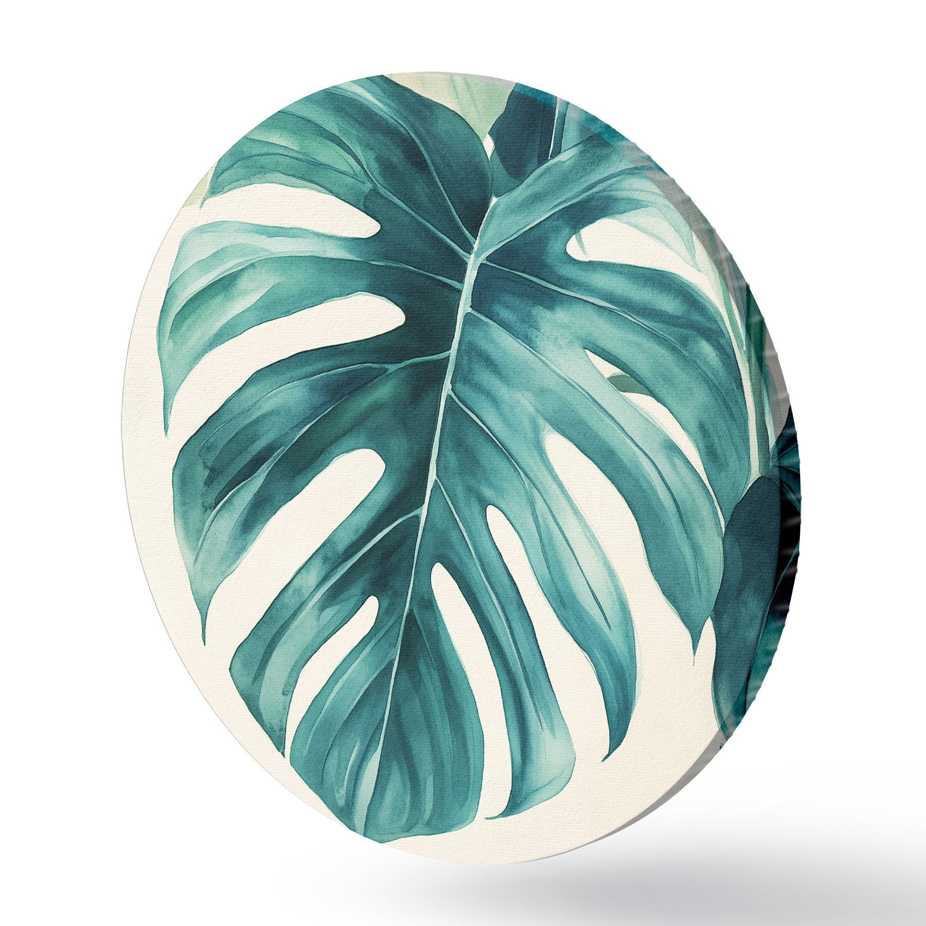 Runde Gemälde Monstera Palmenblätter, Aquarellstil, floral, tropisch r43507