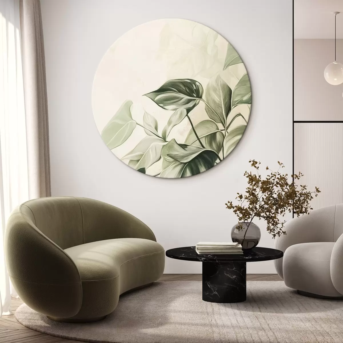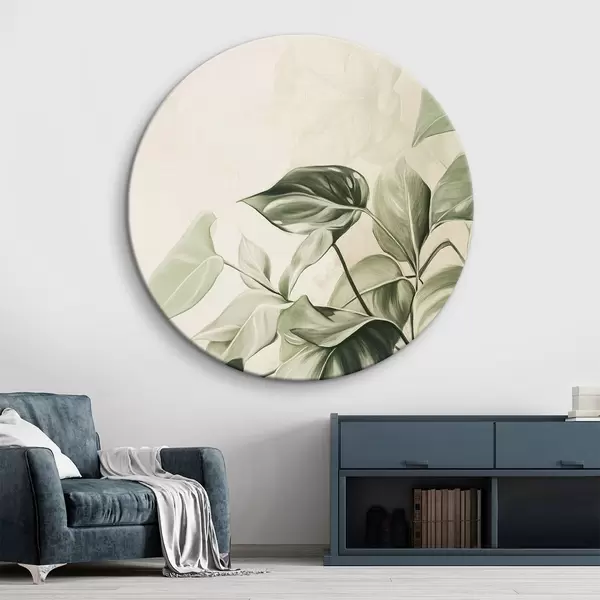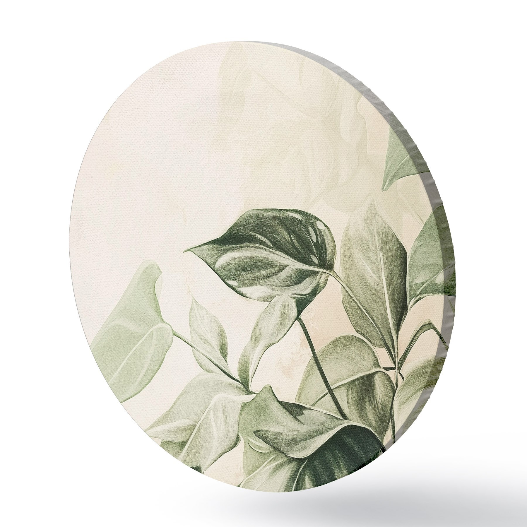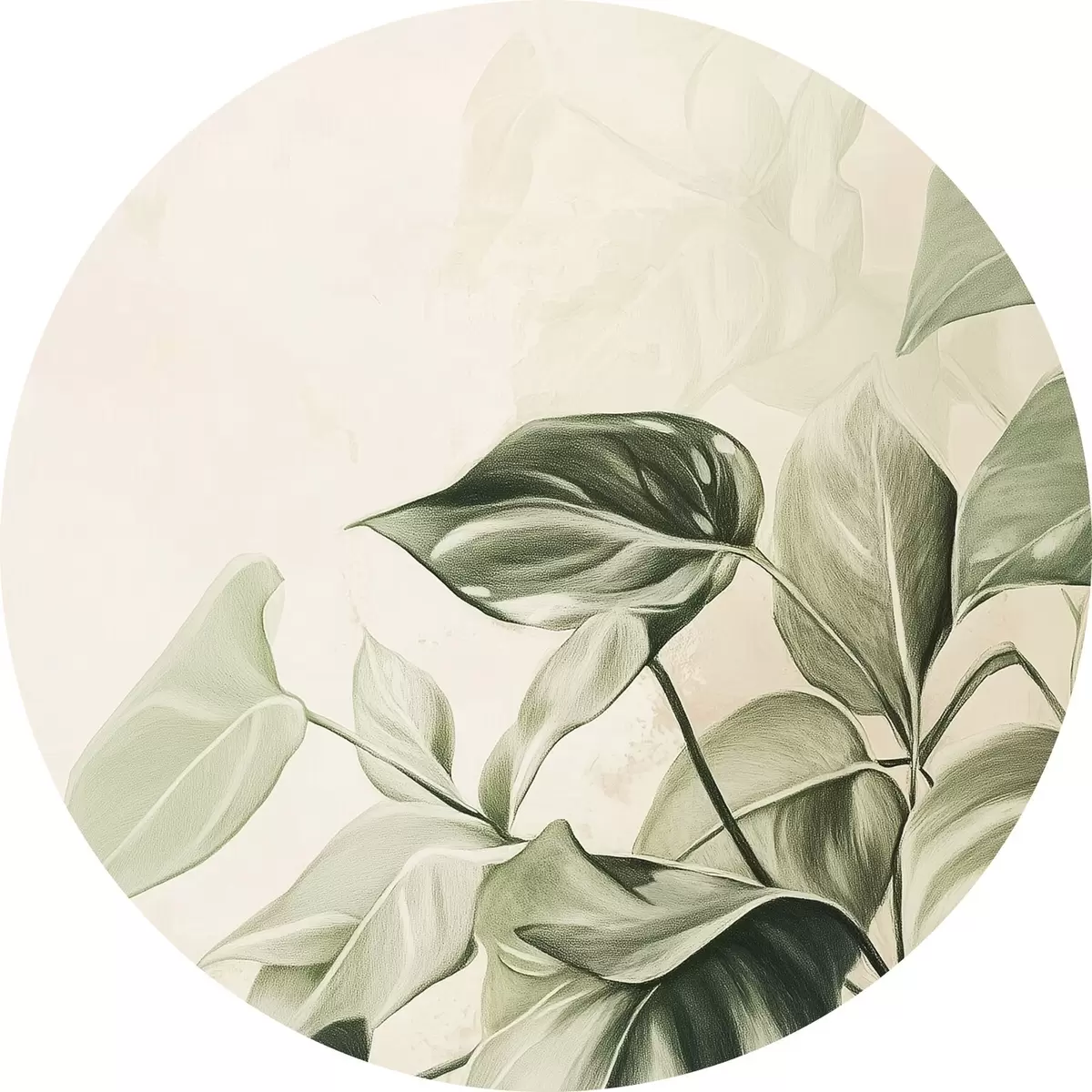 Runde Gemälde Palmenblätter, Bleistiftzeichnung, tropisch, Grünzeug r43509