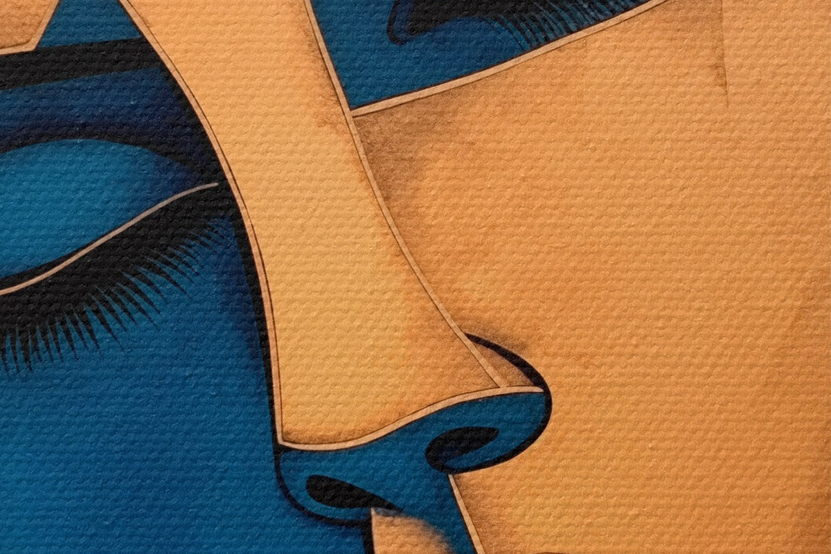 Um die Leinwand auf Keilrahmen zu spannen, ohne das Bild zu beschädigen, verwenden wir ein gespiegeltes Bild.