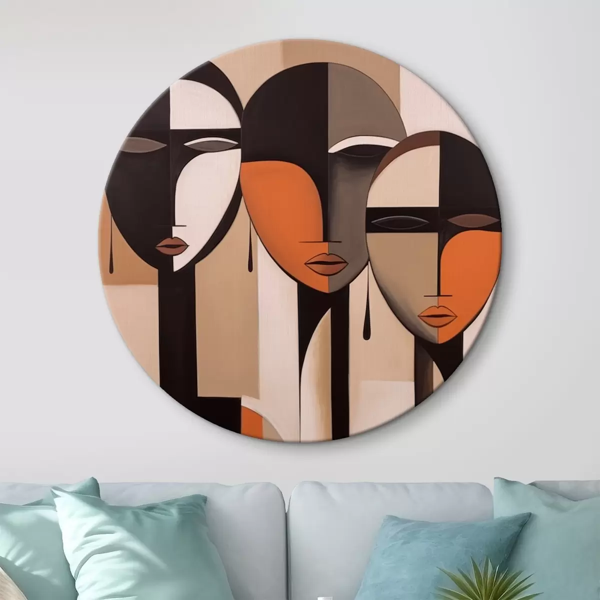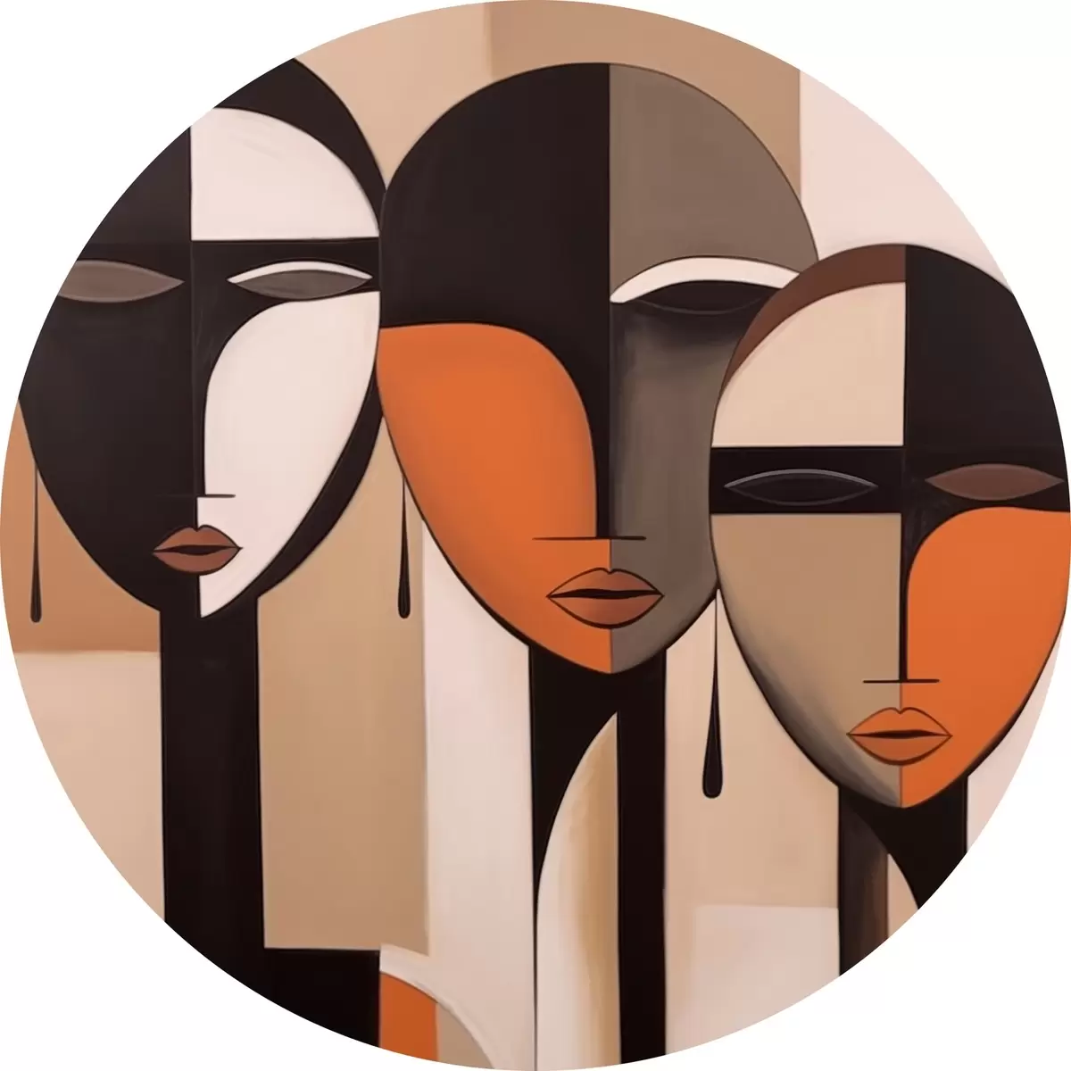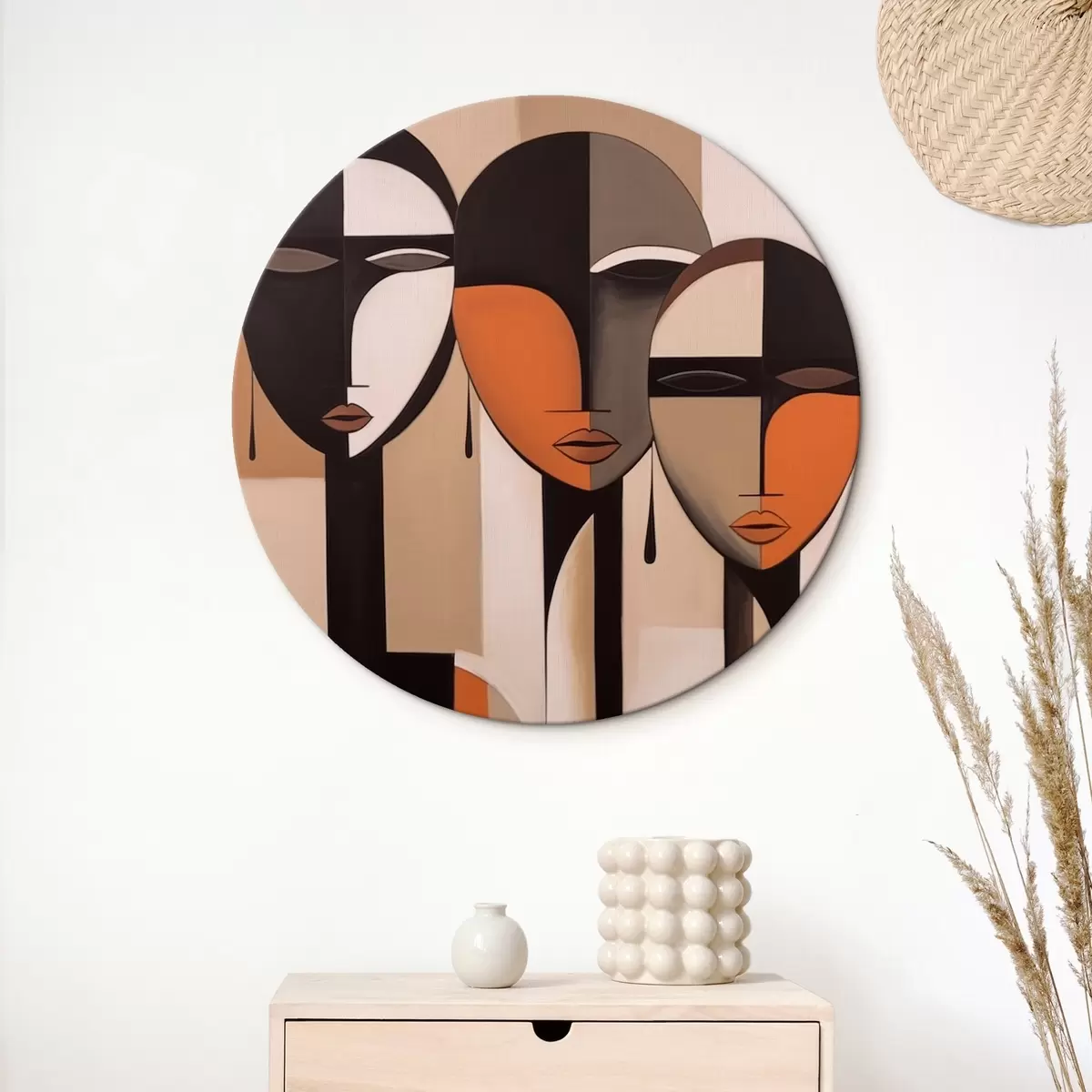 Runde Gemälde Abstrakte Gesichter in harmonischen Farben r43525