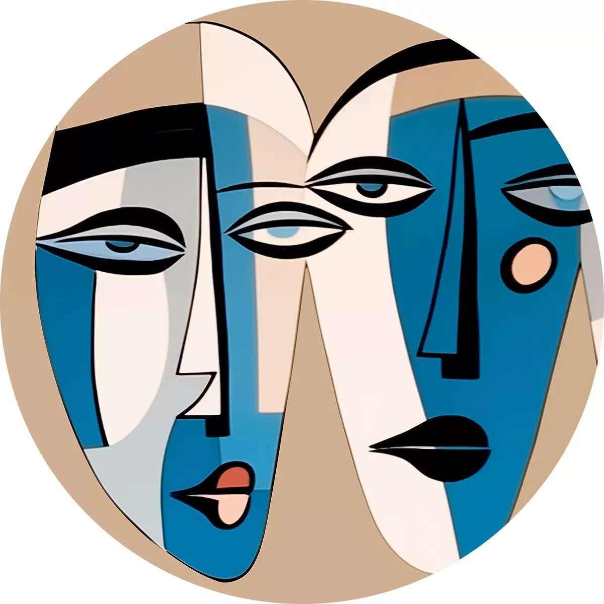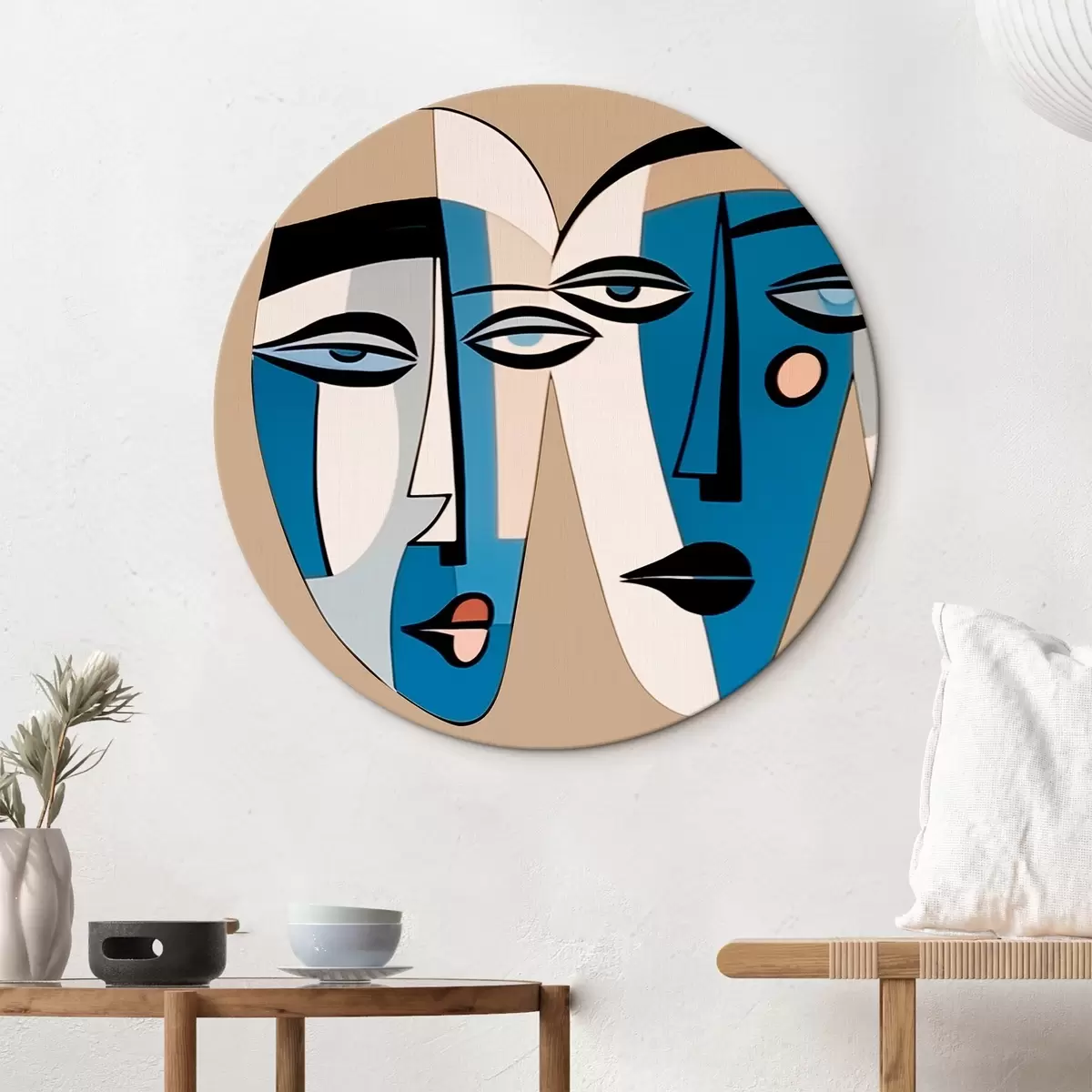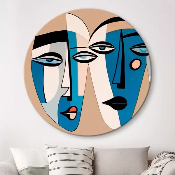 Runde Gemälde Abstraktes Porträt einer Katze in geometrischem Stil r43526