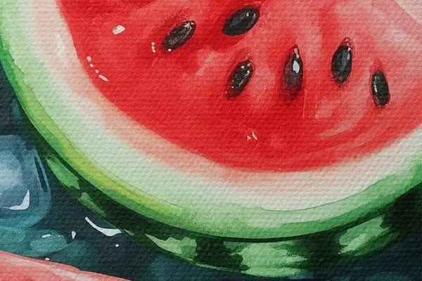 Bild Wassermelonenscheiben mit Eiswürfeln und Minze, Aquarellstil Nr r43880