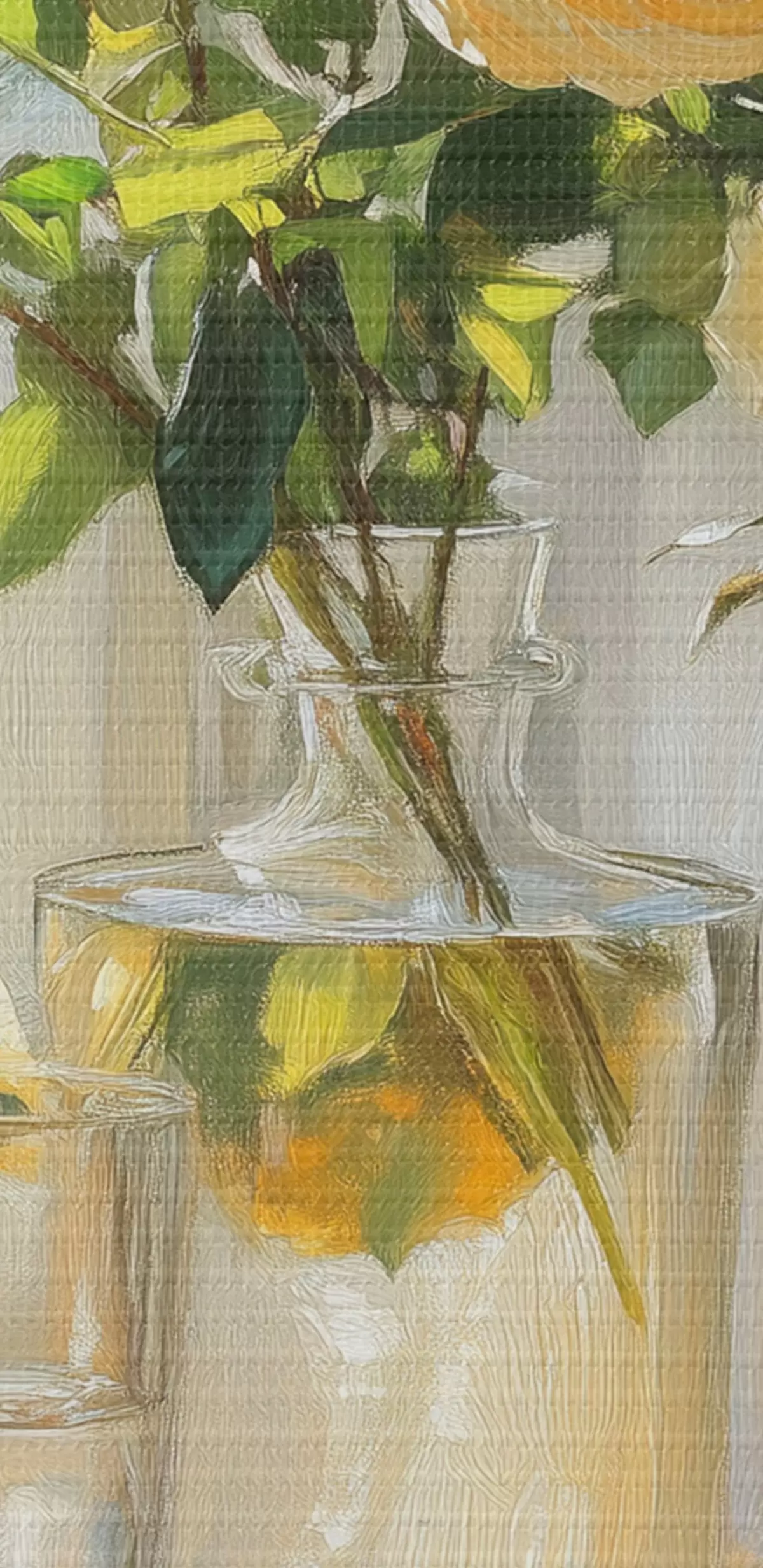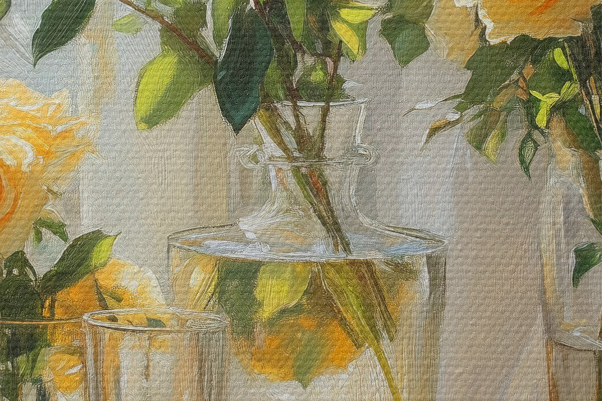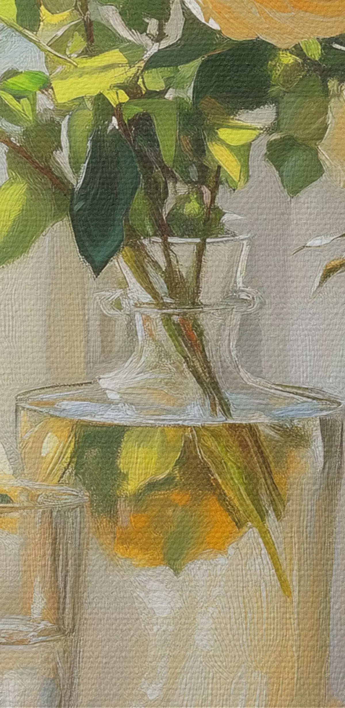 Bild Rosen in Vasen, Ölgemälde, sanftes Sonnenlicht, Zitronen, Frühling Nr r43887