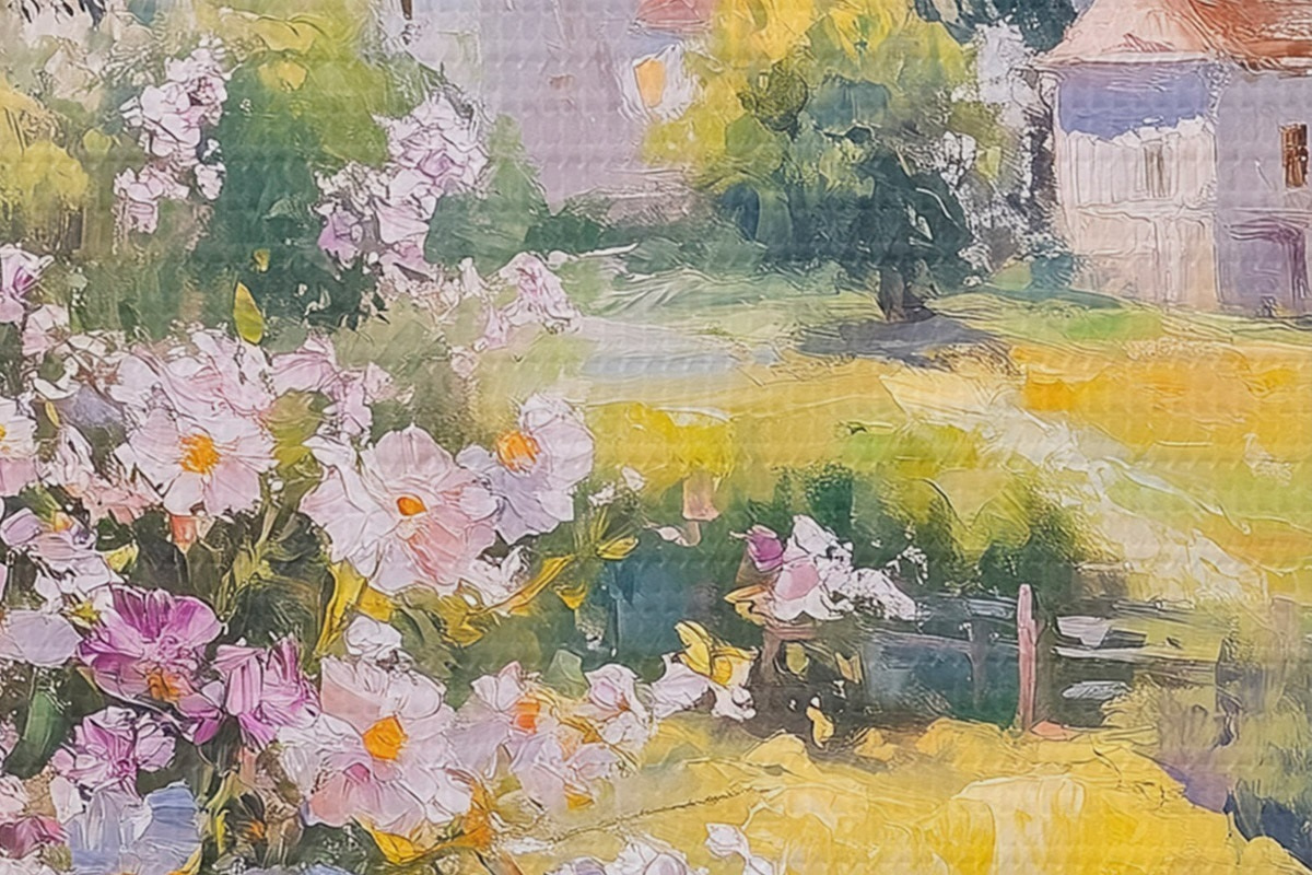 Bild Sommer auf dem Dorf, rustikal, Ölzeichnung, Blumen in Vase Nr r43889