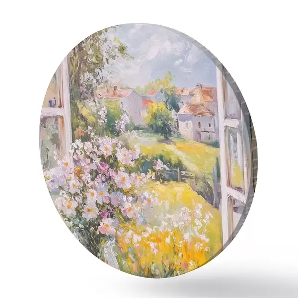 Runde Gemälde Sommer auf dem Dorf, rustikal, Ölzeichnung, Blumen in Vase r43889