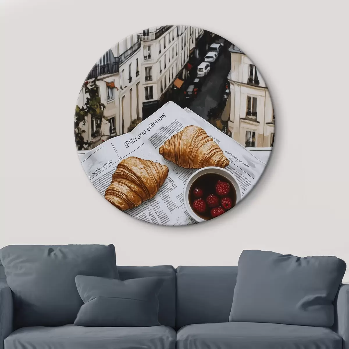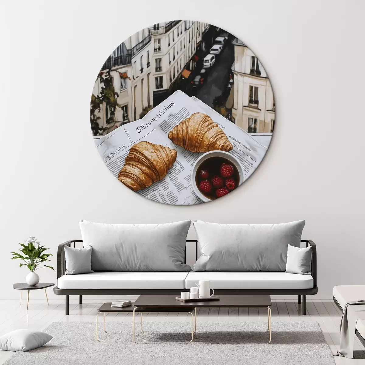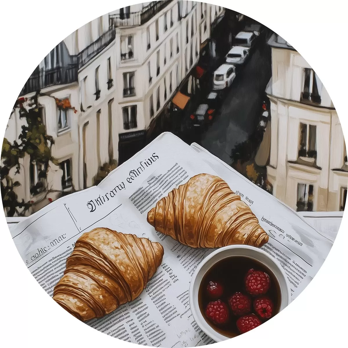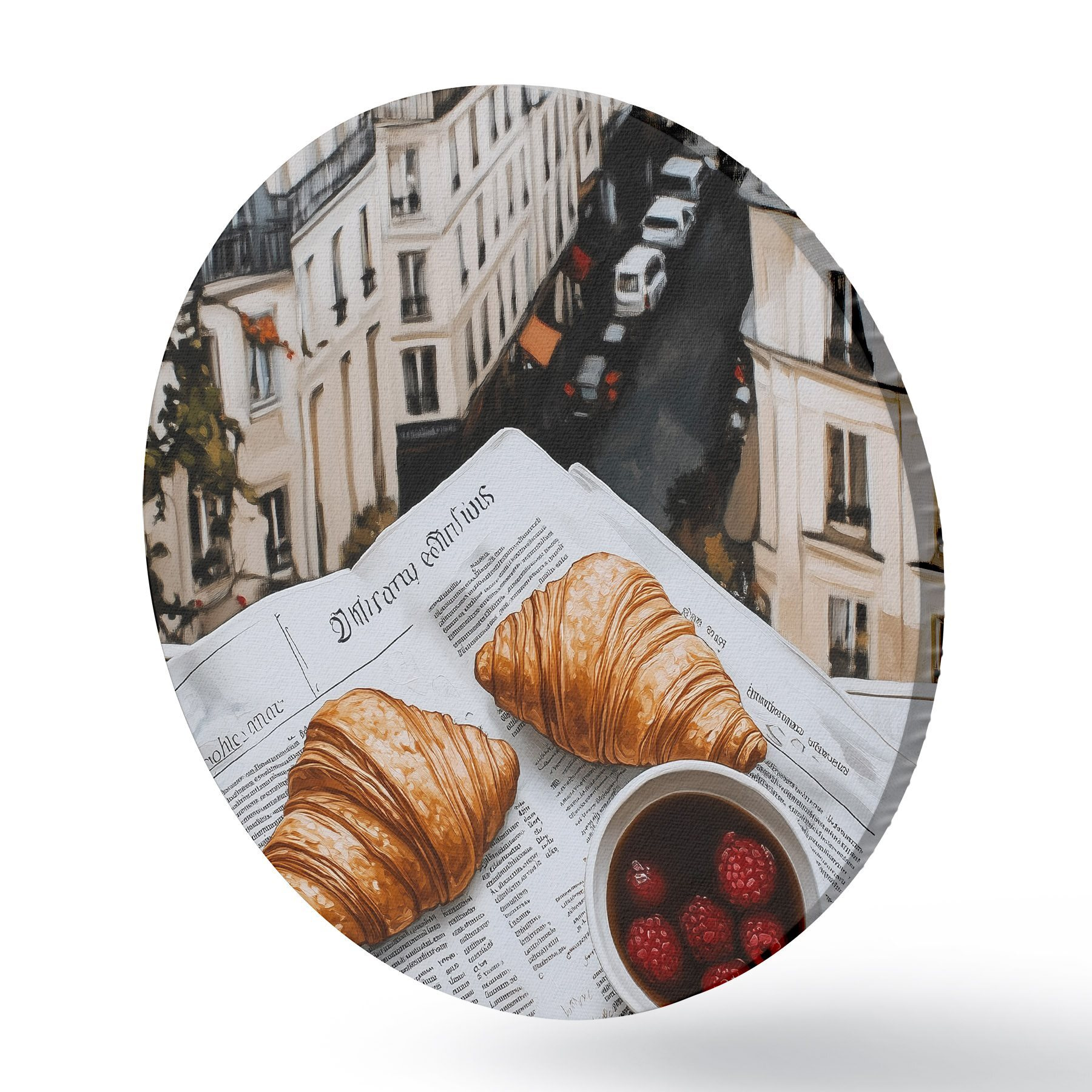 Runde Gemälde Morgenkaffee mit Croissants, Stadtstraße, architektonisch, Öl-Stil r43891