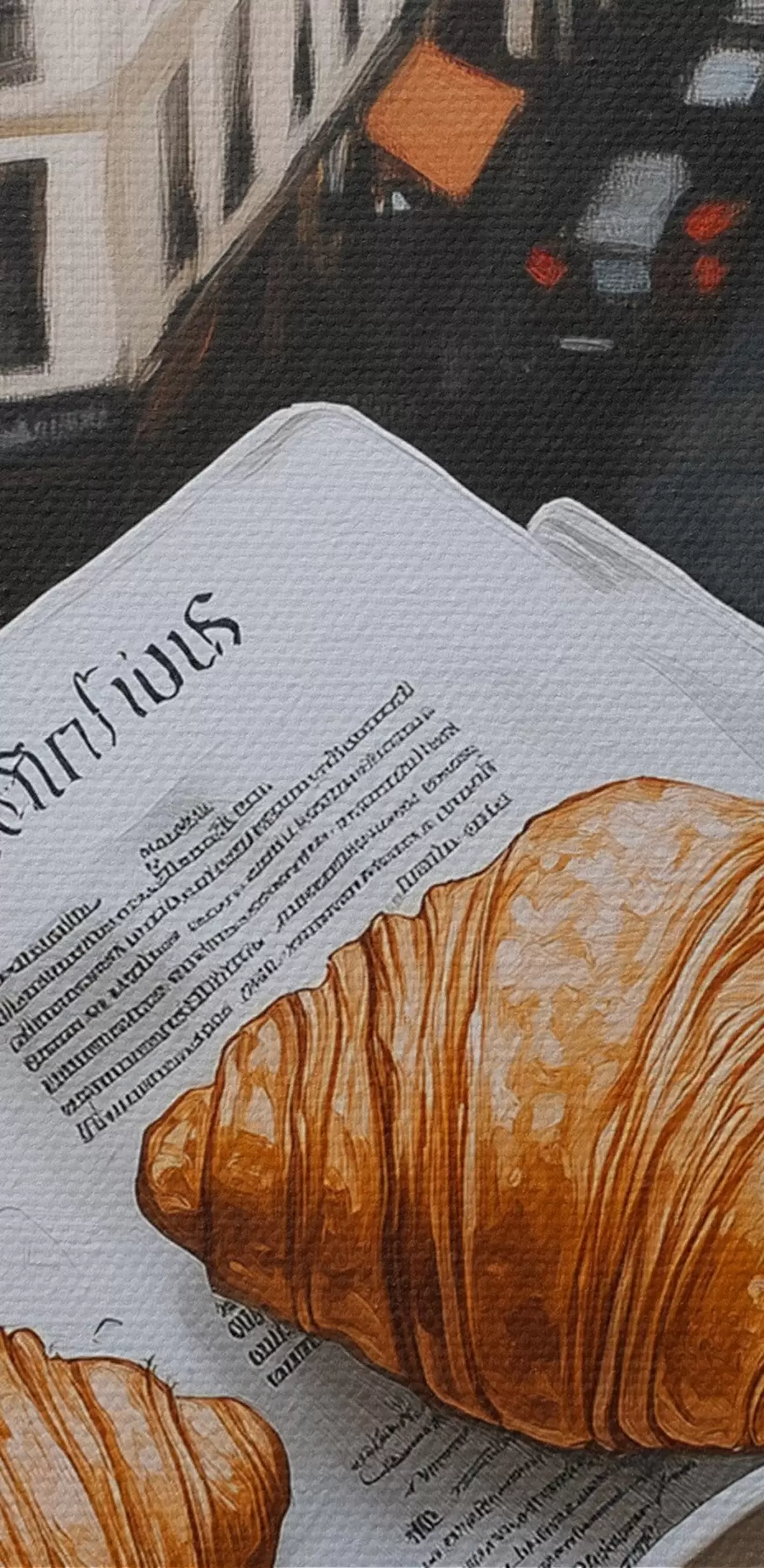 Bild Morgenkaffee mit Croissants, Stadtstraße, architektonisch, Öl-Stil Nr r43891