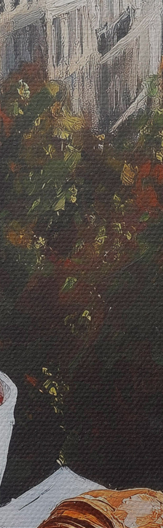 Drei Materialtypen stehen zur Verfügung: Economic Canvas - ein dichtes und haltbares Material für den Digitaldruck, identisch mit Malerleinwand, wasserfeste Oberfläche, realistische Wiedergabe von Details, mittelkörniges Material. Premium Canvas - die Textur ähnelt der einer Malerleinwand (verwobene kleine Fäden). Weiche, detaillierte Wiedergabe des Bildes auf einer matten Oberfläche. Eco-Premium - hochwertiges Gewebe aus 100% Baumwolle. Dank der natürlichen Baumwollfasern ist das Material langlebig und verschleißfest. Hervorragende Farbwiedergabe und Detailtreue.