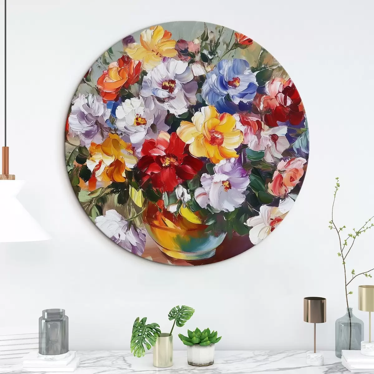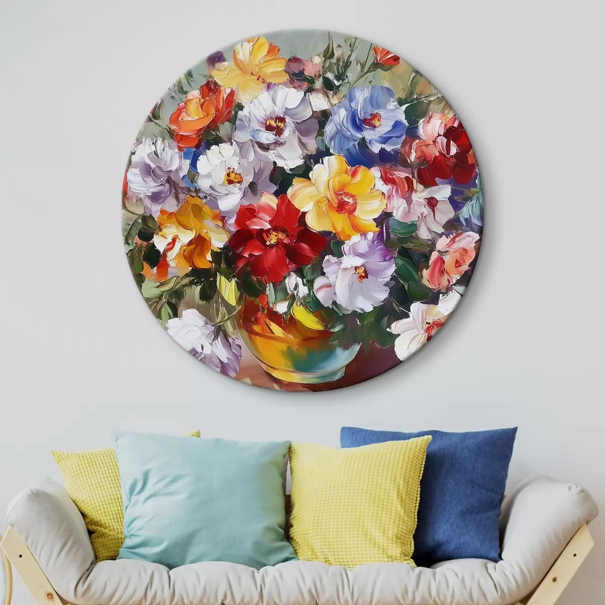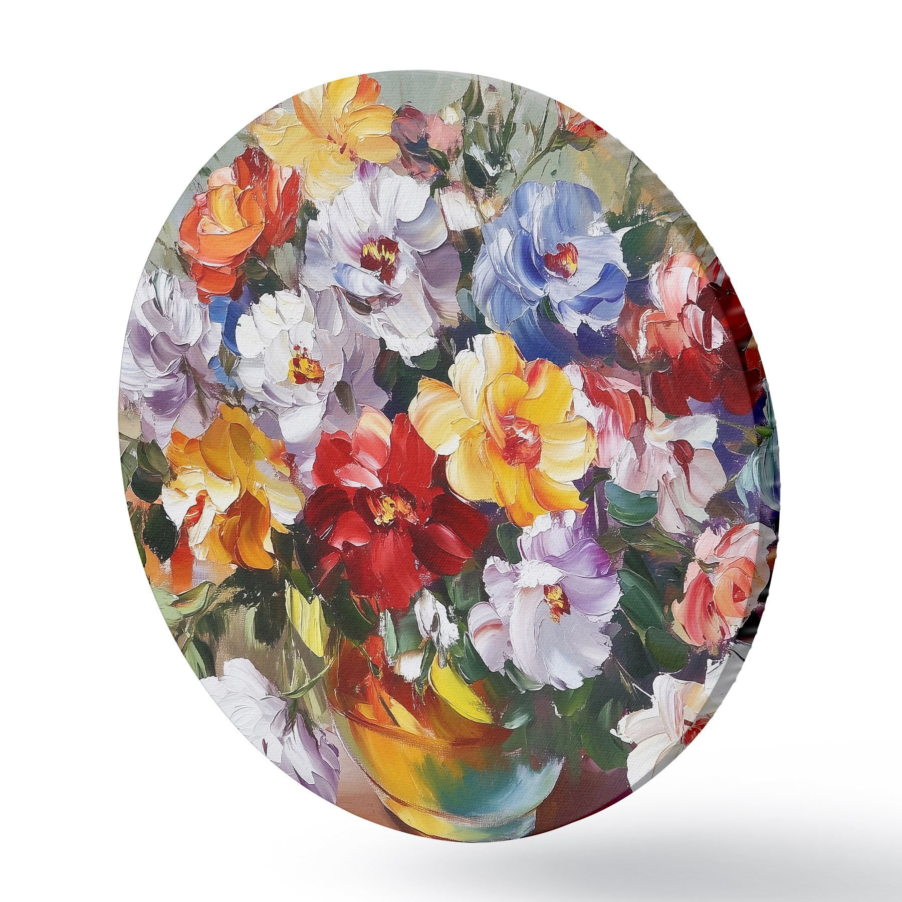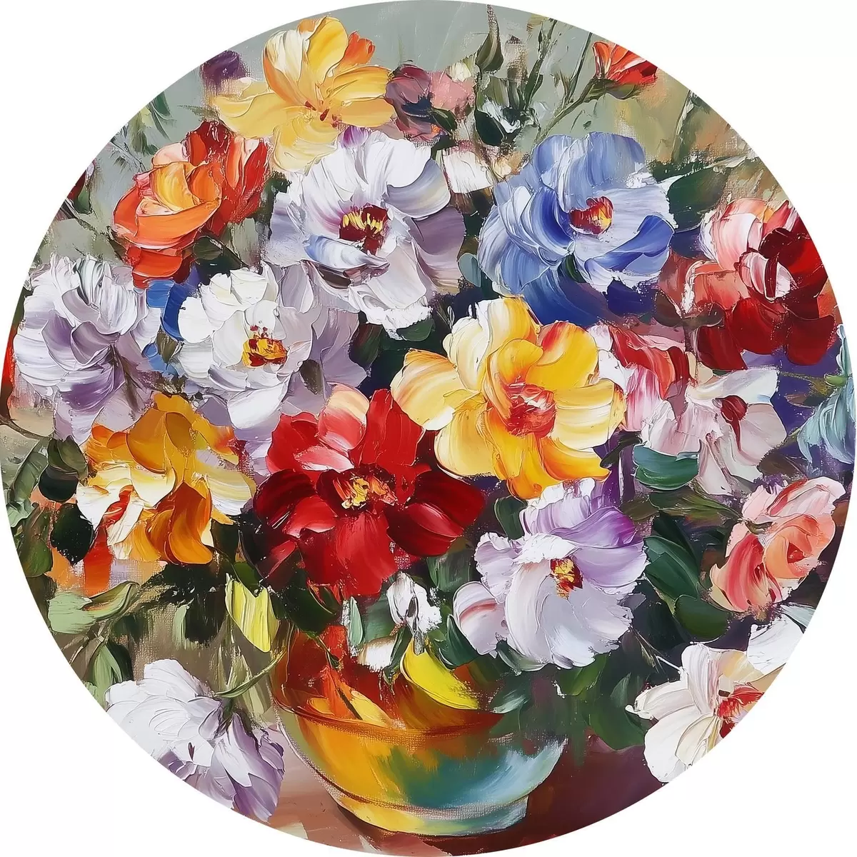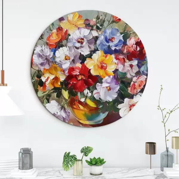 Runde Gemälde Mehrfarbige Blumen in einer Vase im Stil von Ölfarben r43909