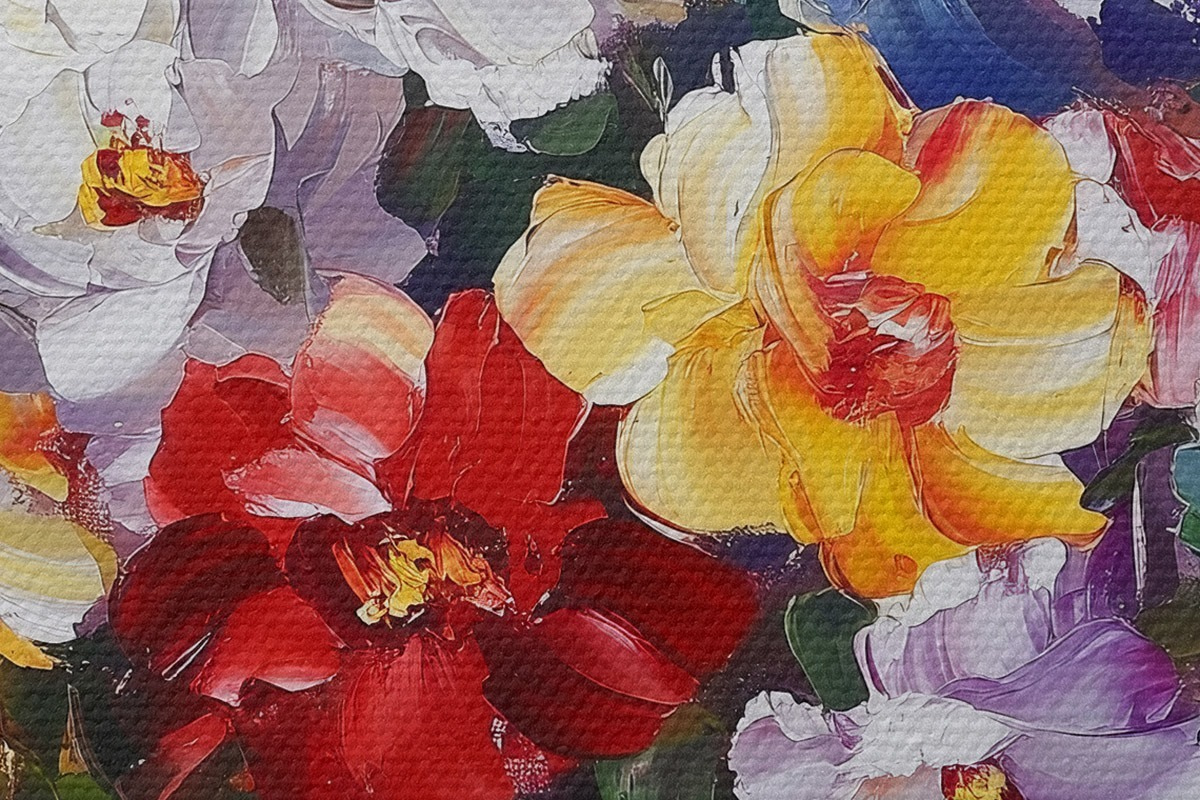 Drei Materialtypen stehen zur Verfügung: Economic Canvas - ein dichtes und haltbares Material für den Digitaldruck, identisch mit Malerleinwand, wasserfeste Oberfläche, realistische Wiedergabe von Details, mittelkörniges Material. Premium Canvas - die Textur ähnelt der einer Malerleinwand (verwobene kleine Fäden). Weiche, detaillierte Wiedergabe des Bildes auf einer matten Oberfläche. Eco-Premium - hochwertiges Gewebe aus 100% Baumwolle. Dank der natürlichen Baumwollfasern ist das Material langlebig und verschleißfest. Hervorragende Farbwiedergabe und Detailtreue.