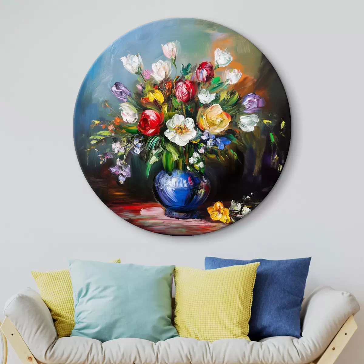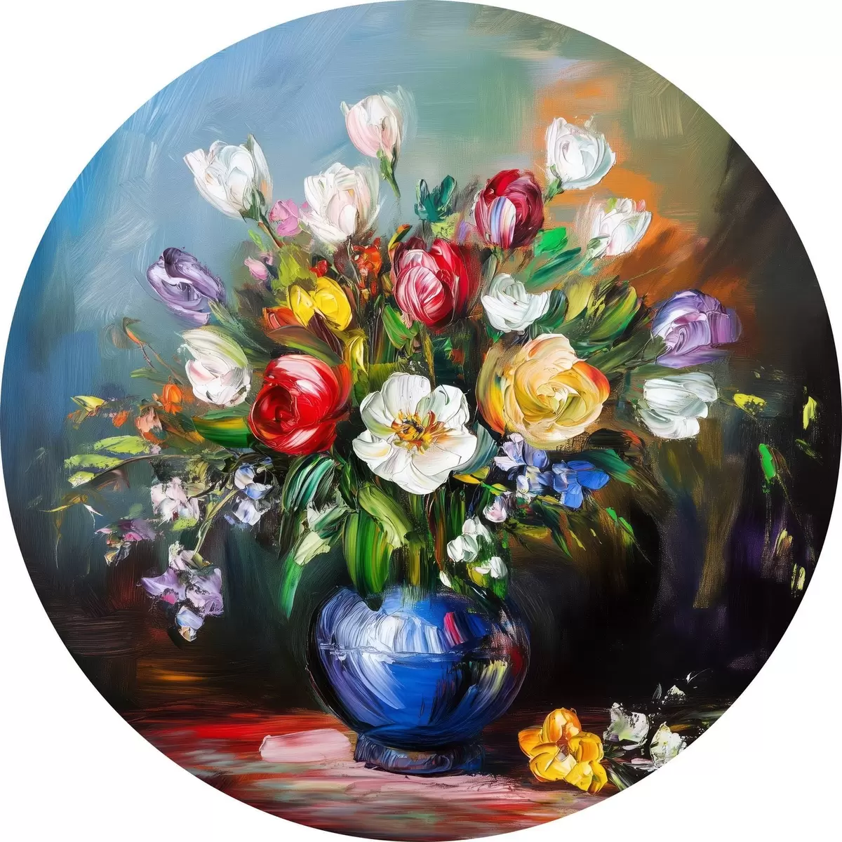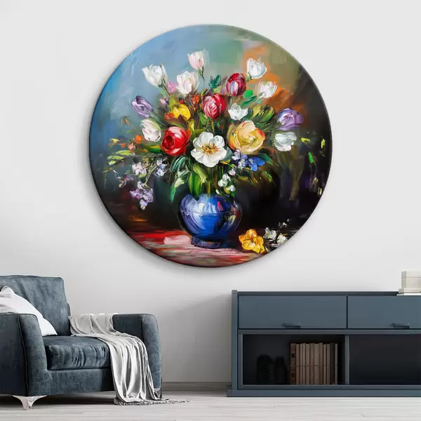 Runde Gemälde Blumenstrauß aus bunten Blumen r43911