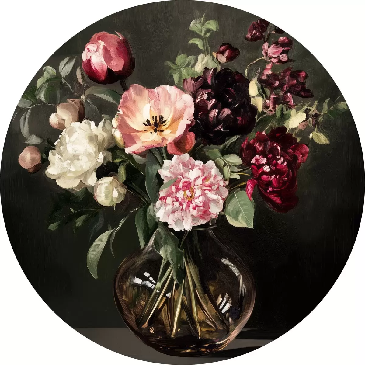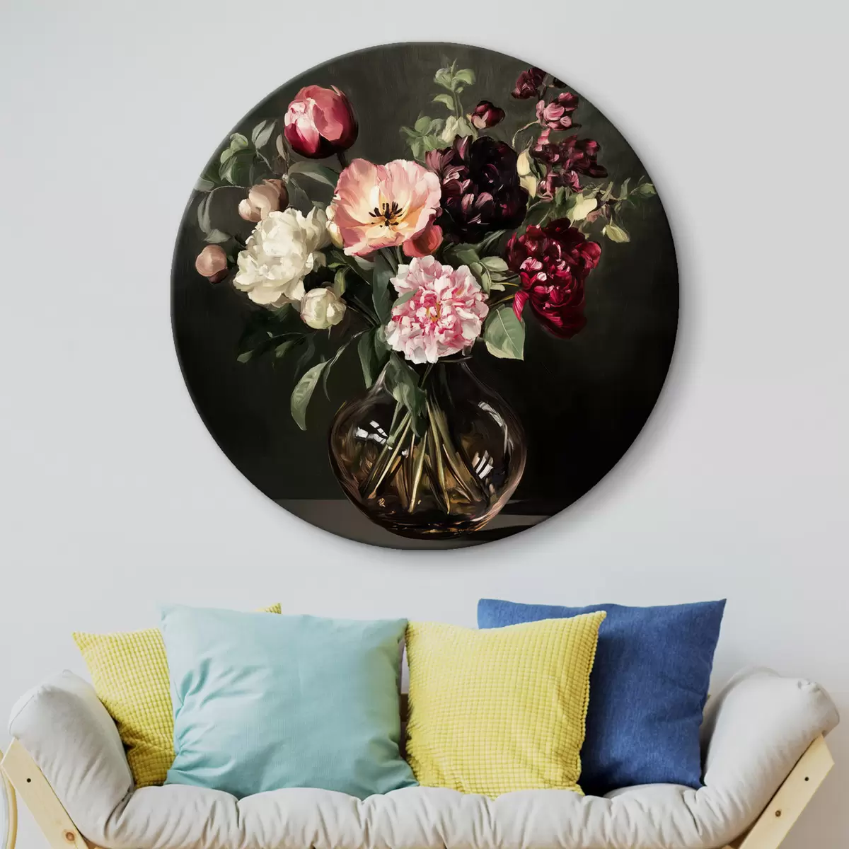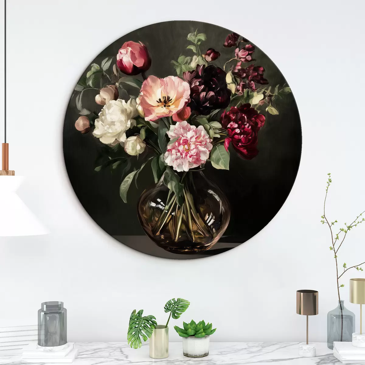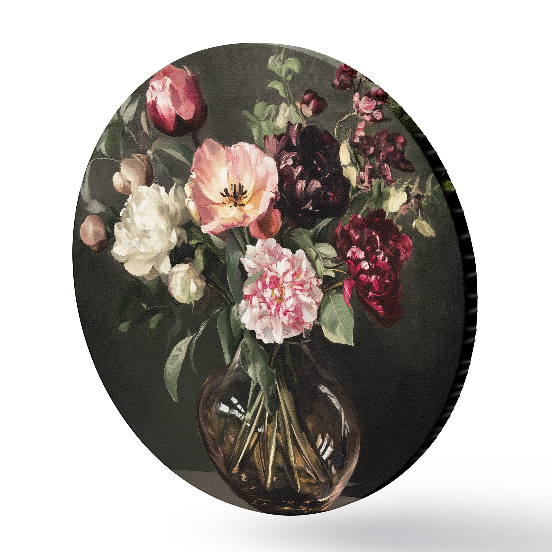 Runde Gemälde Blumenstrauß auf dunklem Hintergrund r43912