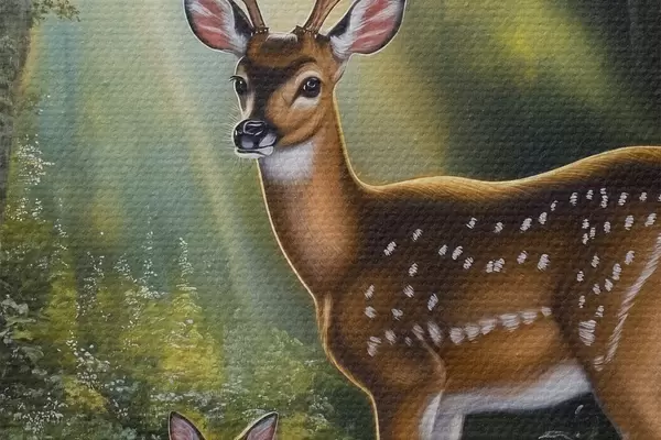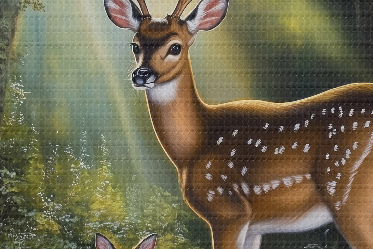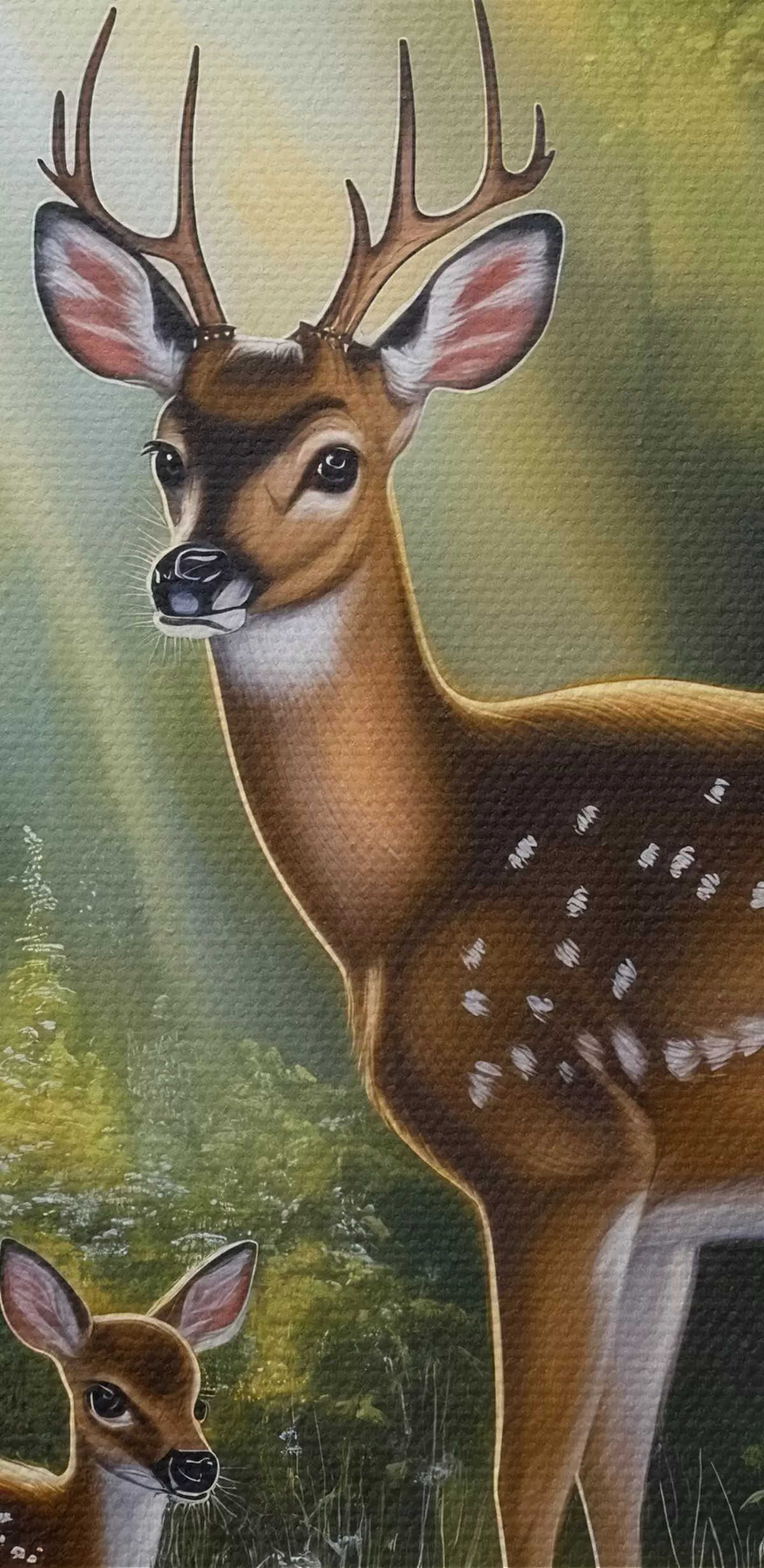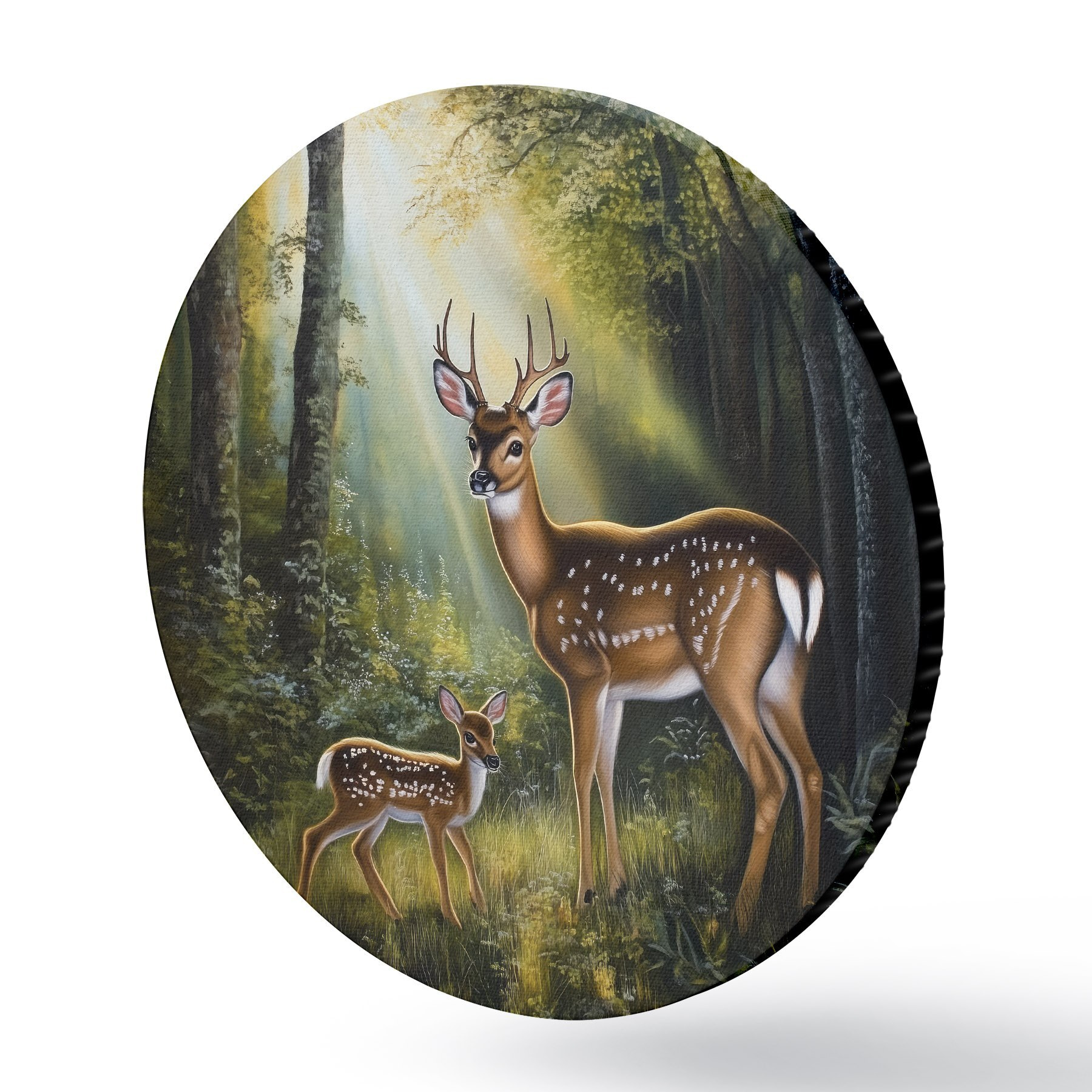 Runde Gemälde Hirsch und Rehkitz im Wald r43915