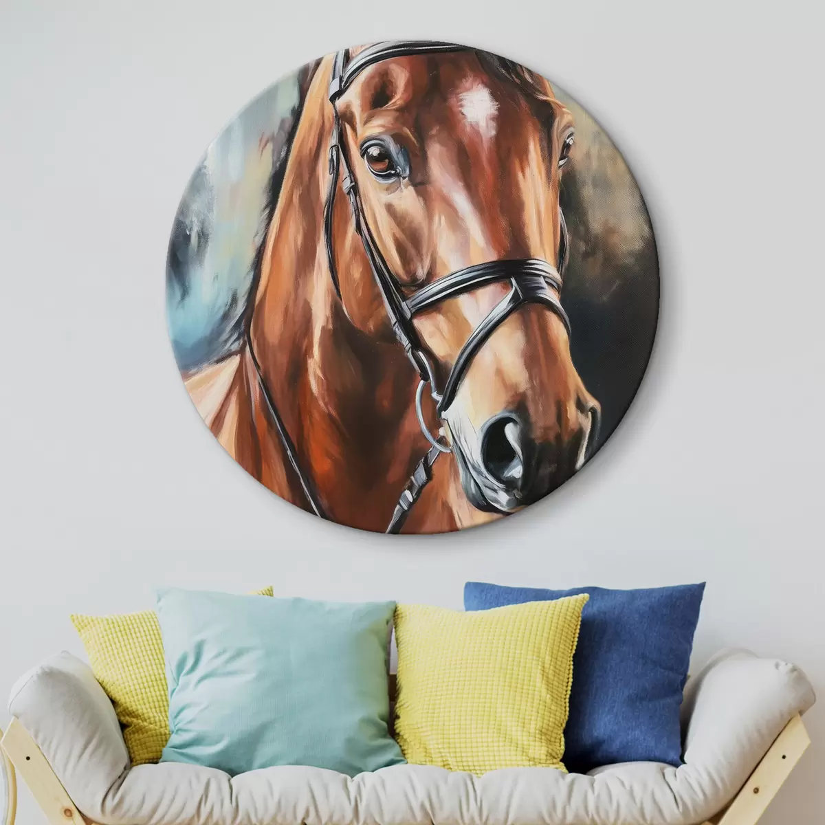 Runde Gemälde Porträt eines Pferdes r43917