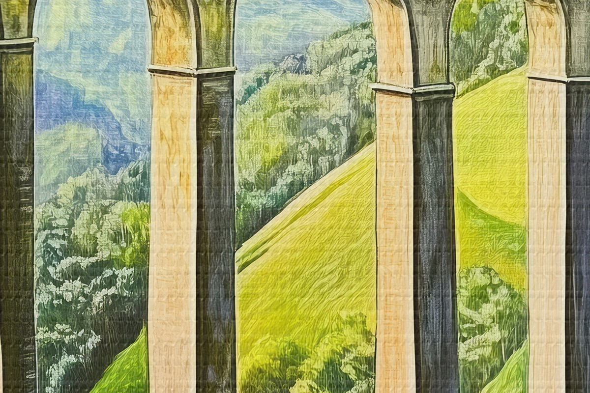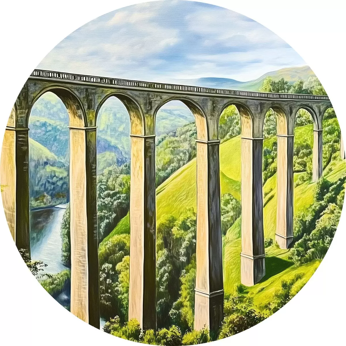 Runde Gemälde Alte Brücke in den Bergen r43920