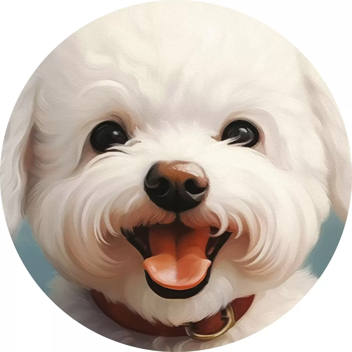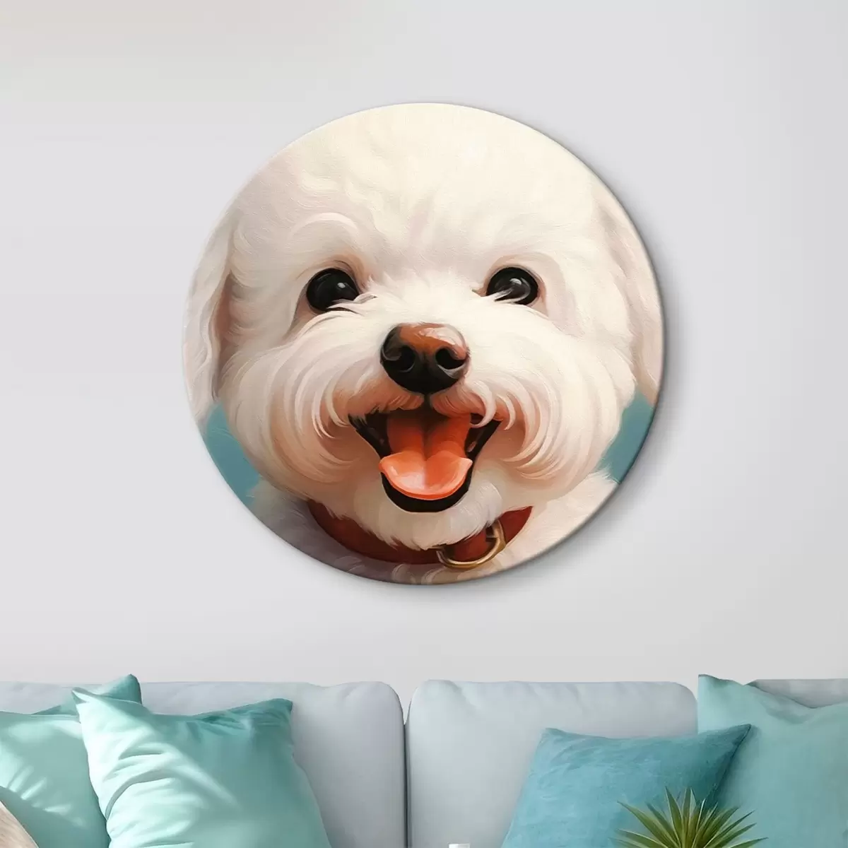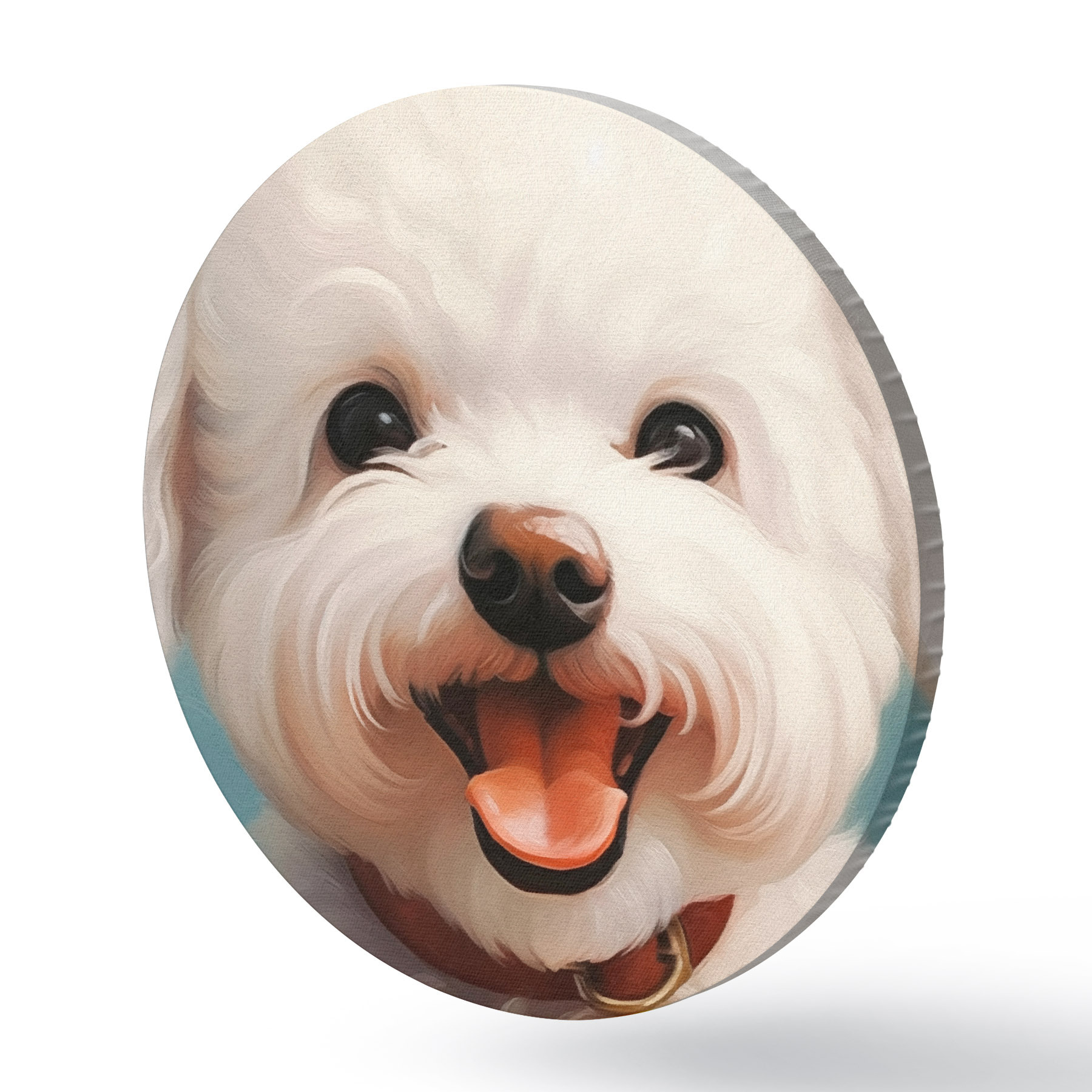 Runde Gemälde Fröhlicher weißer Hund r43935