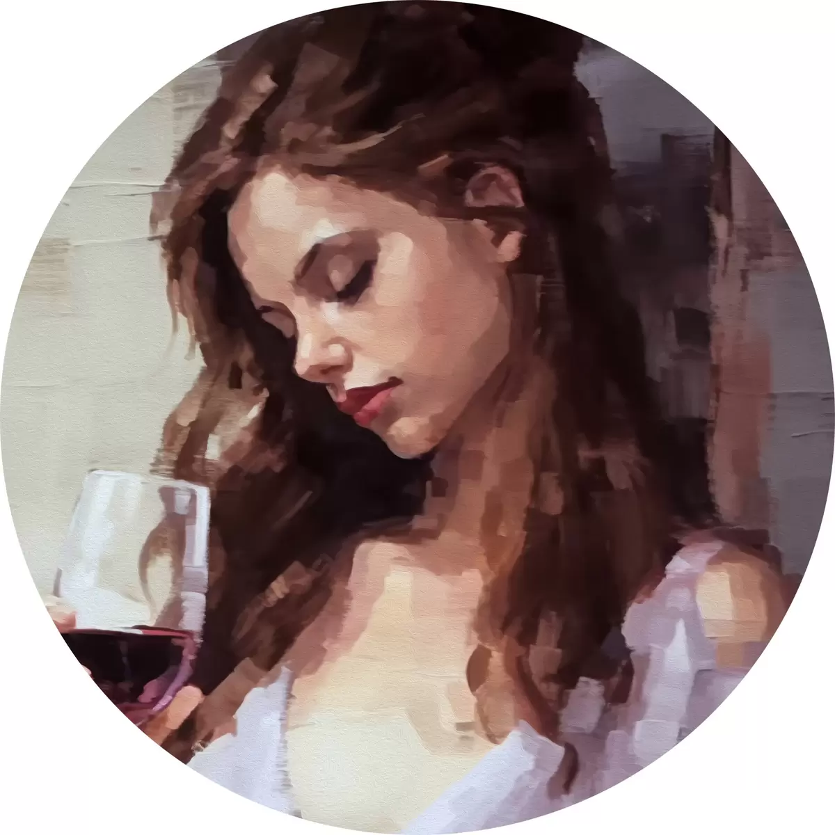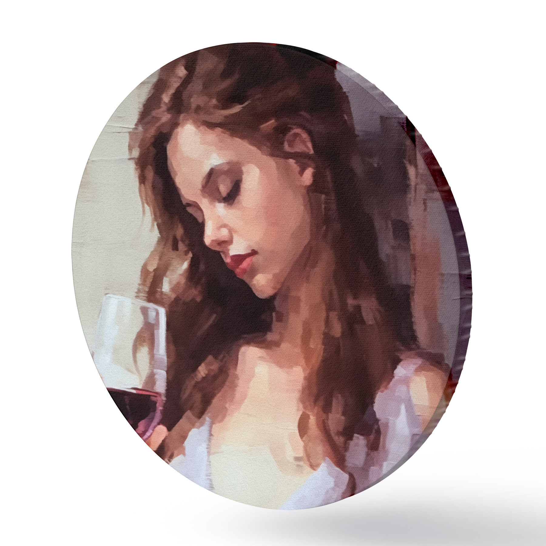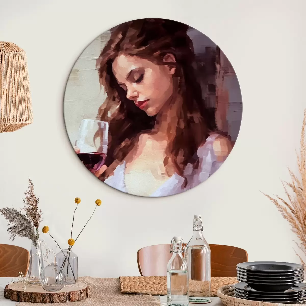 Runde Gemälde Mädchen mit einem Glas Wein r43940