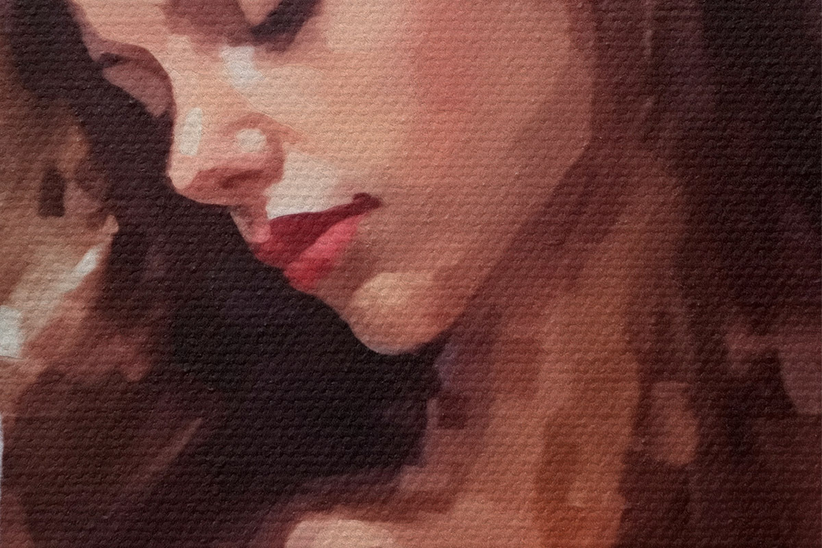 Um die Leinwand auf Keilrahmen zu spannen, ohne das Bild zu beschädigen, verwenden wir ein gespiegeltes Bild.