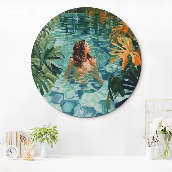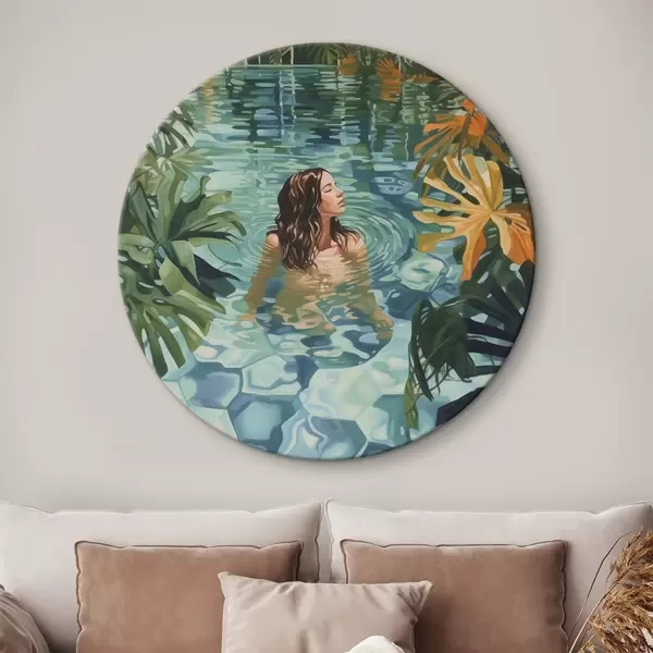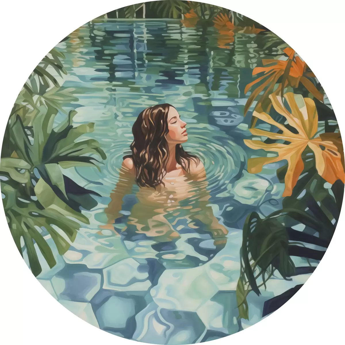 Runde Gemälde Mädchen im Pool Nachahmung Malerei r43961