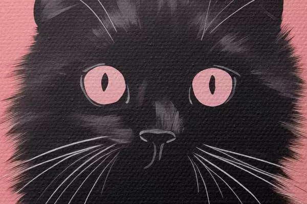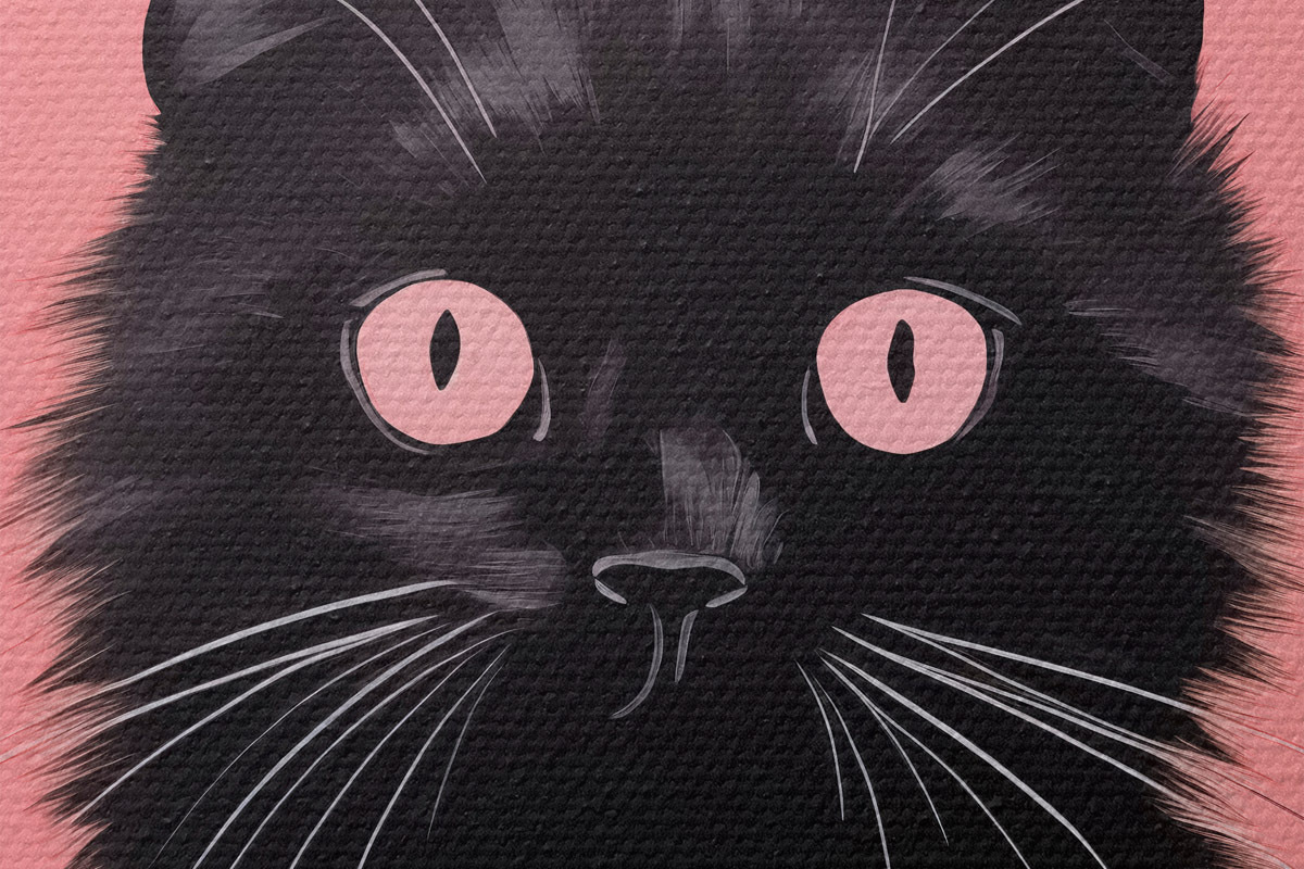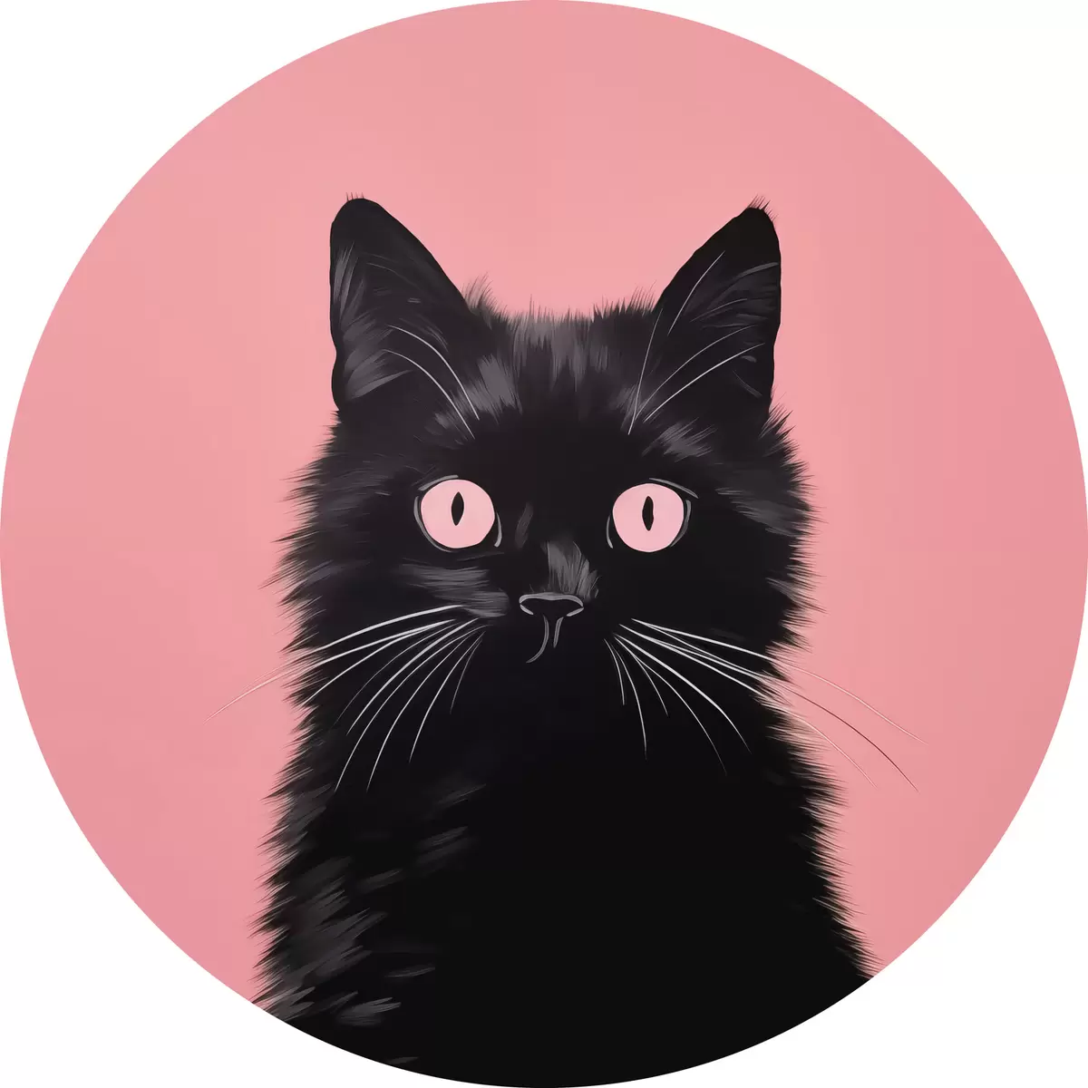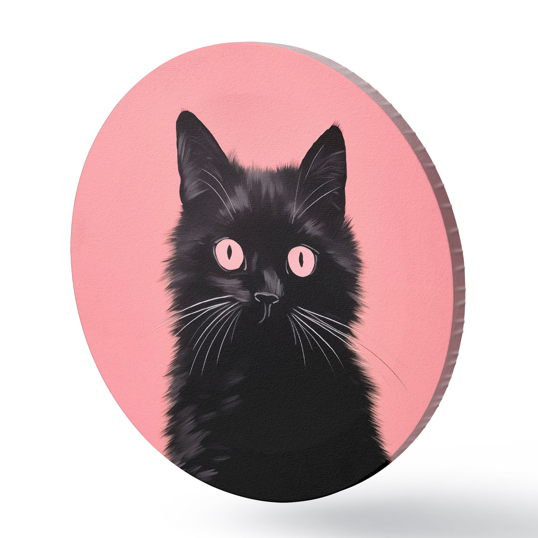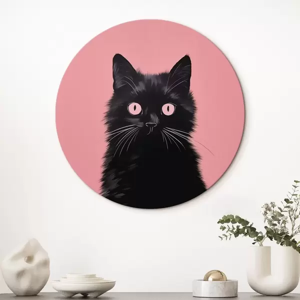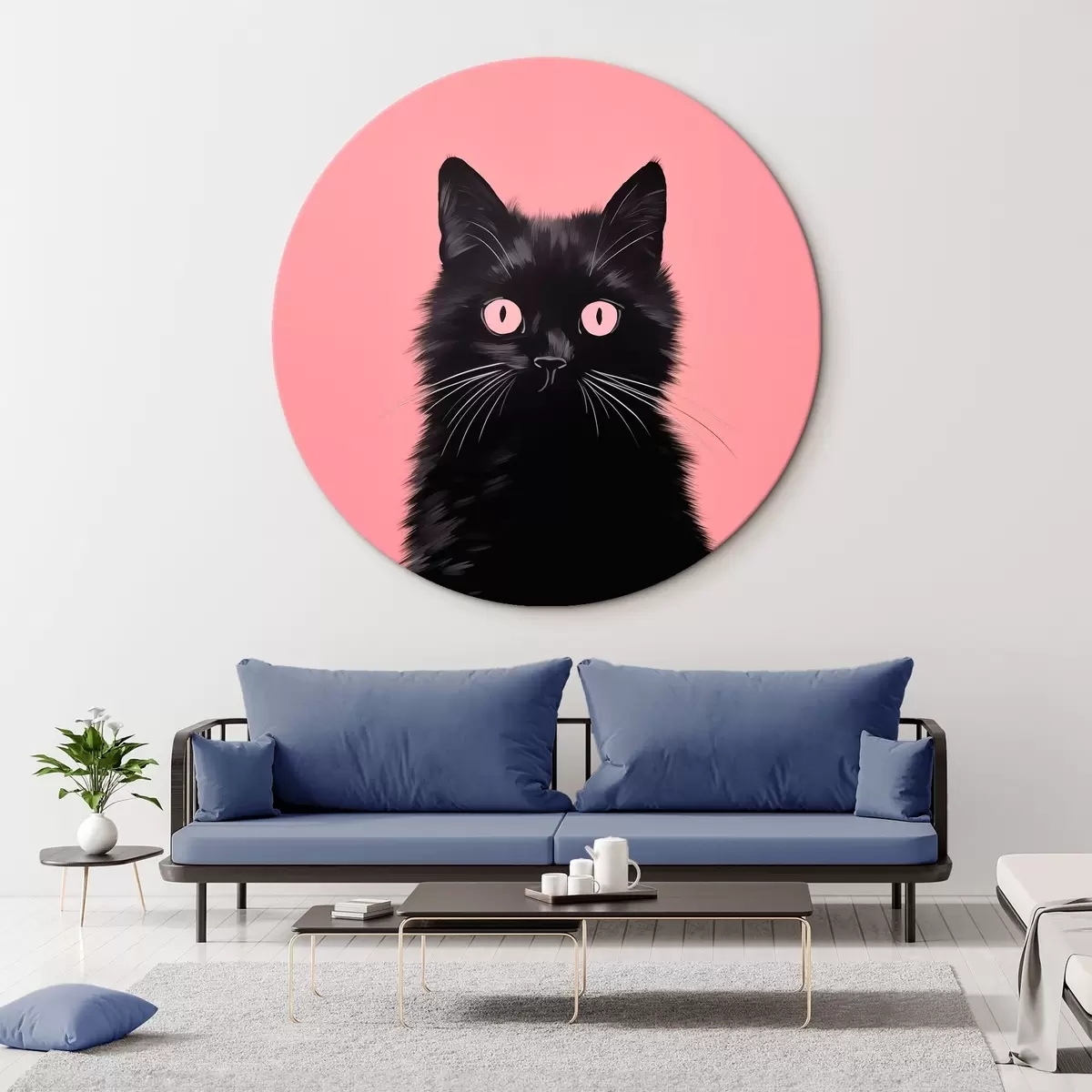 Runde Gemälde Schwarze Katze auf Rosa r43963