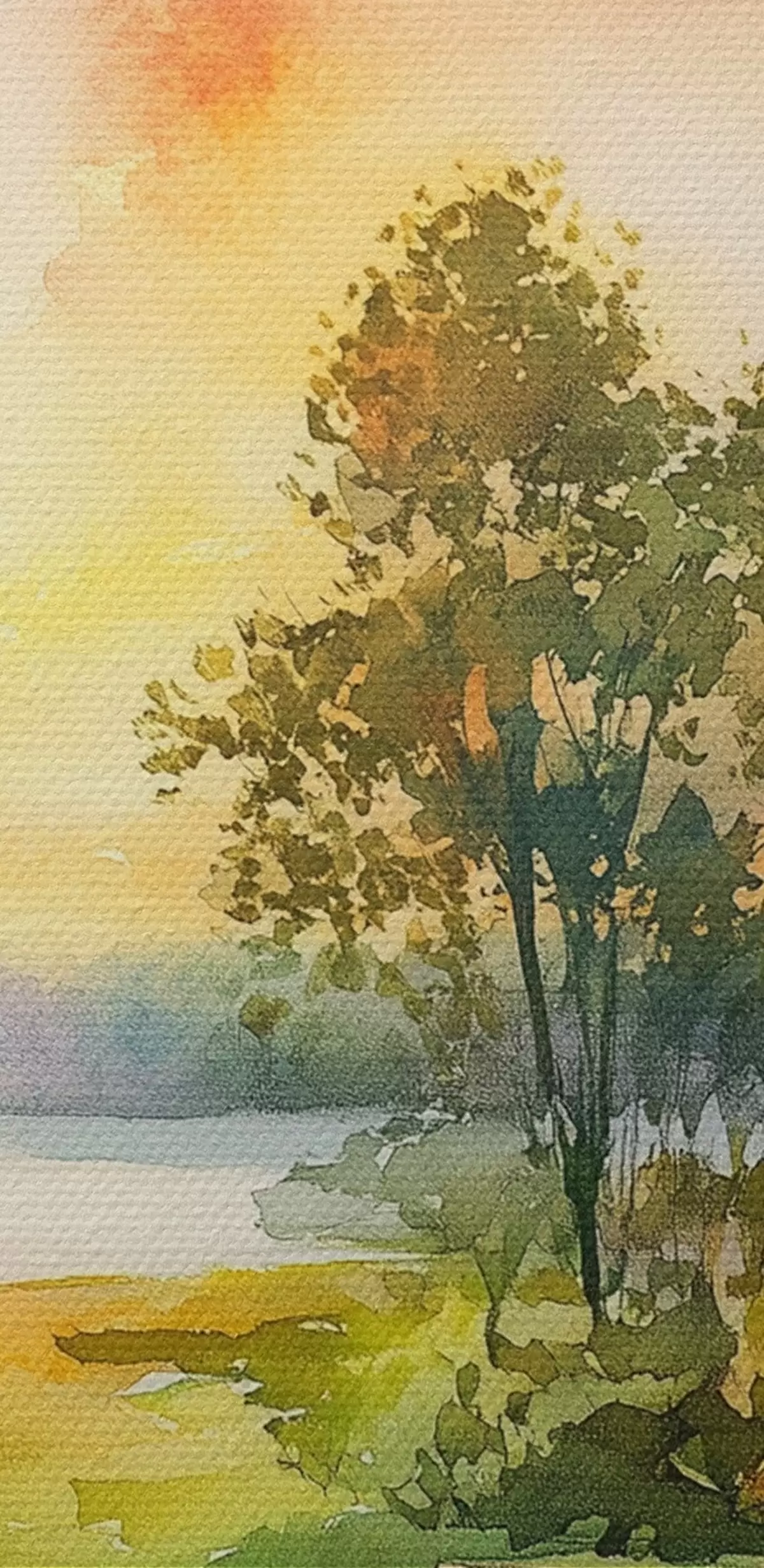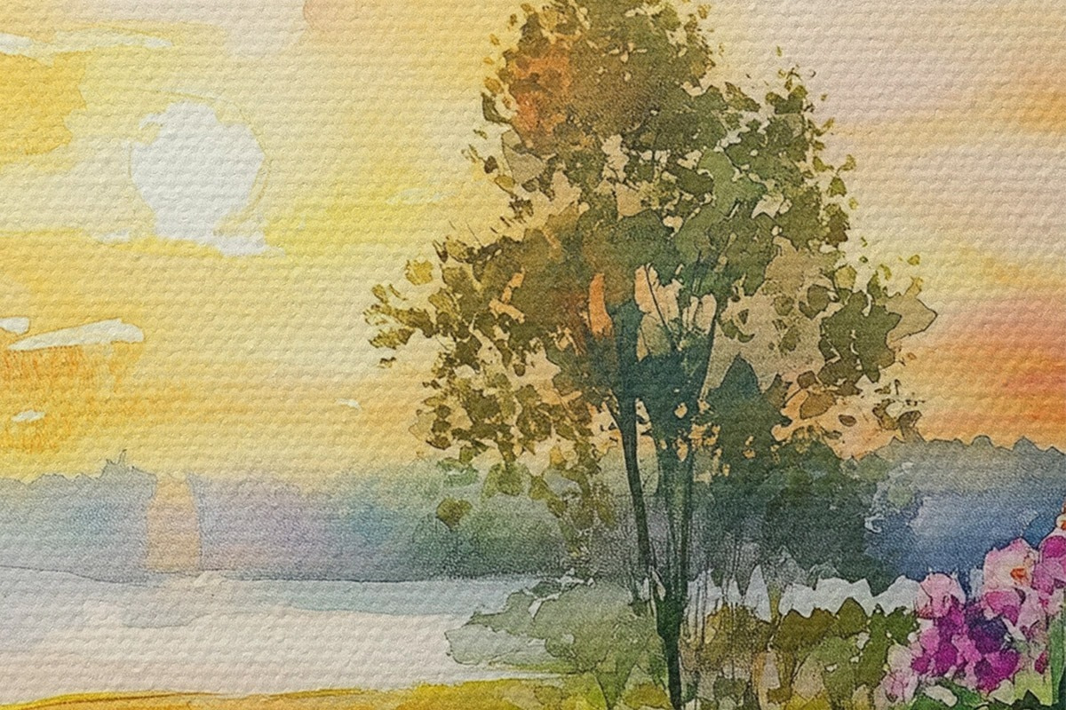 Bild Farben des Sonnenuntergangs, Bauernhaus, Aquarellstil, rustikal, Sommerblumen Nr r44017