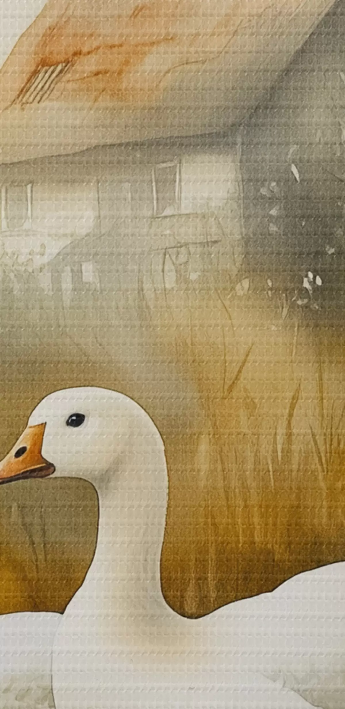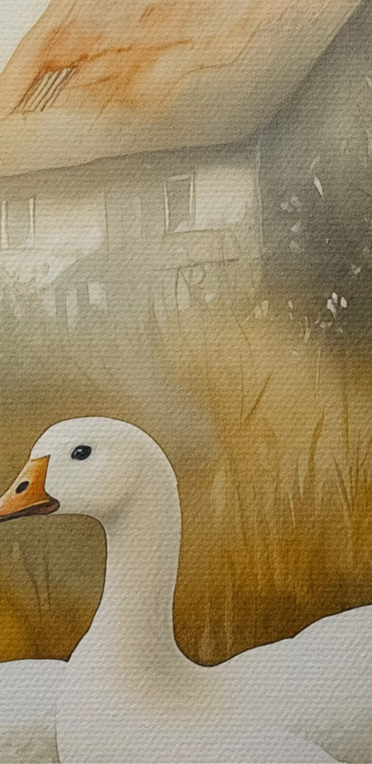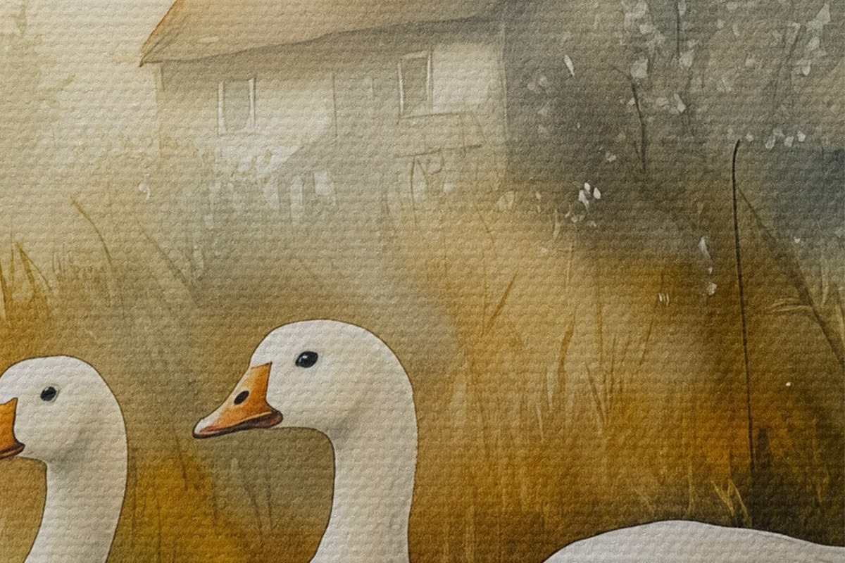 Bild Gänse im See in der Nähe des Bauernhauses, rustikal, Aquarell-Stil Nr r44022