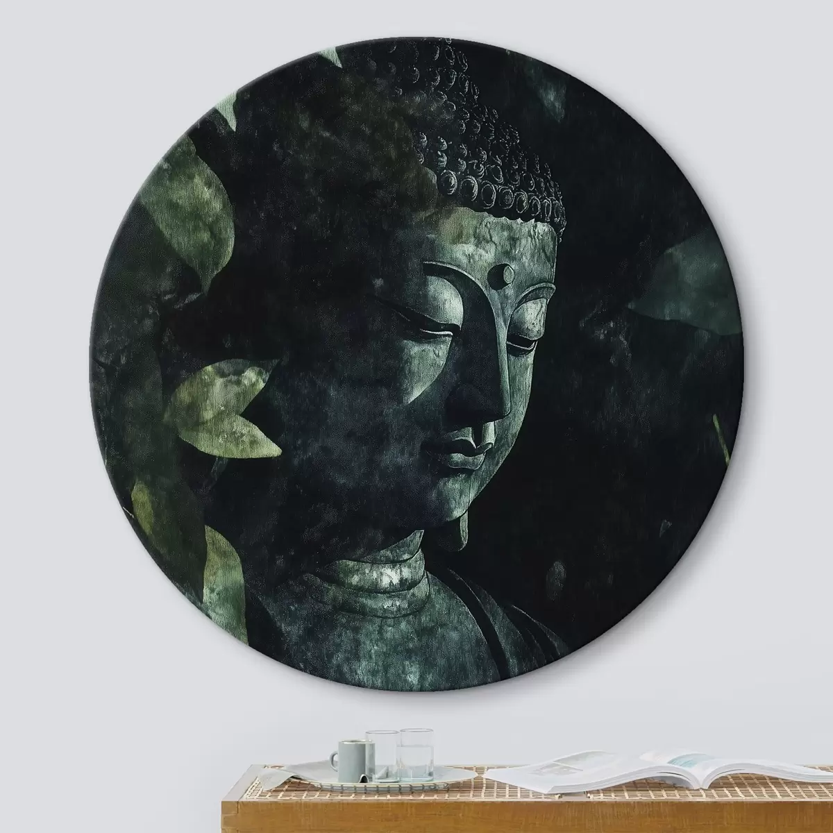 Runde Gemälde Meditativer Buddha in den grünen Blättern, spirituell r44029