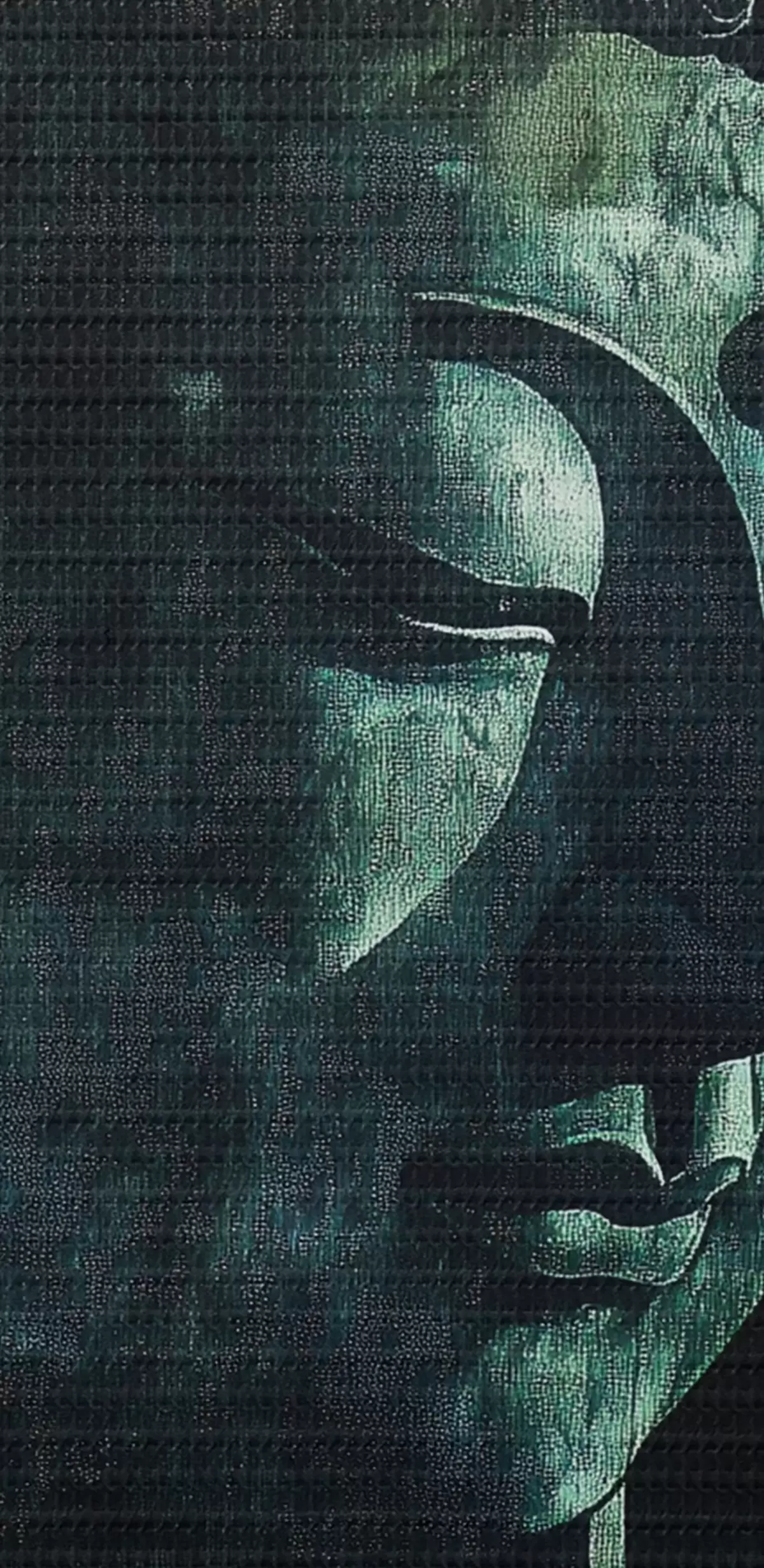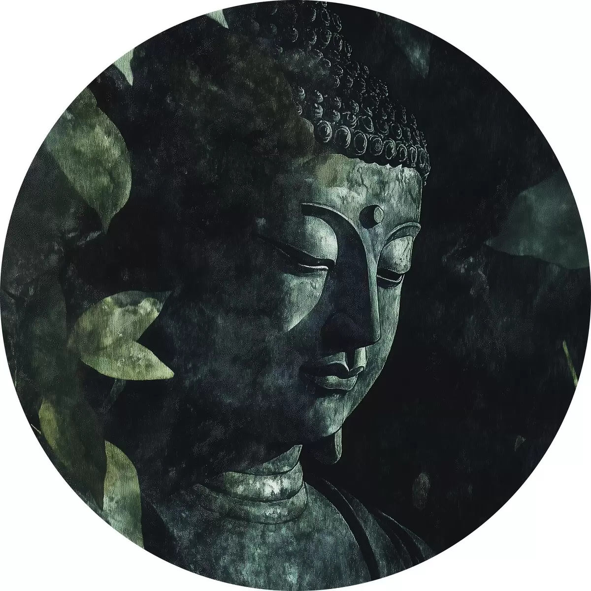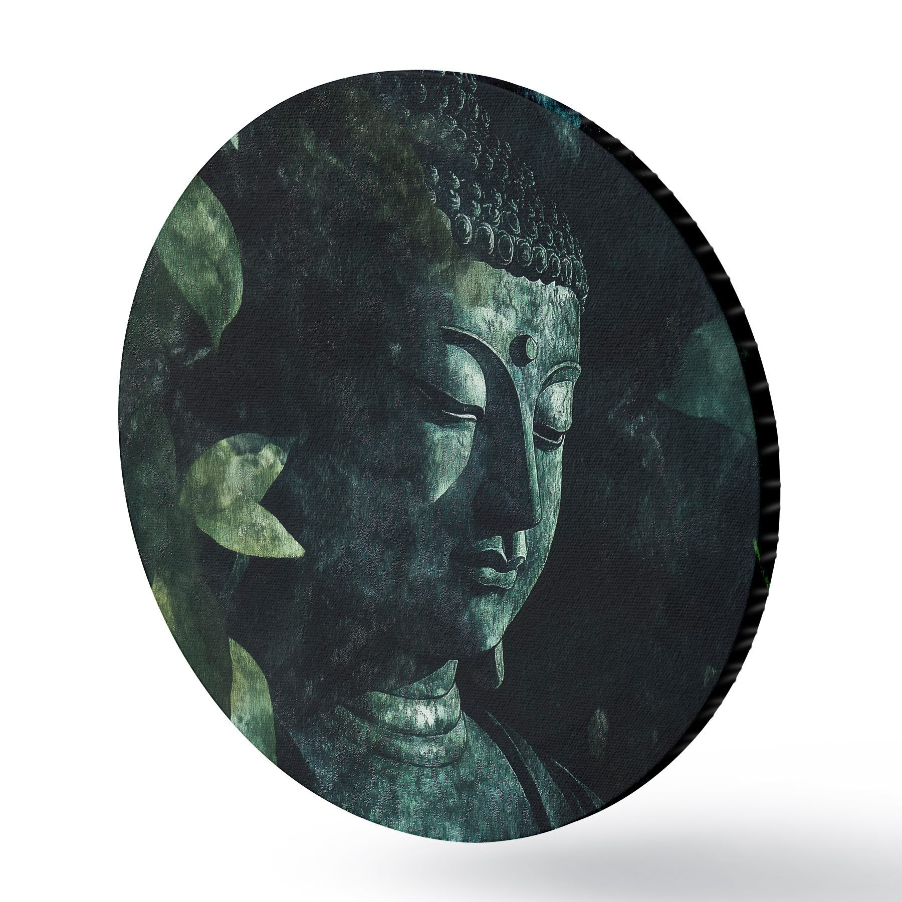 Runde Gemälde Meditativer Buddha in den grünen Blättern, spirituell r44029