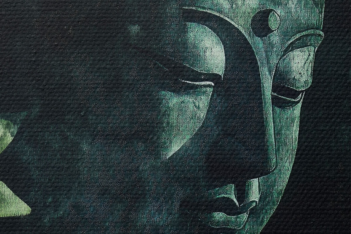 Bild Meditativer Buddha in den grünen Blättern, spirituell Nr r44029