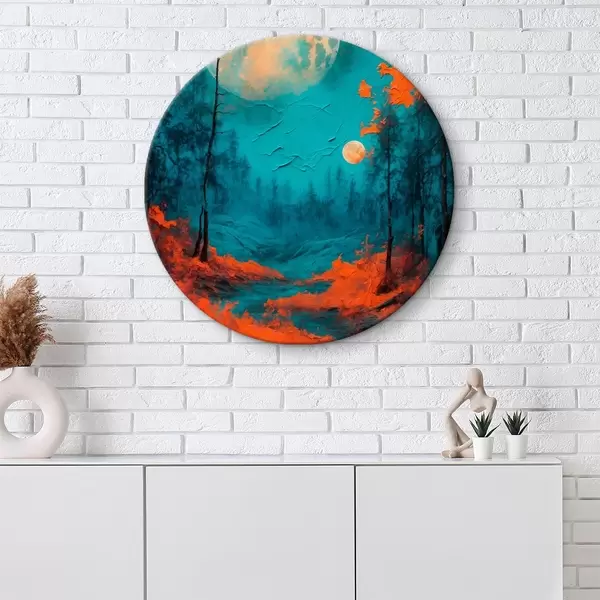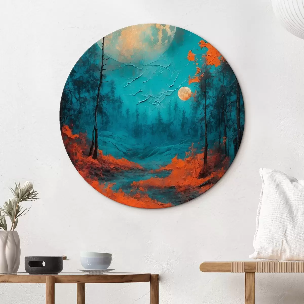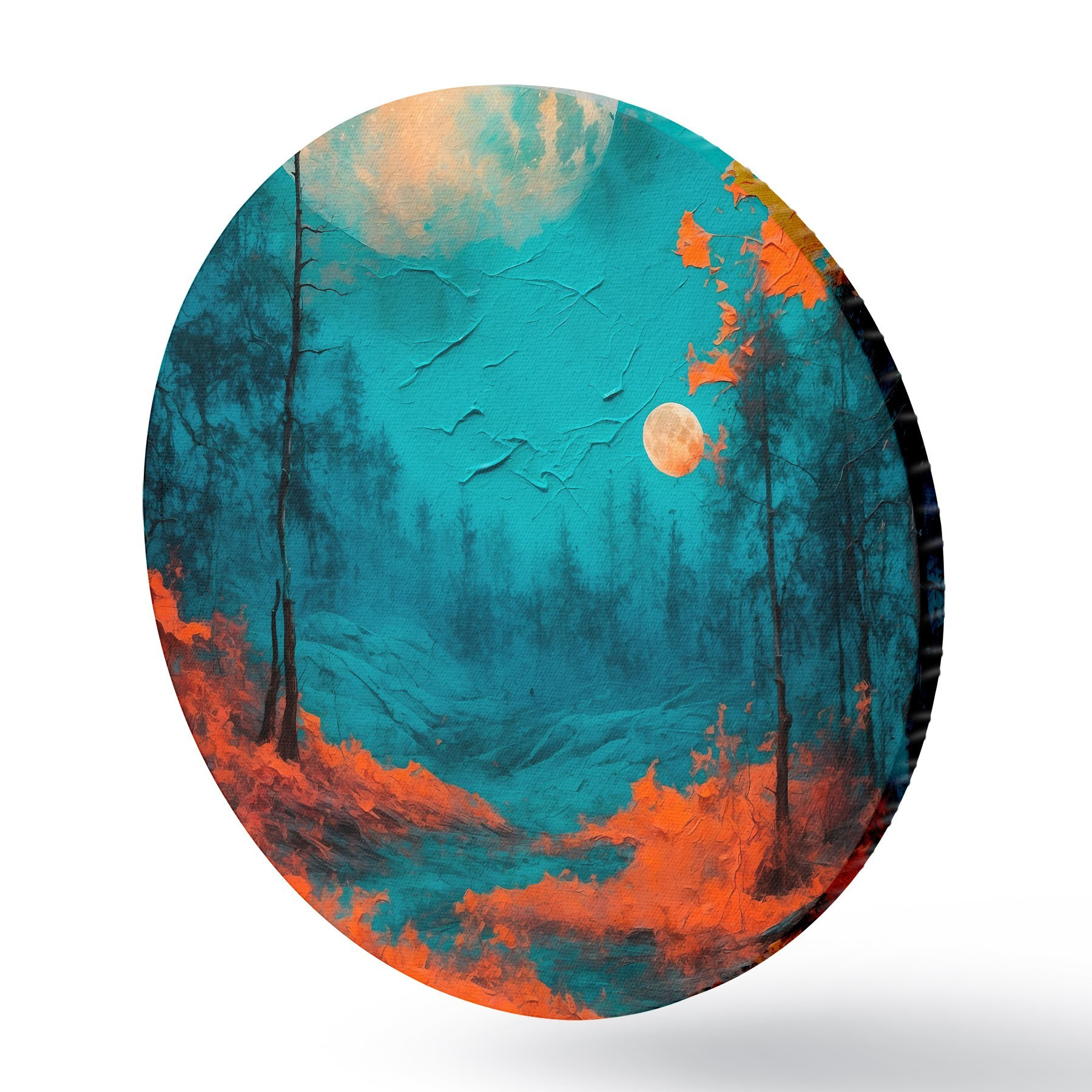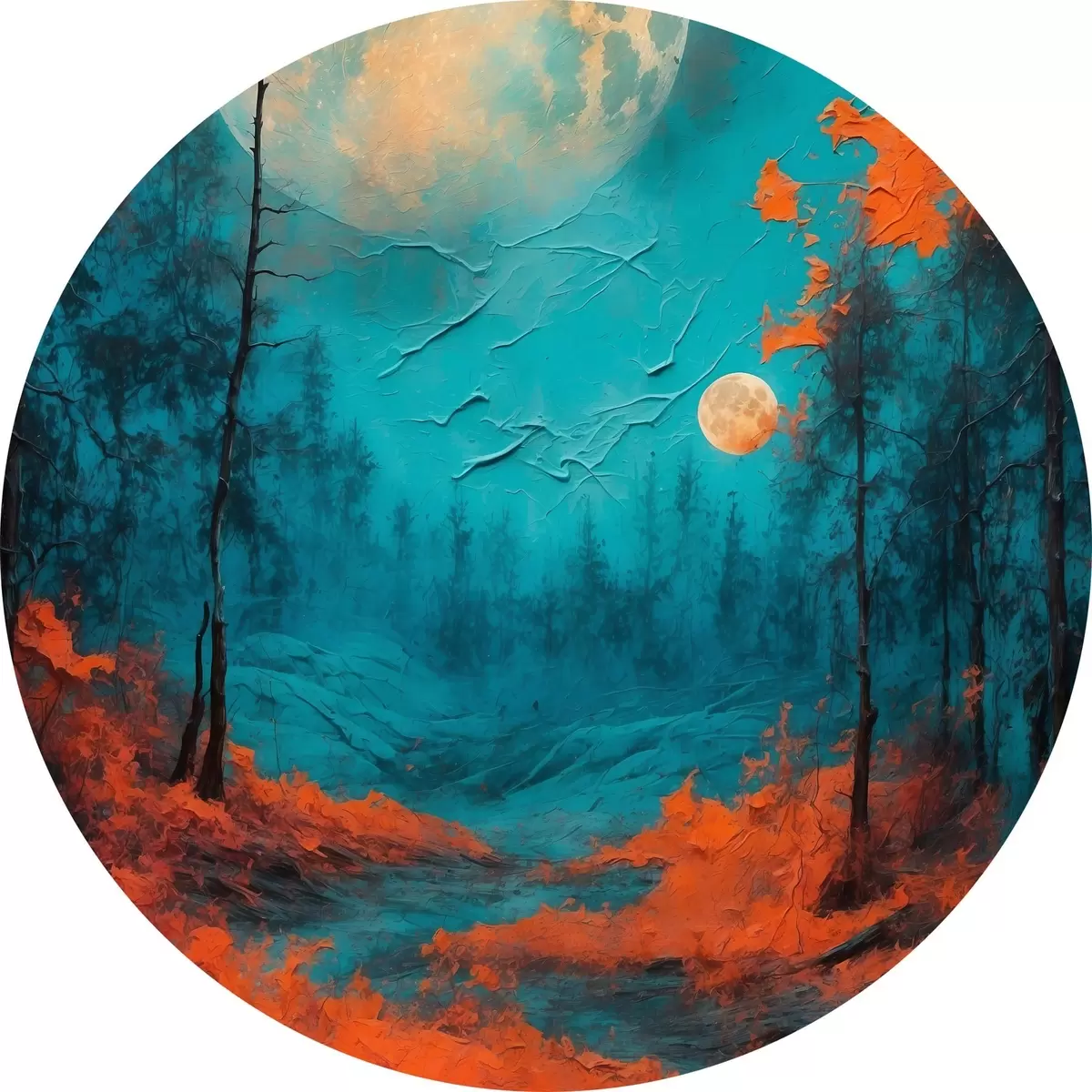 Runde Gemälde Schwarzer Wald in schwarzem Mond in Ölgemälde Stil r44063