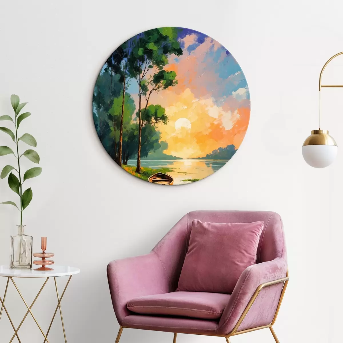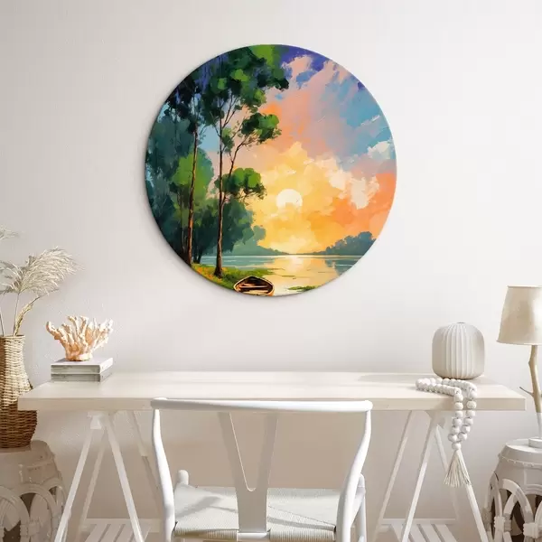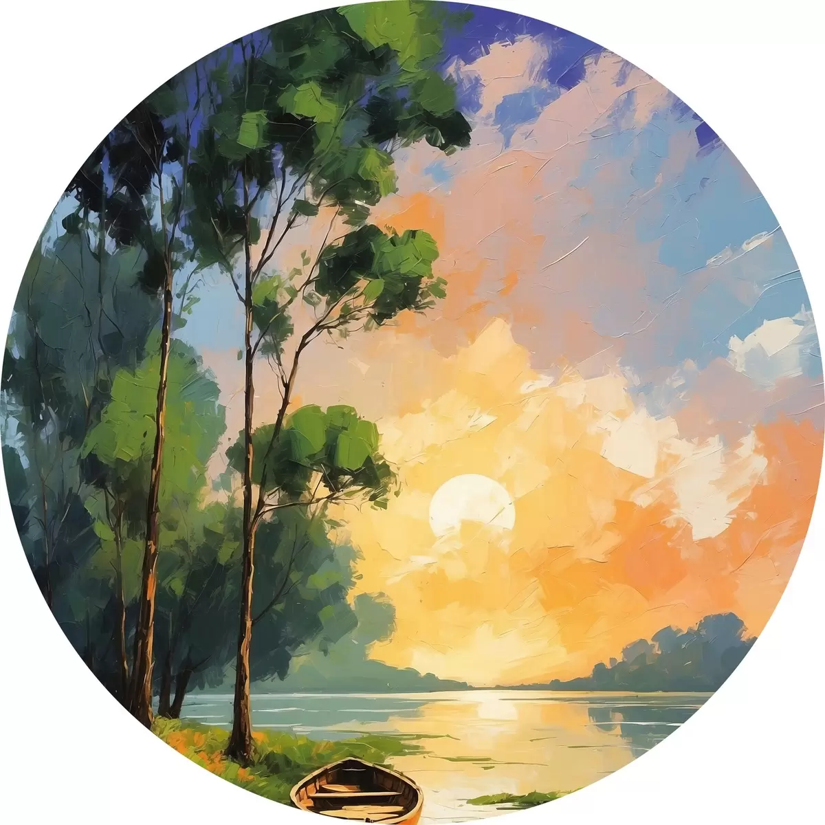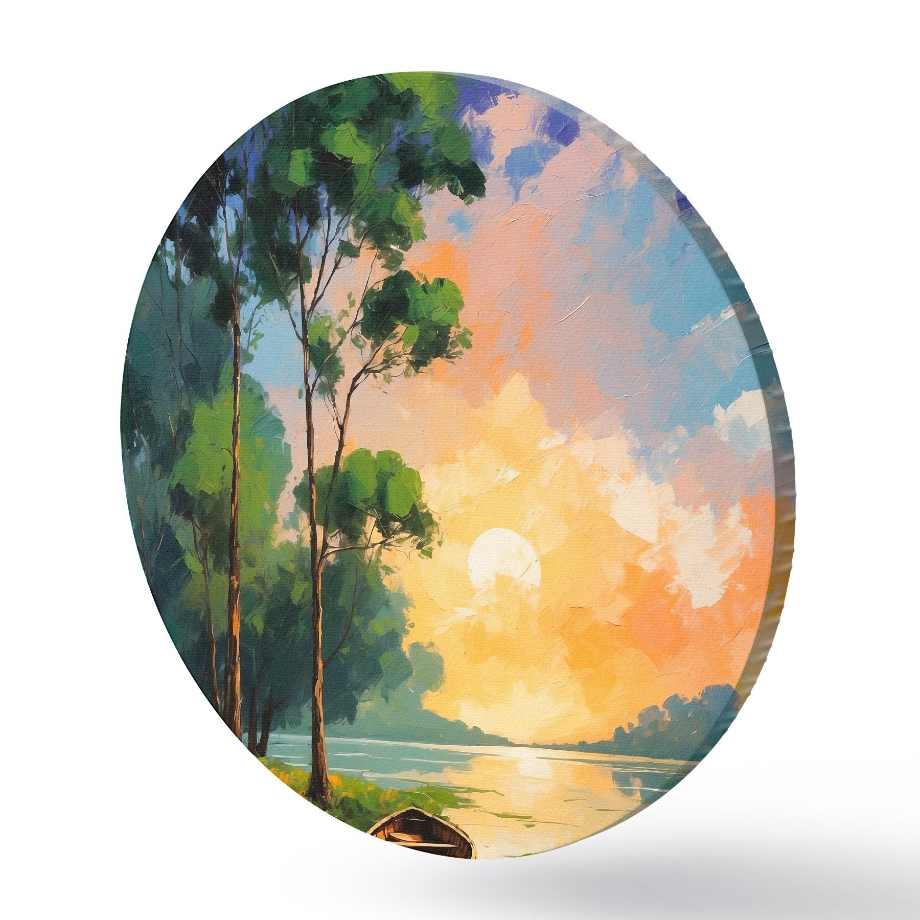 Runde Gemälde Boot in der Nähe einer Insel in Acrylmalerei Stil r44065