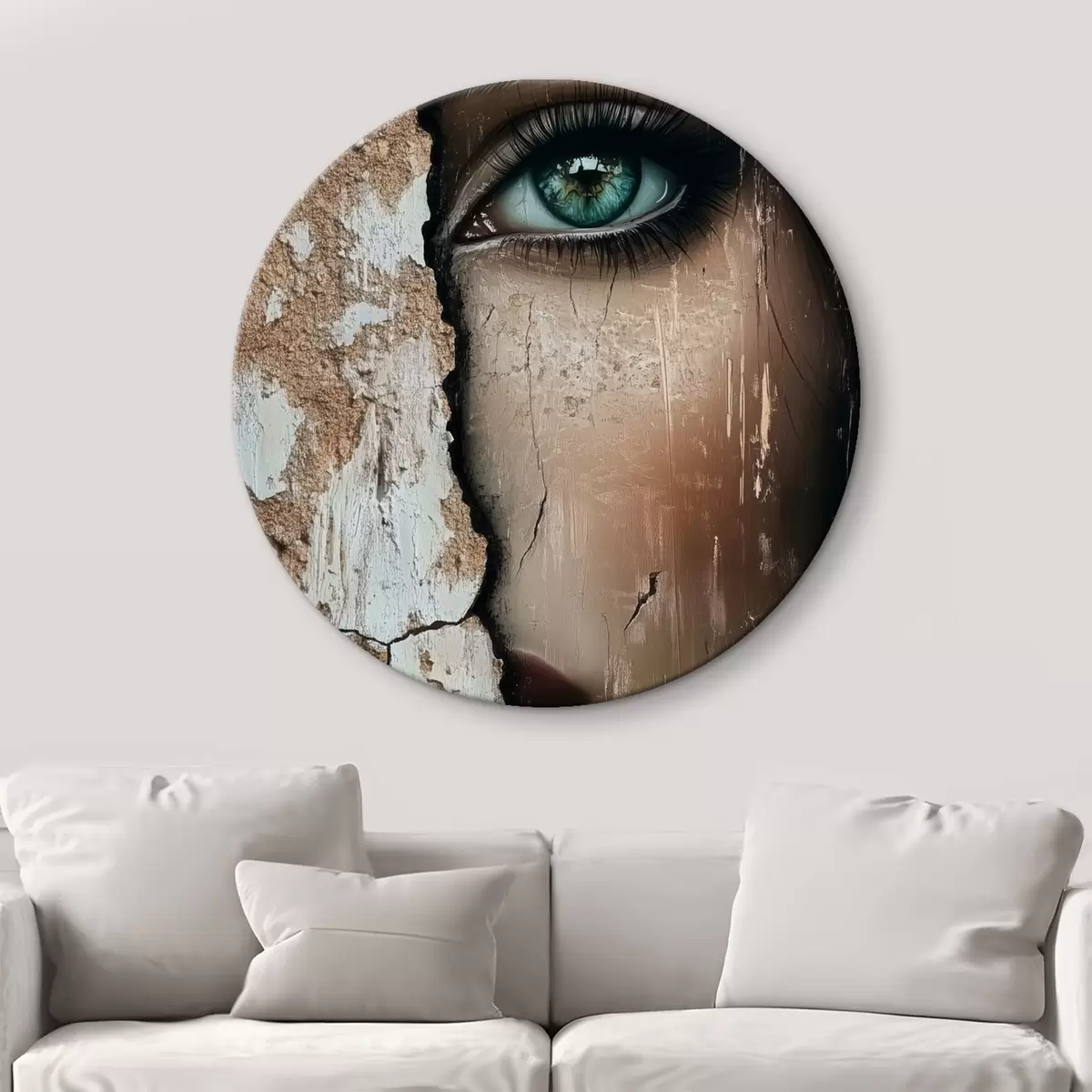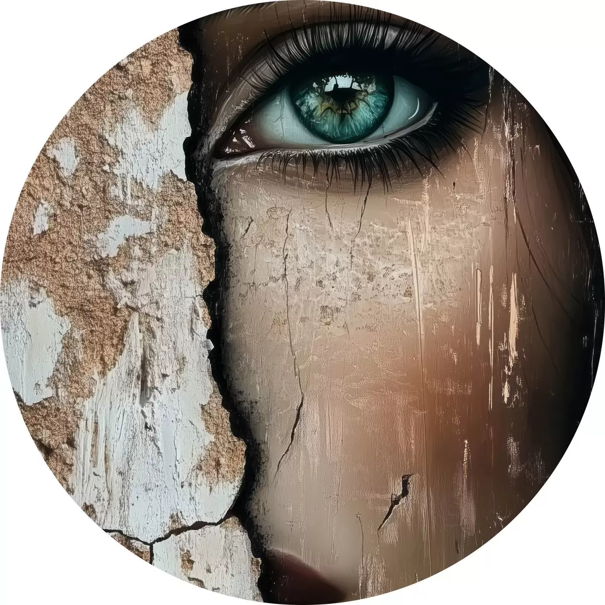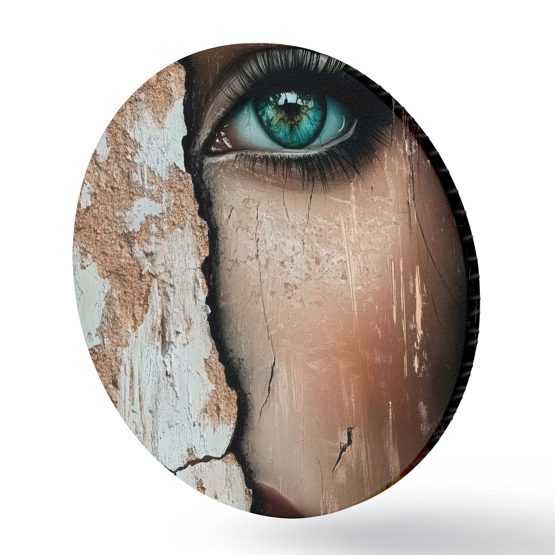 Runde Gemälde Das Gesicht eines Mädchens hinter einer alten Mauer r44069