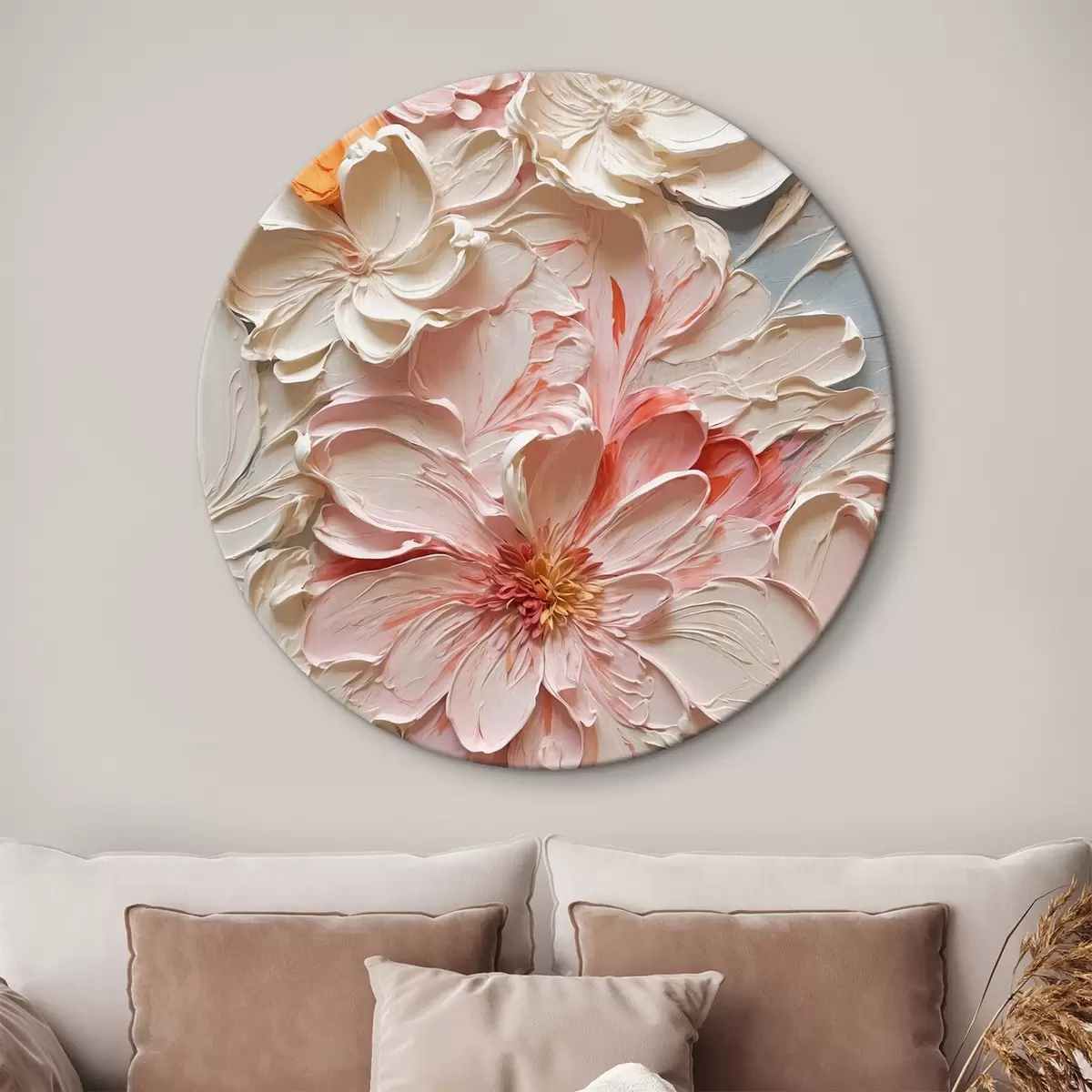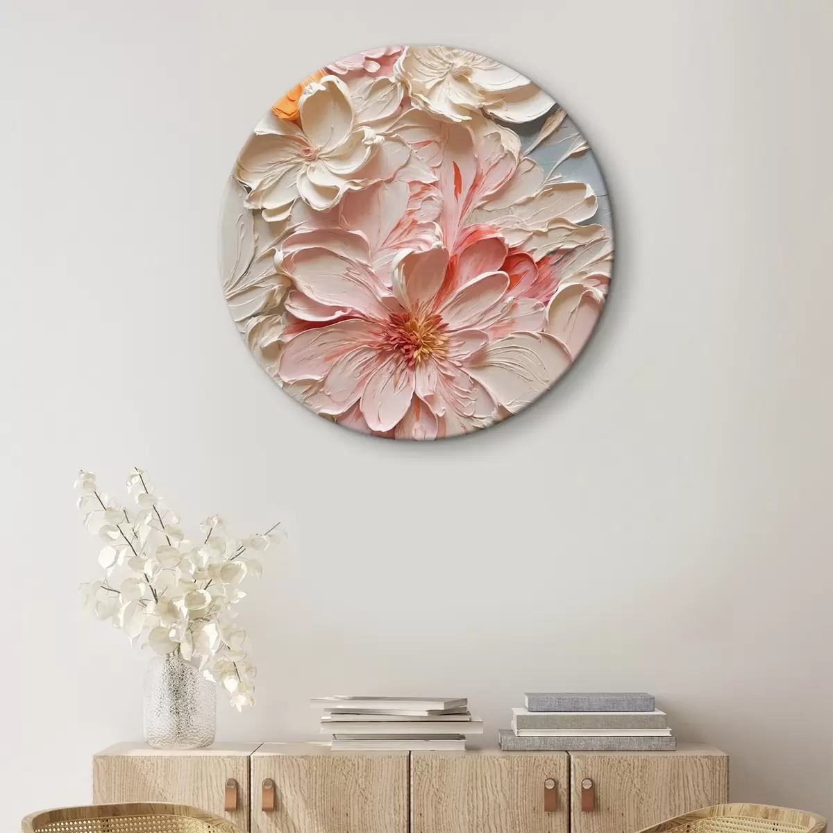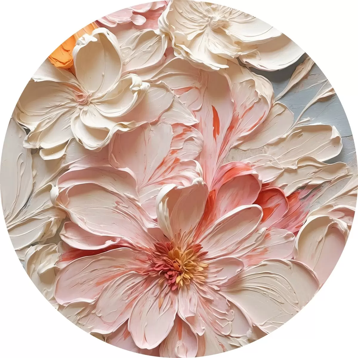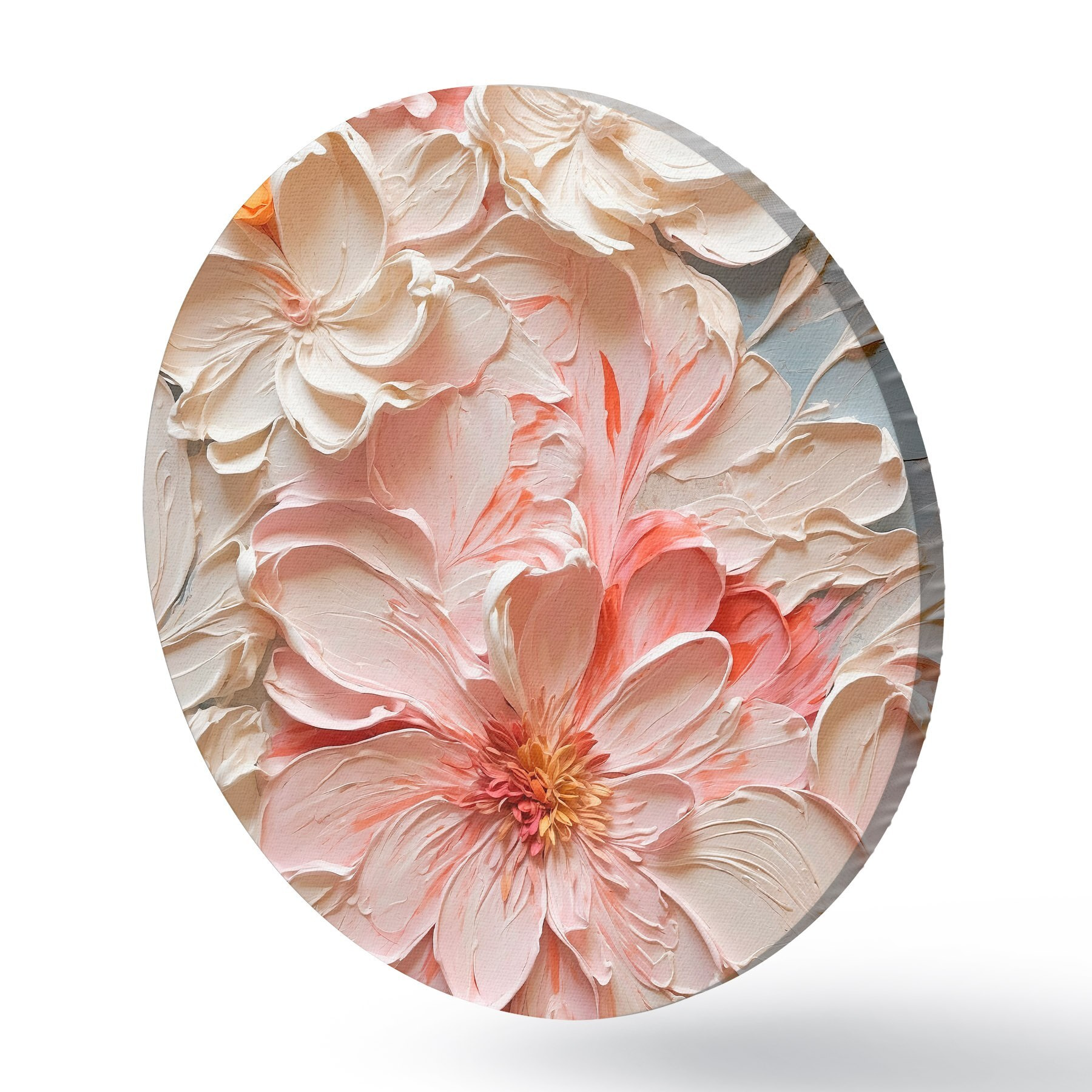 Runde Gemälde Weiße und rosa Blumen auf blauem Hintergrund in Ölmalerei Stil r44074