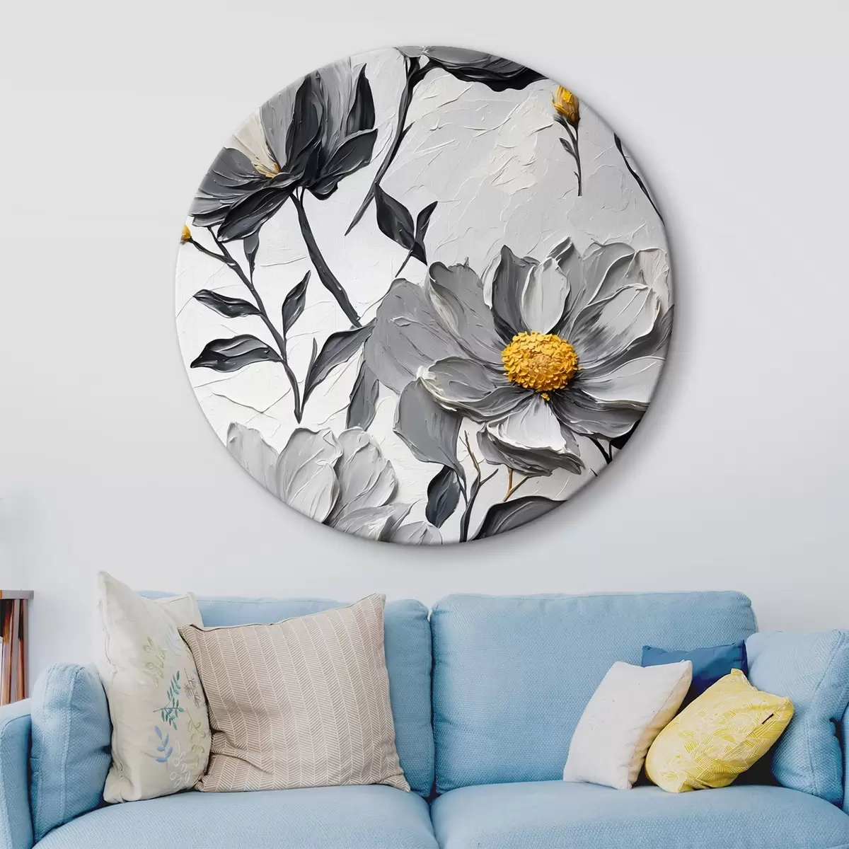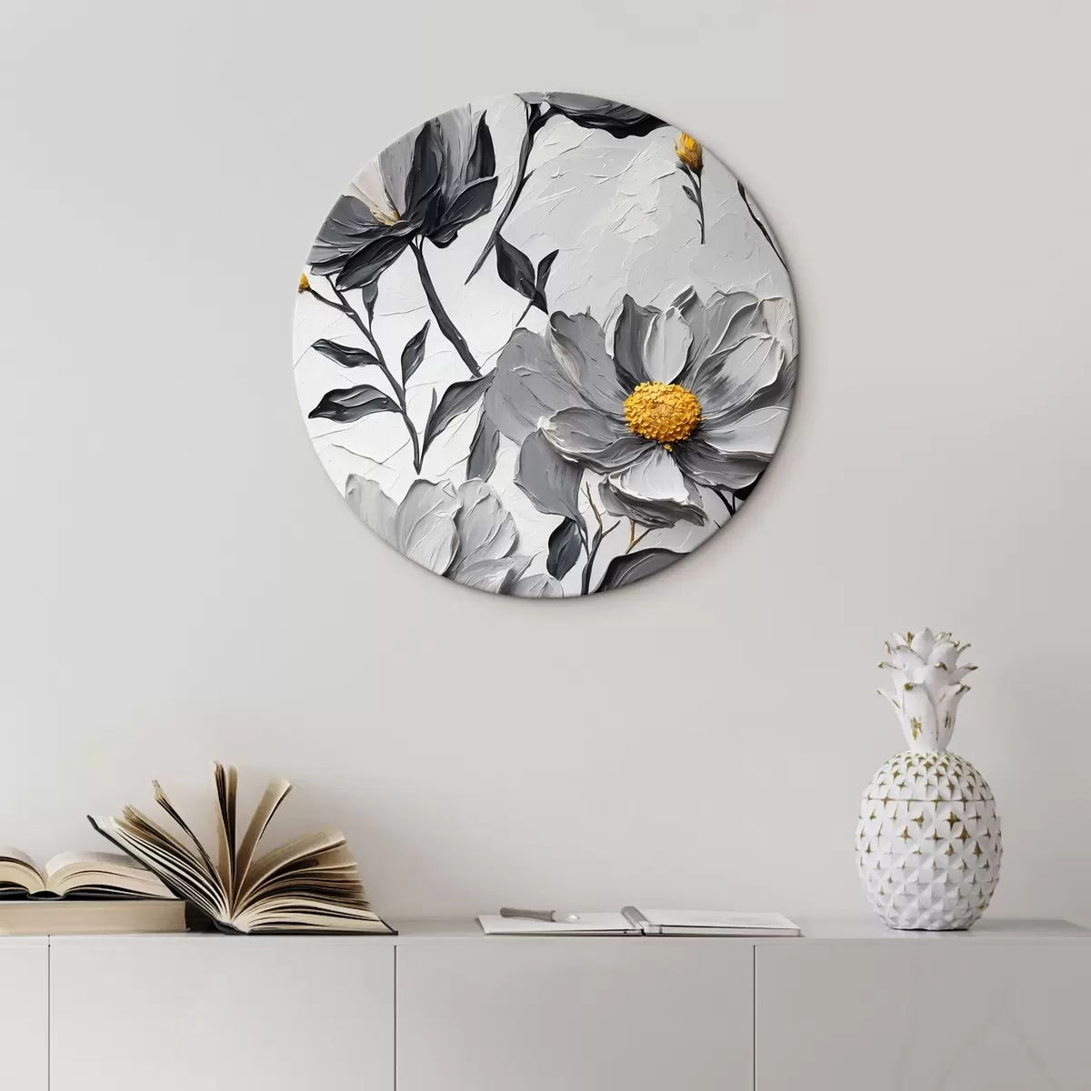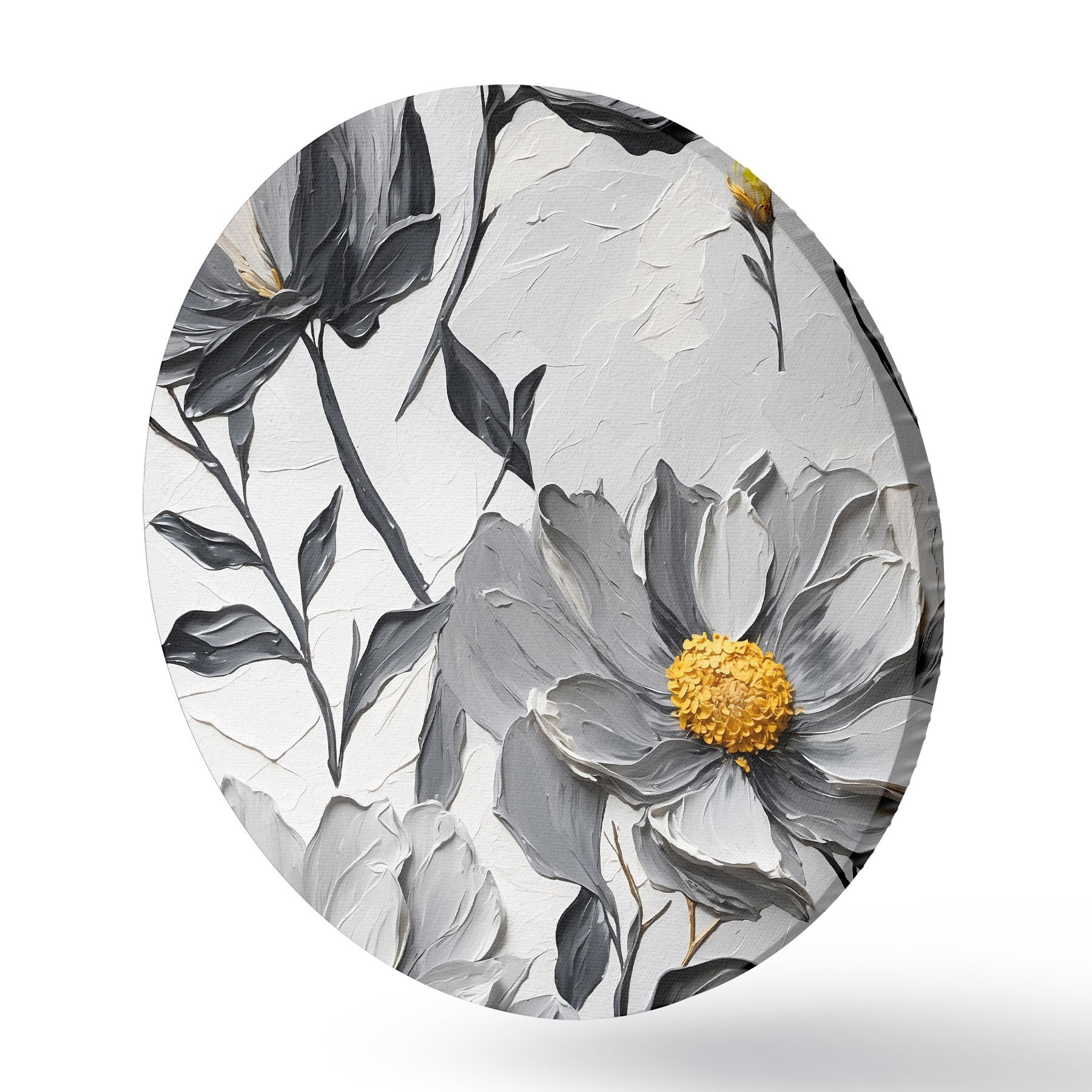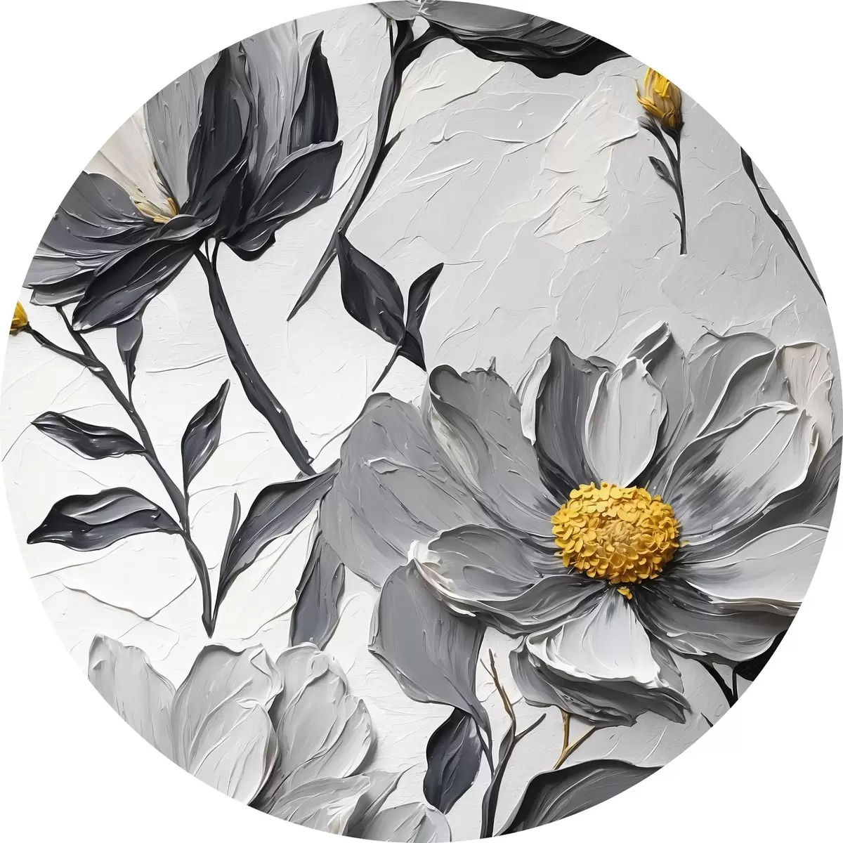 Runde Gemälde Graue Blumen auf grauem Hintergrund im Stil der Ölmalerei r44080