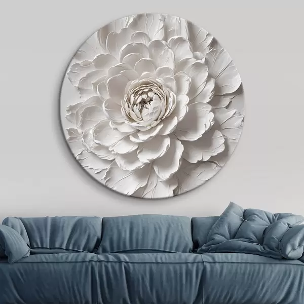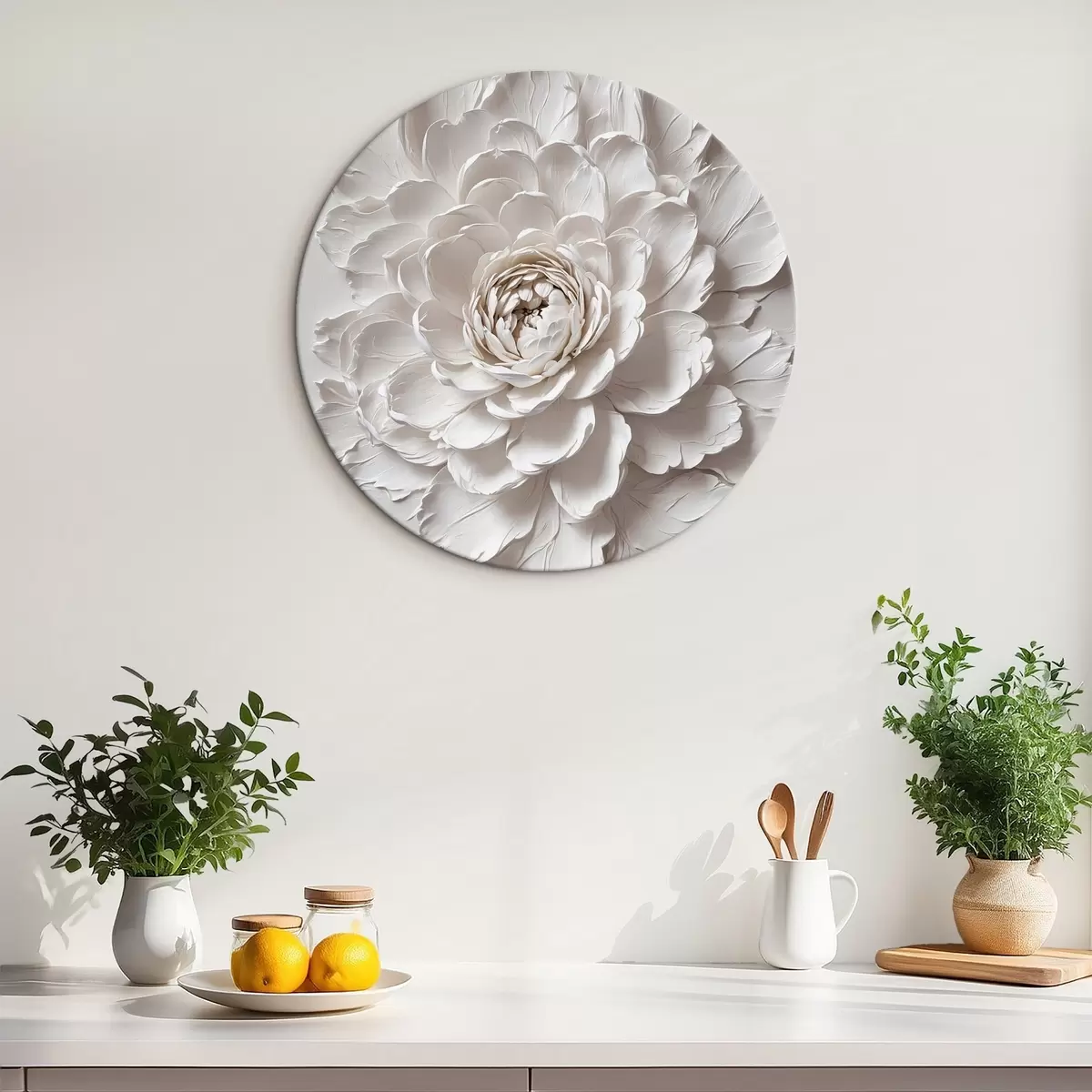 Runde Gemälde Weiße Blume auf weißem Hintergrund r44089
