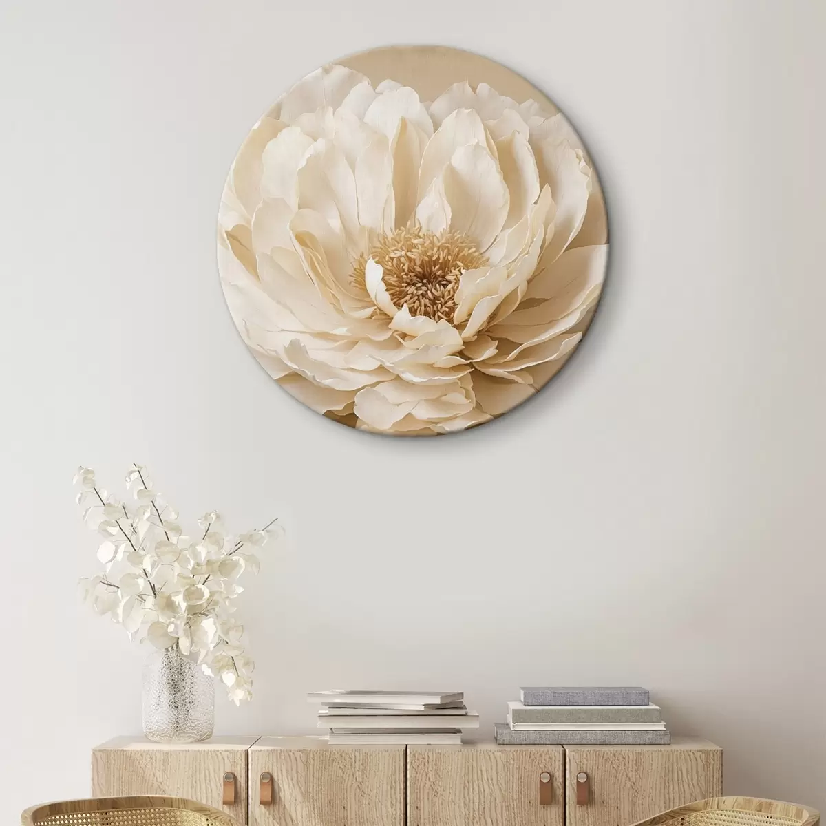 Runde Gemälde Weiße Blume auf beigem Hintergrund r44094