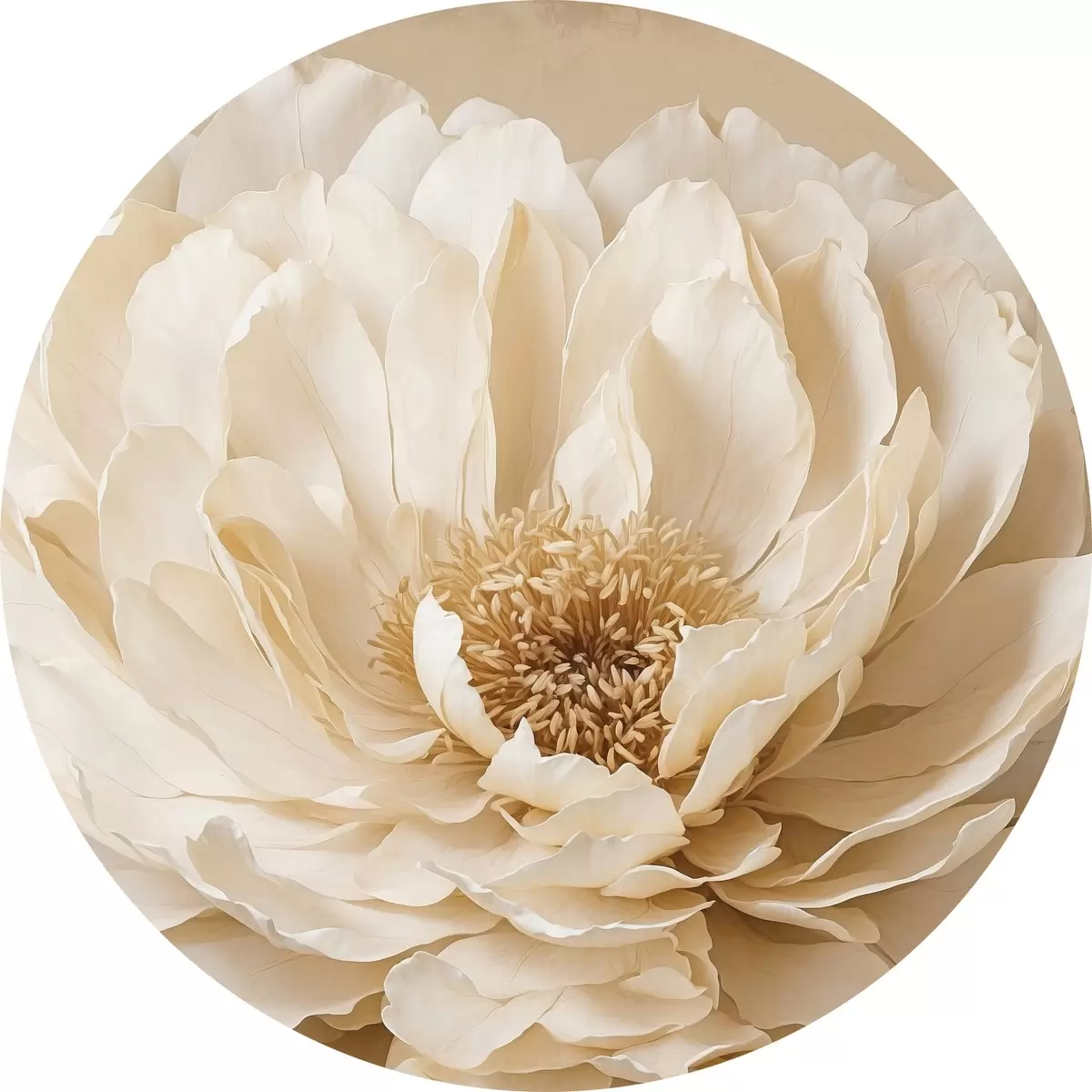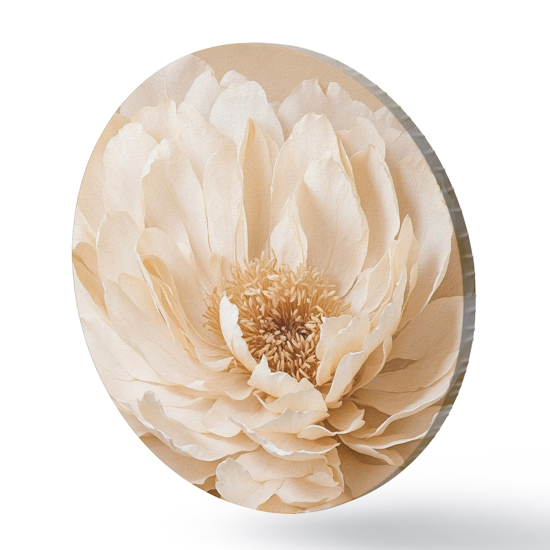 Runde Gemälde Weiße Blume auf beigem Hintergrund r44094