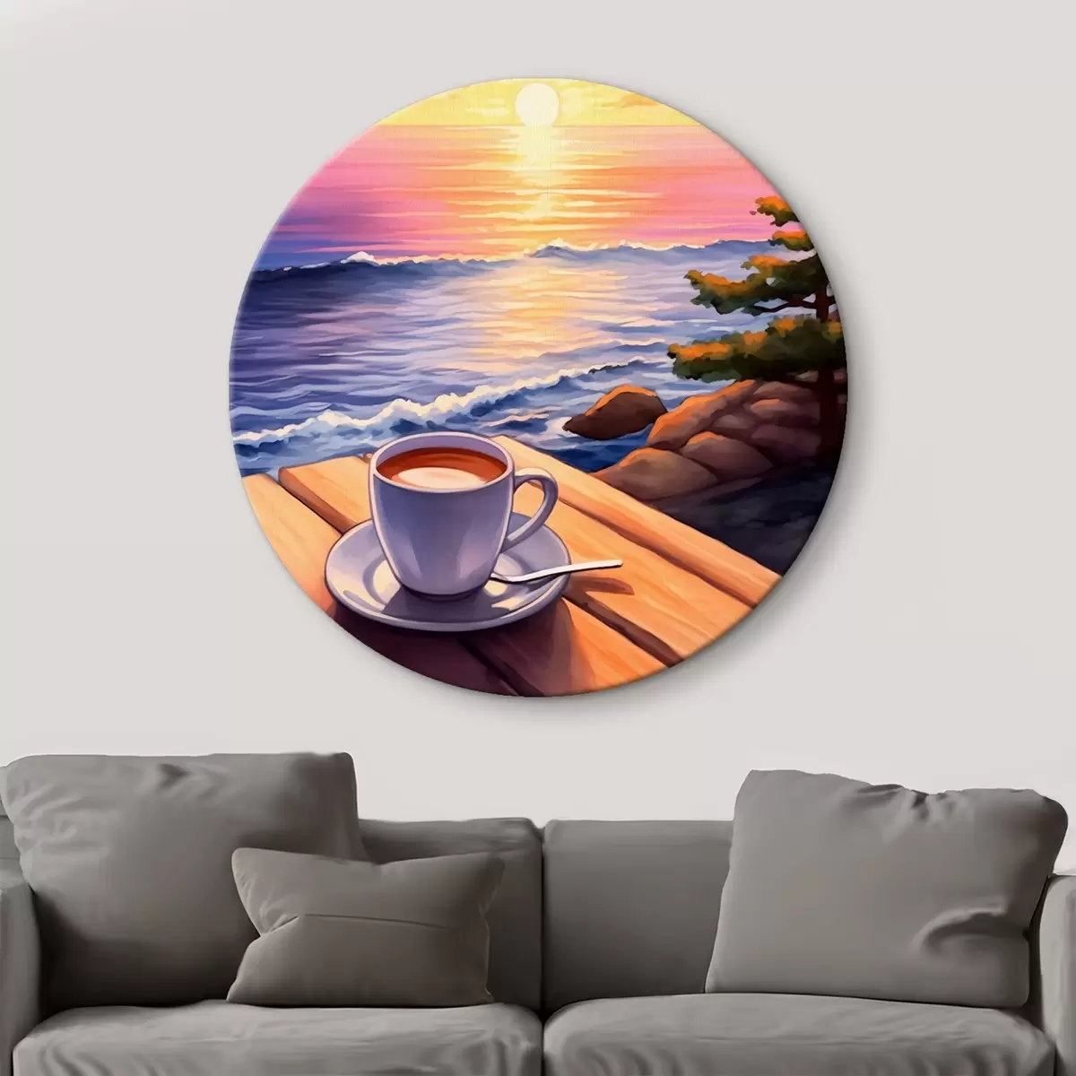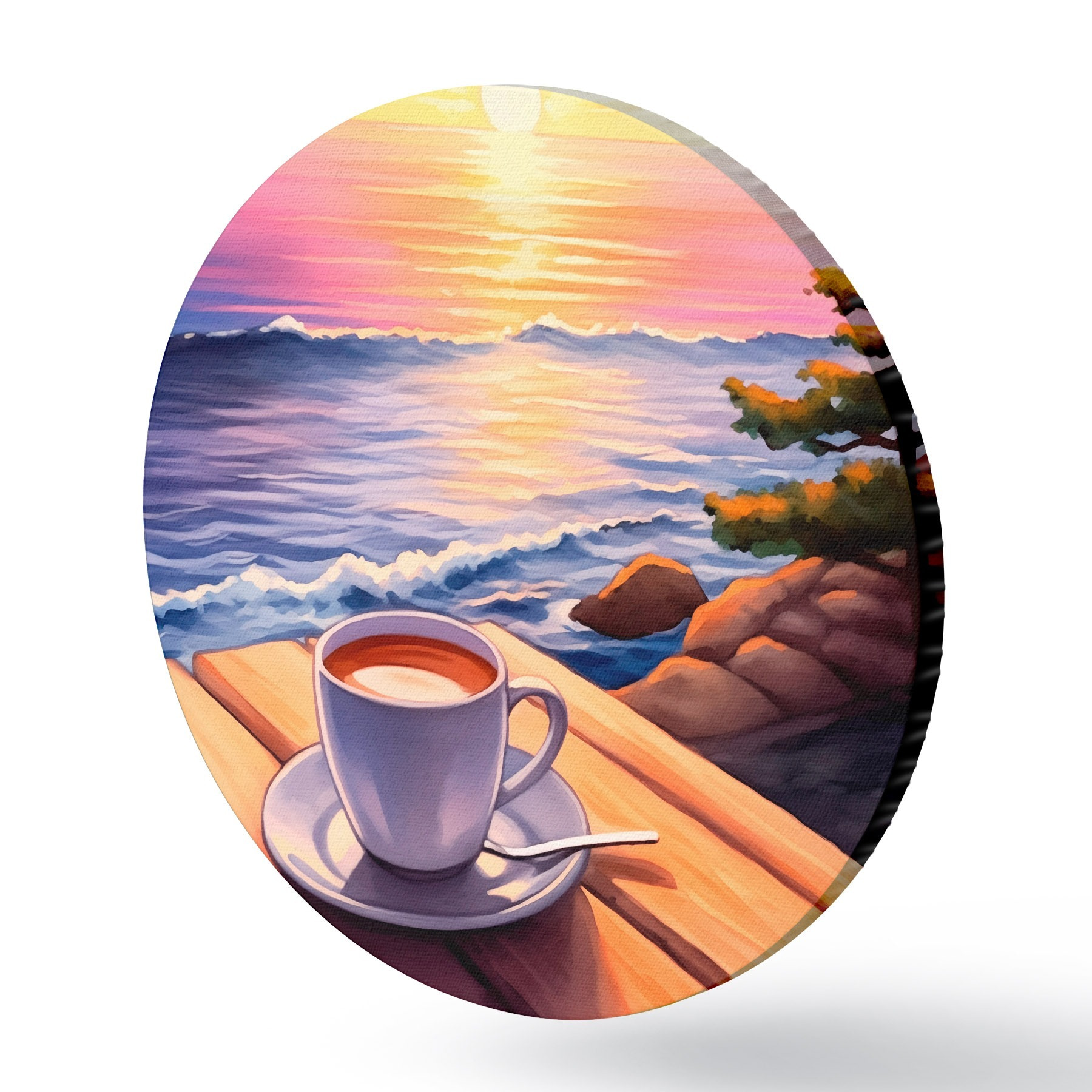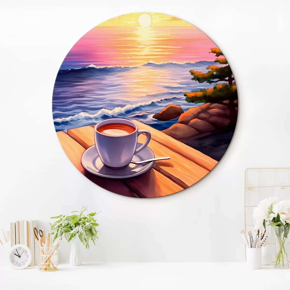 Runde Gemälde Tasse Kaffee auf dem Hintergrund der Landschaft r44105