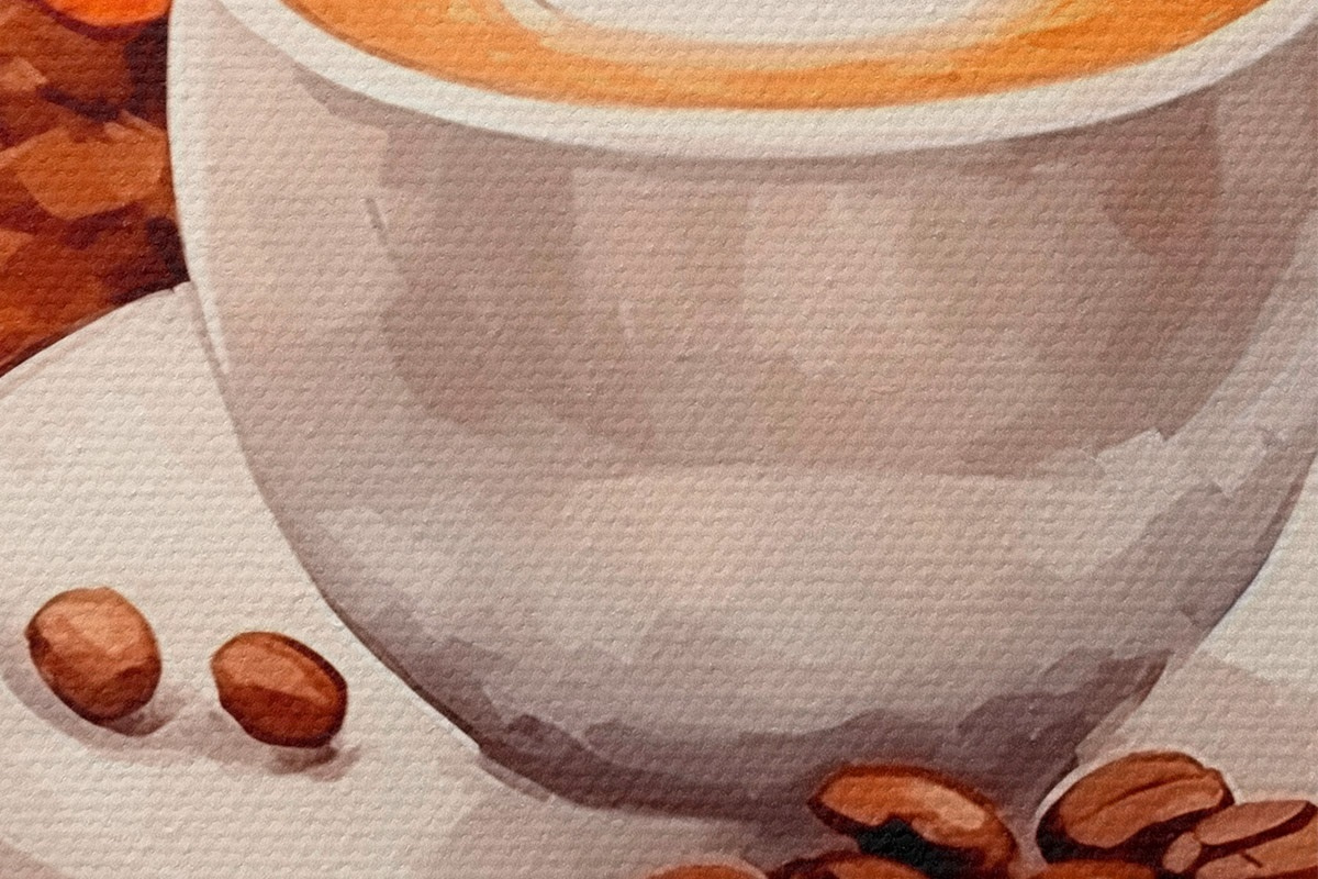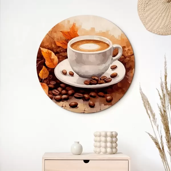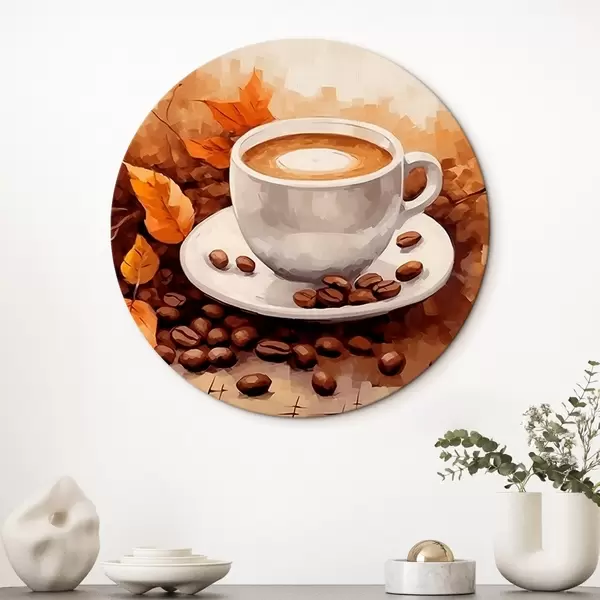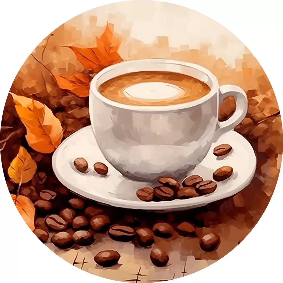 Runde Gemälde Tasse Kaffee und Kaffeebohnen r44116