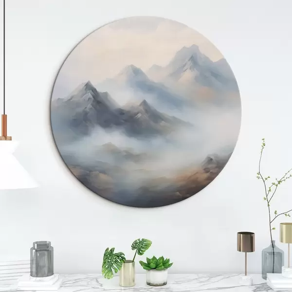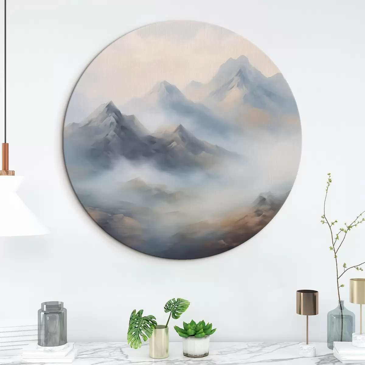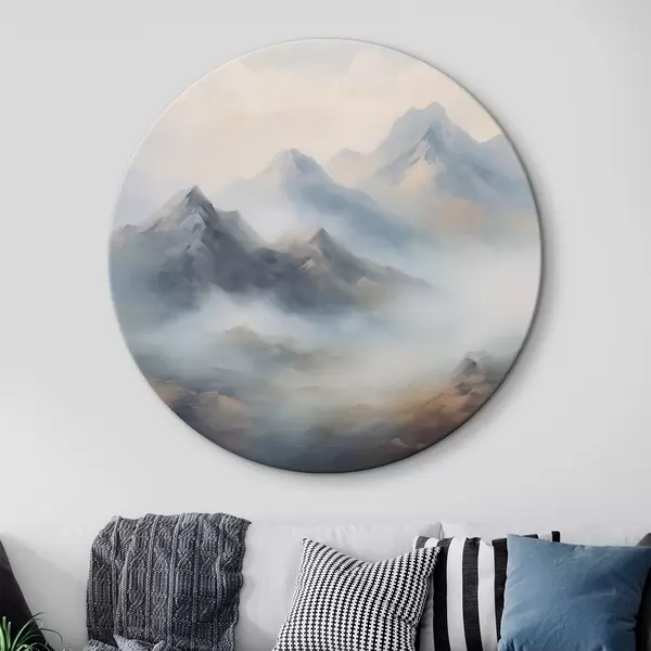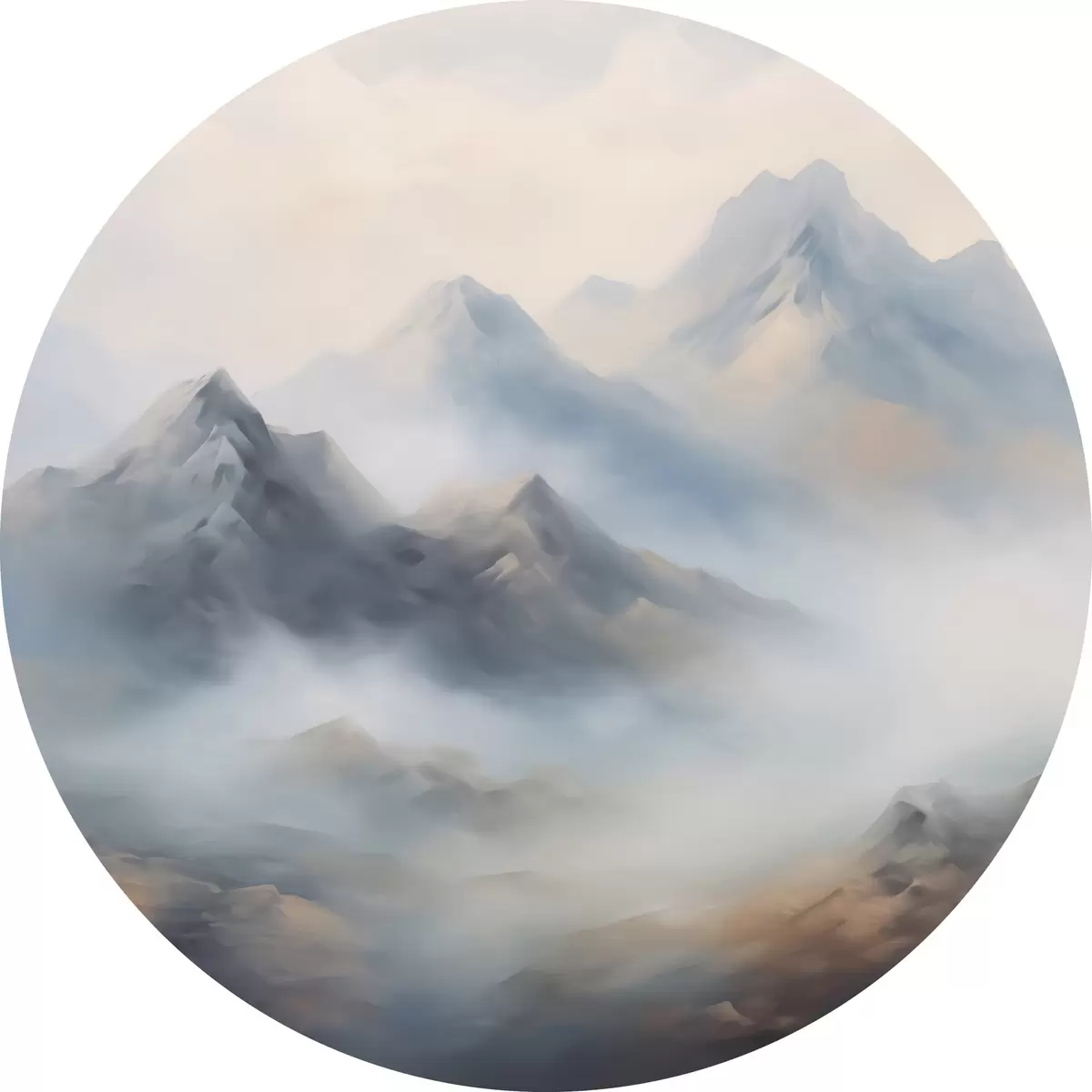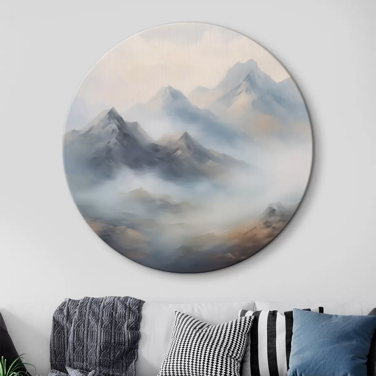 Runde Gemälde Berge im Nebel in der Morgendämmerung r44121