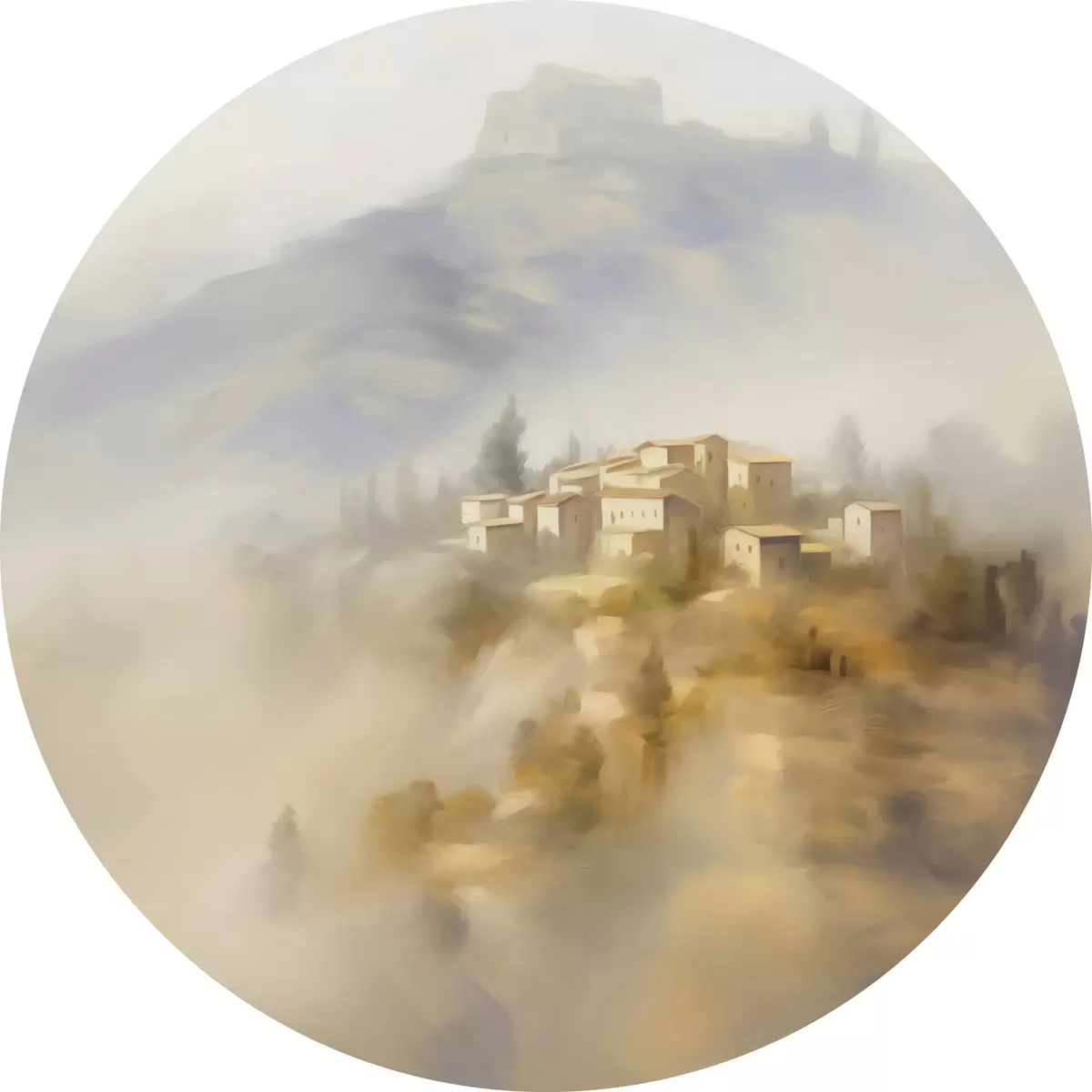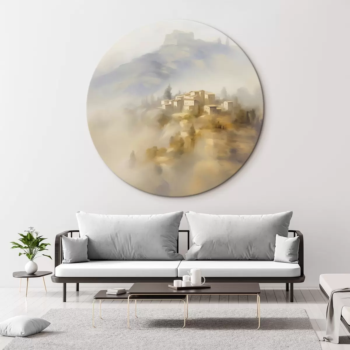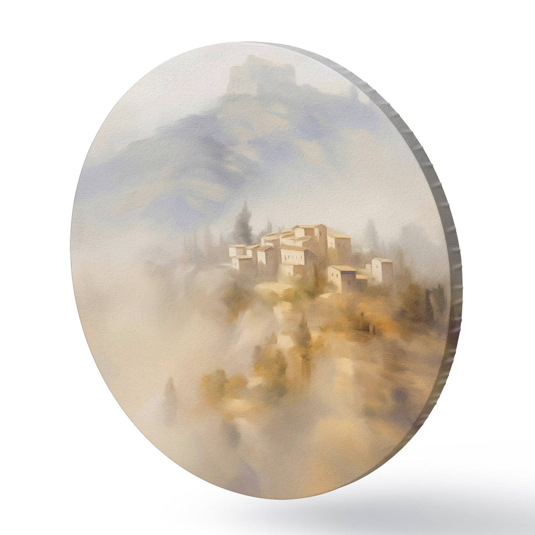 Runde Gemälde Dorf vor der Kulisse der Berge r44127