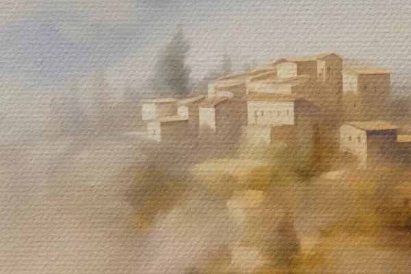 Das feine Fadengeflecht auf dieser Leinwand ähnelt der Oberfläche von professionellen Künstlerleinwänden.